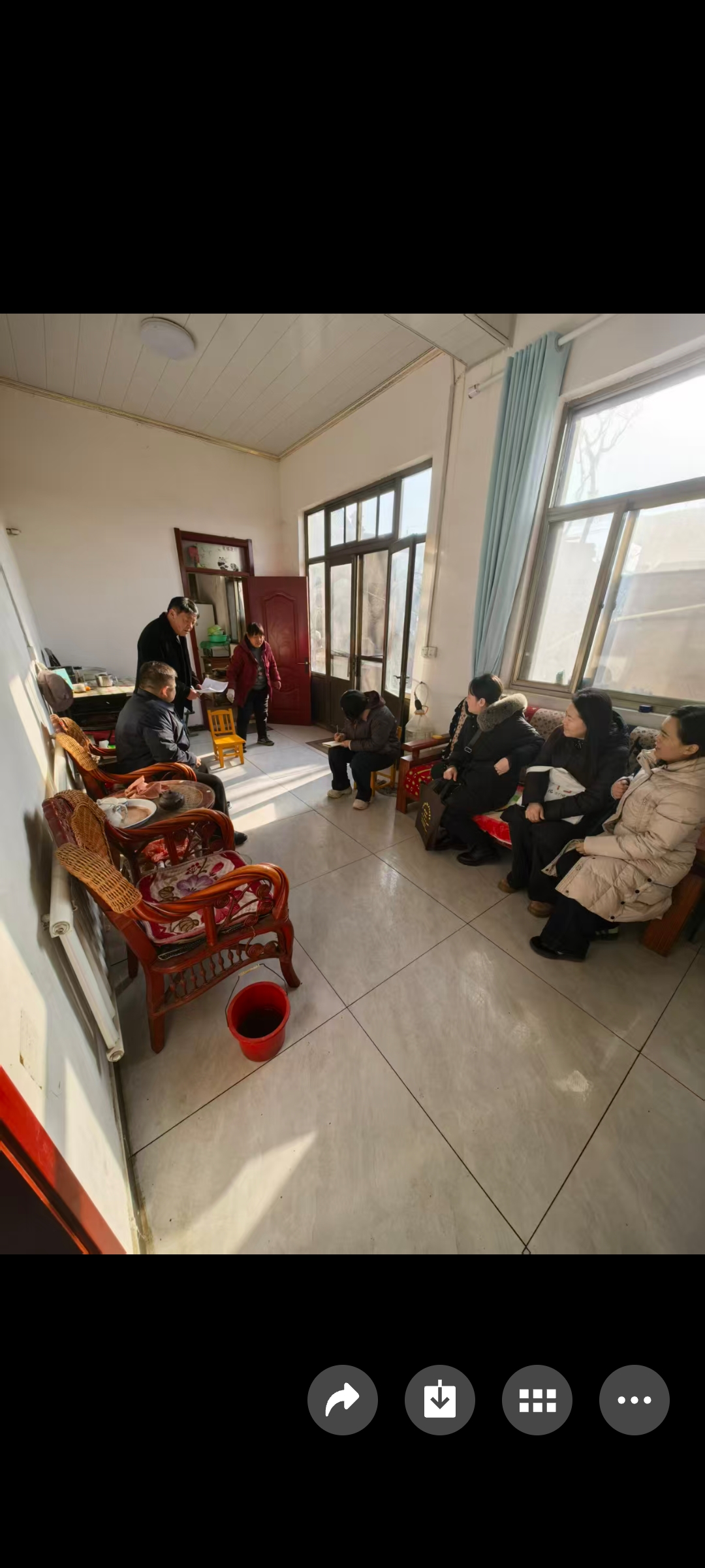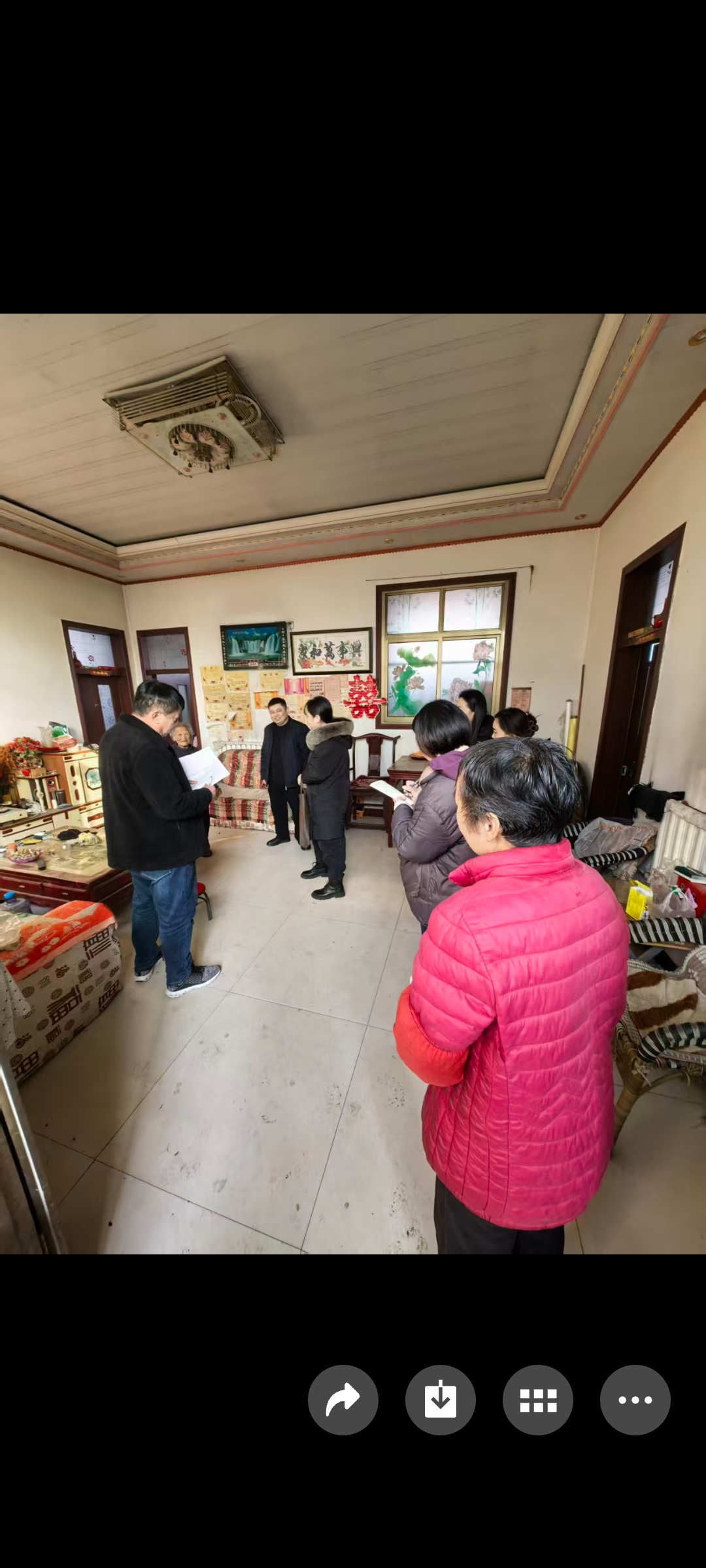 堽城镇,果庄村,2026年.1月10号.迎接上级领导到村入户,调查并指导工作,村民见到领导非常高兴,感谢上级领导对群众的关心。