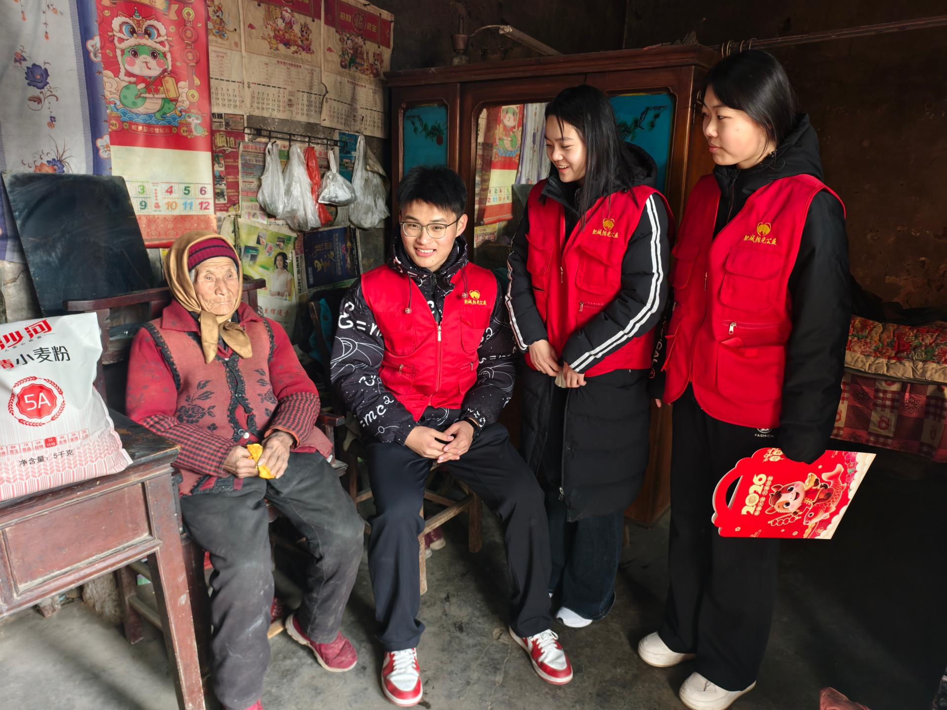 大学生返家乡青鸟学子们走进桃园镇开展“暖冬慰问 情系民生”慰问志愿服务活动 为老人们带去茶叶、藤椒鸡、牛奶、面粉等爱心慰问品,与老人们闲话家常,送去关心和温暖