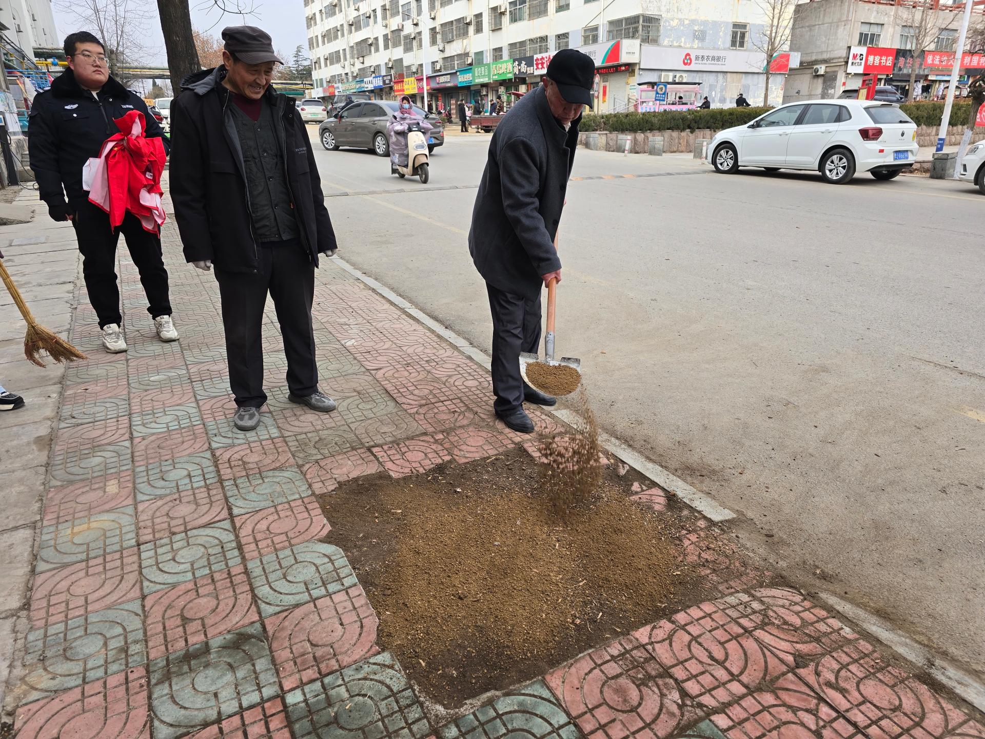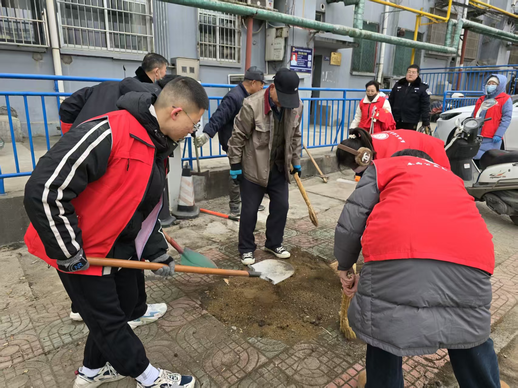 协庄社区组织志愿者们在靖南区开展社区填坑解忧民的志愿服务活动,志愿者们自带铁锹、铲子等工具,分工明确,不怕脏、不嫌累的为社区居民铺垫道路上的坑洼,全力解决路面大坑问题。