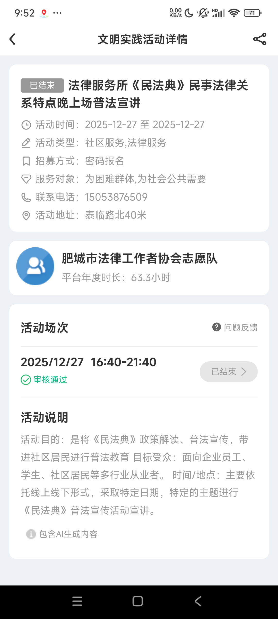 活动目的:是将《民法典》政策解读、普法宣传,带进社区居民进行普法教育 目标受众:面向企业员工、学生、社区居民等多行业从业者。 时间/地点:主要依托线上线下形式,采取特定日期,特定的主题进行《民法典》普法宣传活动宣讲。