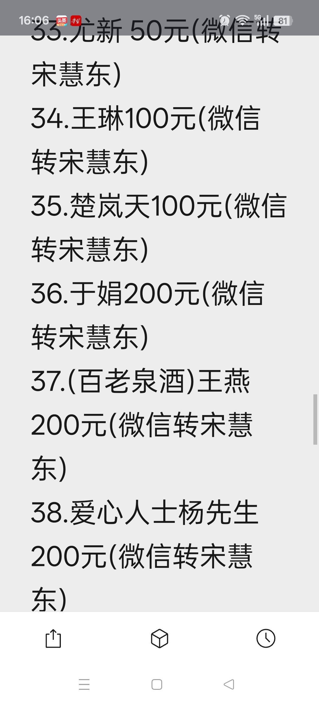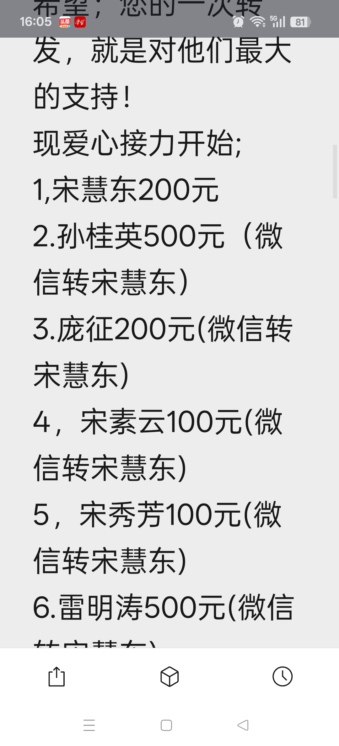 7600元爱心汇聚!这个3·15,为生命接力,续写雷锋精神 “人的生命是有限的,可是,为人民服务是无限的。”雷锋的话语,穿越岁月,在肥城这片有情有义的土地上,化作最滚烫、最动人的行动。 当白血病患者小张急需帮助的消息传来,肥城市爱心公益协会第一时间发起募捐。没有豪言壮语,只有义无反顾;无需过多动员,爱心已然奔涌。 短短几天,一份份善款从四面八方汇聚而来: 有天真稚嫩的孩子,把积攒已久的压岁钱通过微信转过来,并留言“希望哥哥早日好康复”;有机关干部、爱心商家、大学生、普通志愿者、爱心人士,默默接力、慷慨解囊; 有素不相识的陌生人,一句“我也帮一把”,便伸出温暖的手。 截至目前,爱心捐款已达7600元。 这不是冰冷的数字,是一颗颗滚烫的心:是孩子的纯真善良,是爱心人士的守望相助,是肥城人刻在骨子里的温情与担当。 每一笔善款,都是一束微光;每一次伸出援手,都在为生命续航。 雷锋精神,从来不是遥远的符号,而是藏在你我身边的温暖小事。它就在你我转微信时的一次点击、一句鼓励、一份牵挂里;就在平凡人挺身而出、温暖他人的瞬间中。 感谢每一位伸出援手的你!感谢你们的大爱善举。大家放心我们确保每一分钱都会送到患者家属手中。让我们一起把雷锋精神种在肥城的土地上,让爱与希望生生不息。 今天中午我们以把7600元爱心善款以全部送到患者家属手中。 患者家属张会国非常的感动,他说:感谢所有爱心人士的热心捐助。在我们家庭最困难的时候,伸出援助之手。 这次收到大家捐助的7600元善款,对我们来说真是雪中送炭,解了燃眉之急。 一句谢谢不足以表达我们的心情,是你们的爱心与善意,让我们在无助中看到希望,感受到社会大家庭的温暖。我们会永远铭记这份恩情,等渡过难关,一定把这份爱心传递下去,帮助更多需要帮助的人,将温暖延续。再次向每一位好心人,致以最诚挚的感谢! 爱,从未止步;善,仍在延续。 愿小张早日战胜病魔,重归健康与阳光! 让雷锋精神在肥城生生不息,让爱与希望永远传递!
