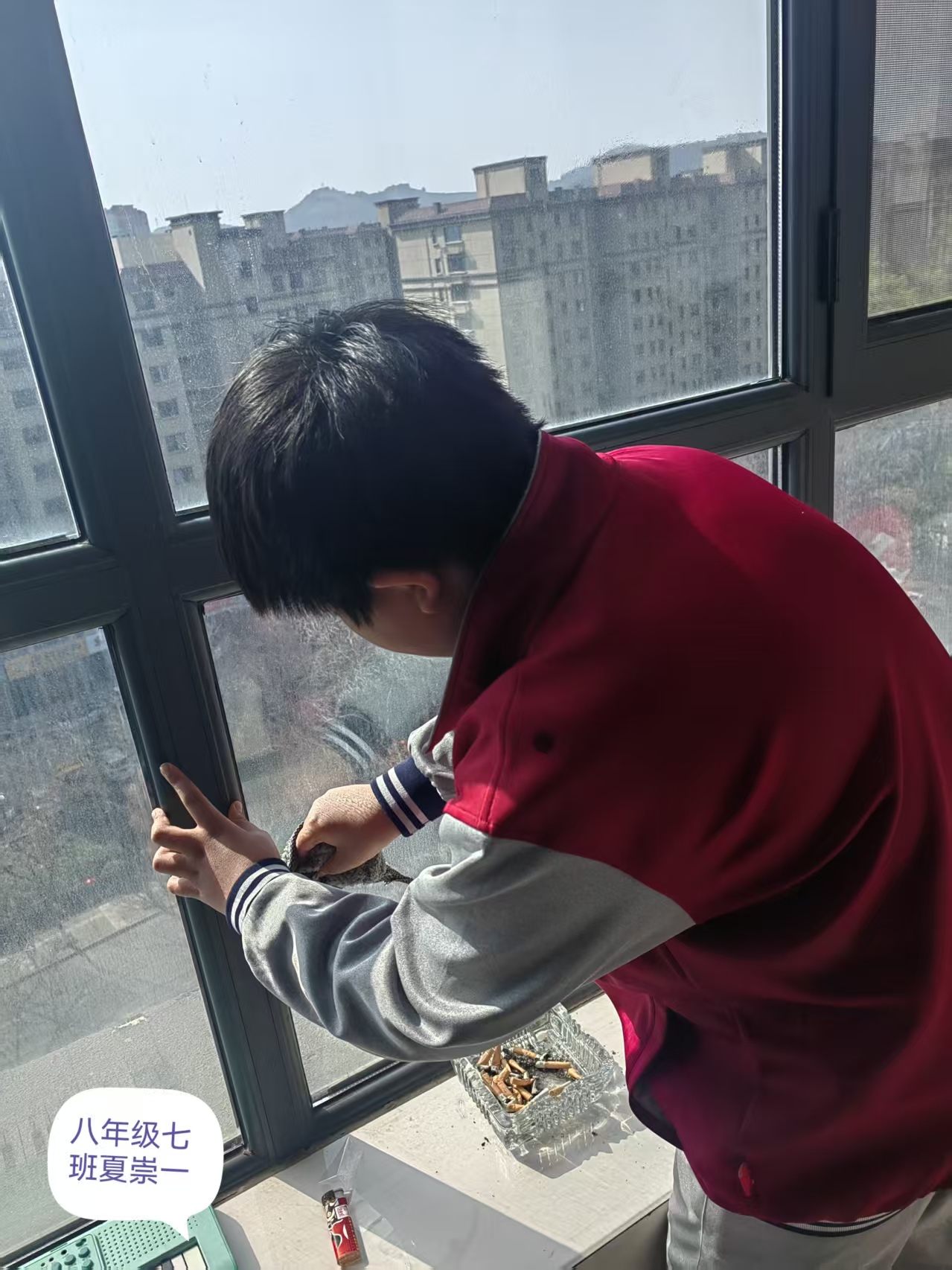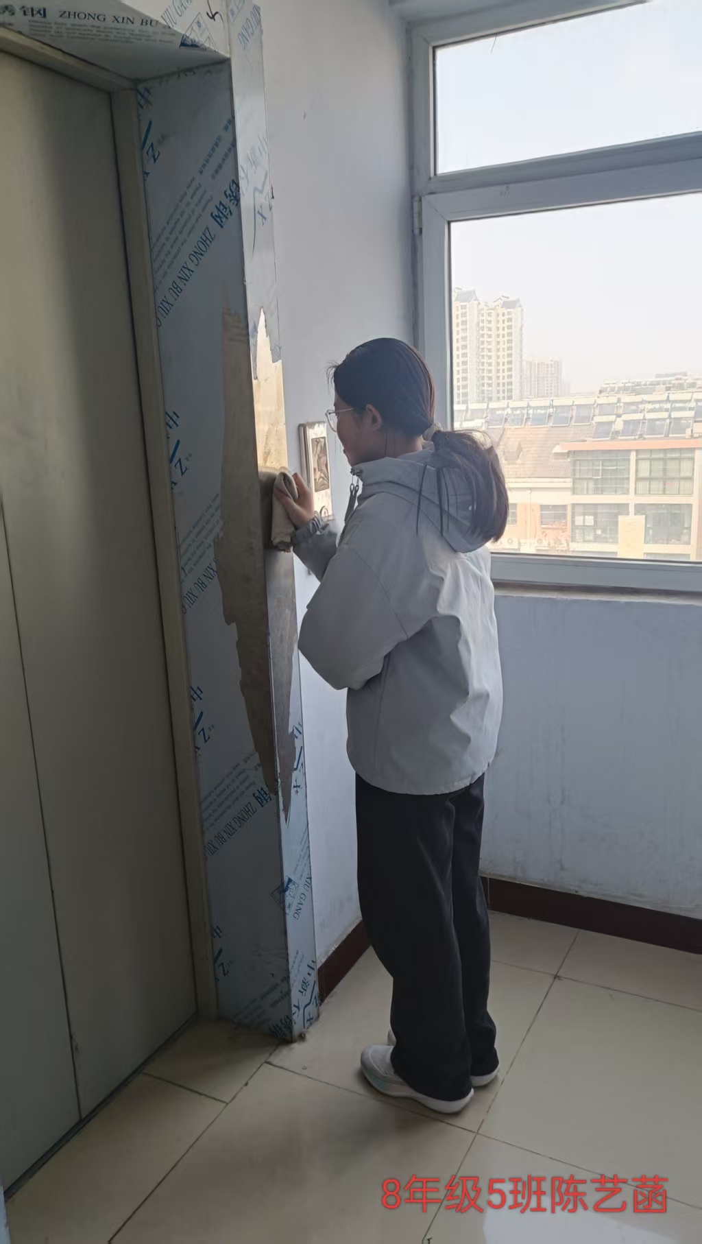 假期里,志愿者根据社区工作人员安排,对社区内的楼道间楼梯间,垃圾桶进行卫生清洁,开展社区卫生服务,居家进行力所能及家务劳动。