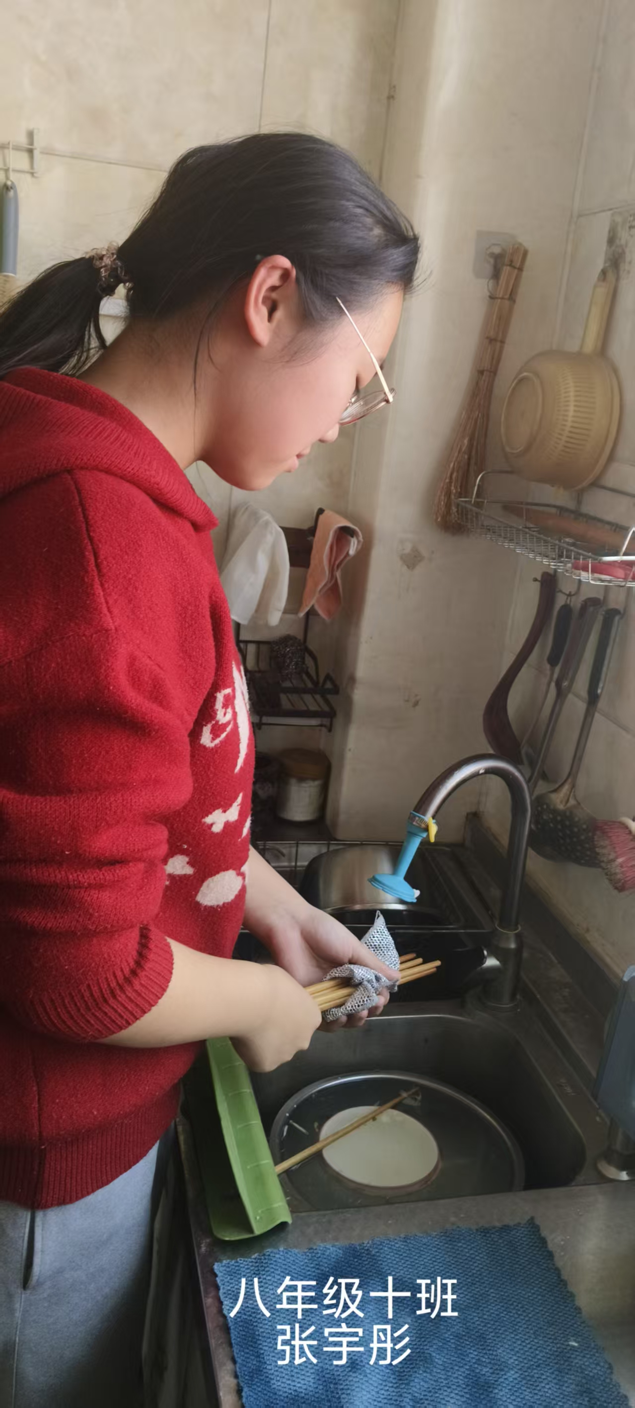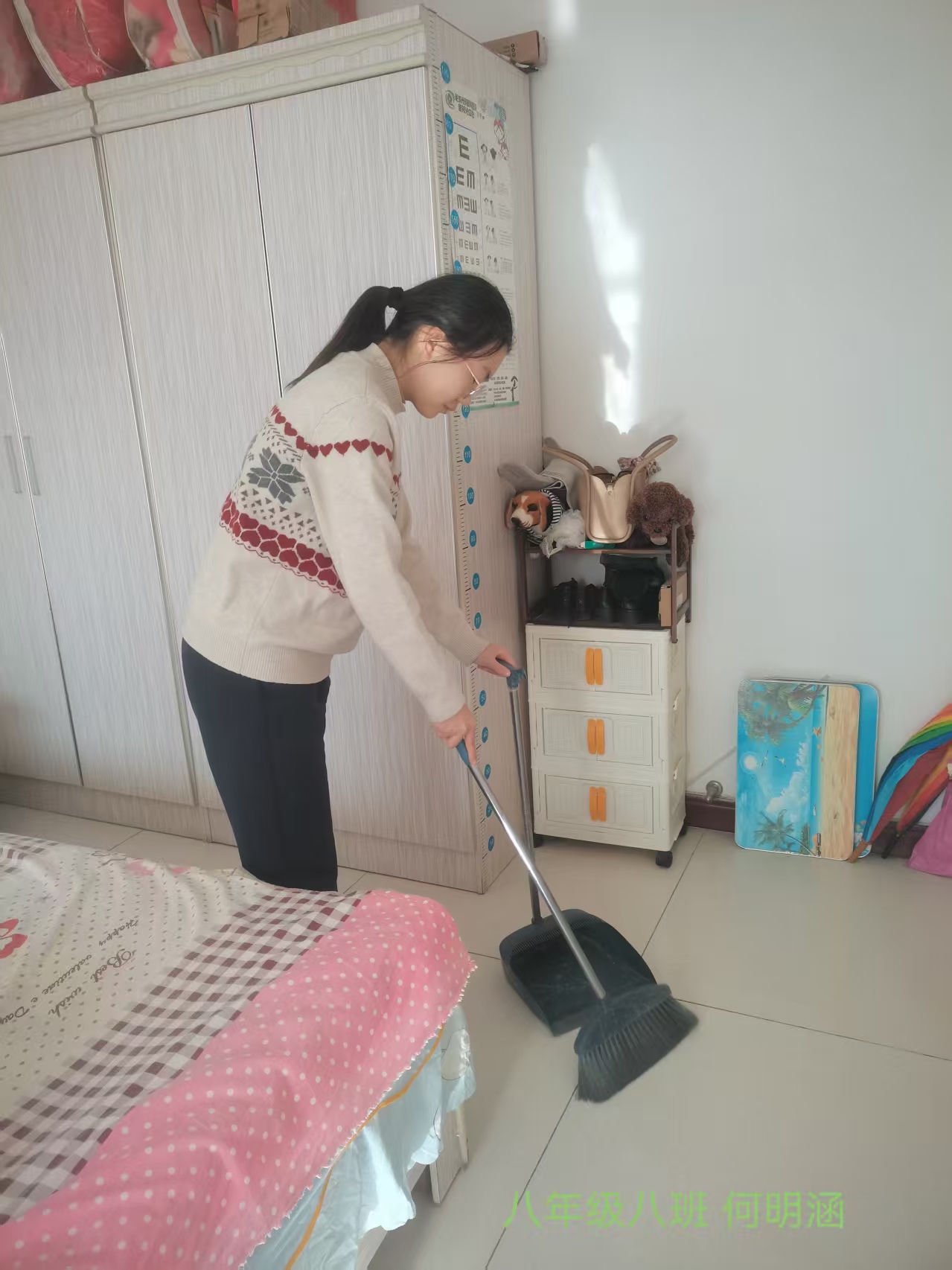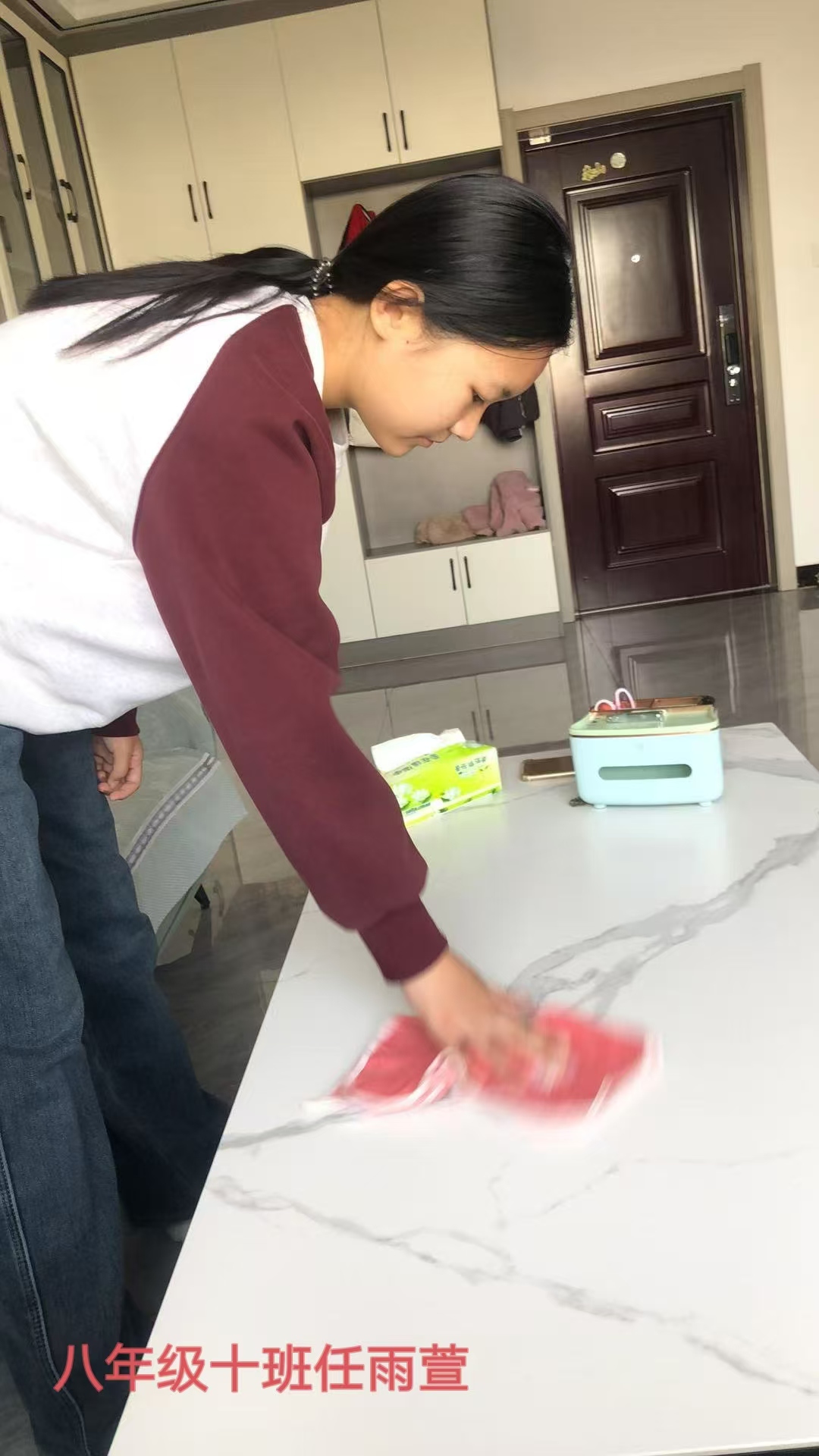 假期里,志愿者根据社区工作人员安排,对社区内的楼梯楼道电梯间进行卫生清洁,在家里做力所能及的家务劳动。