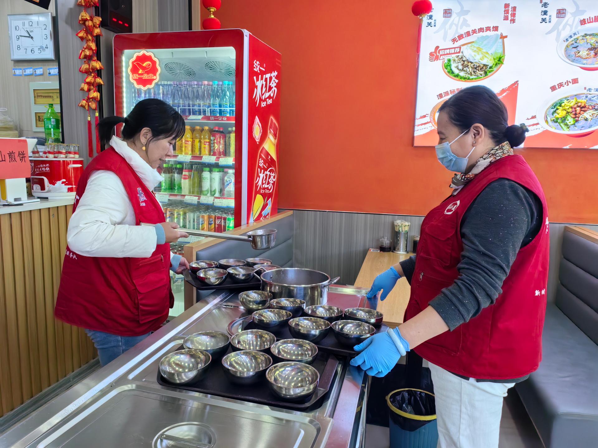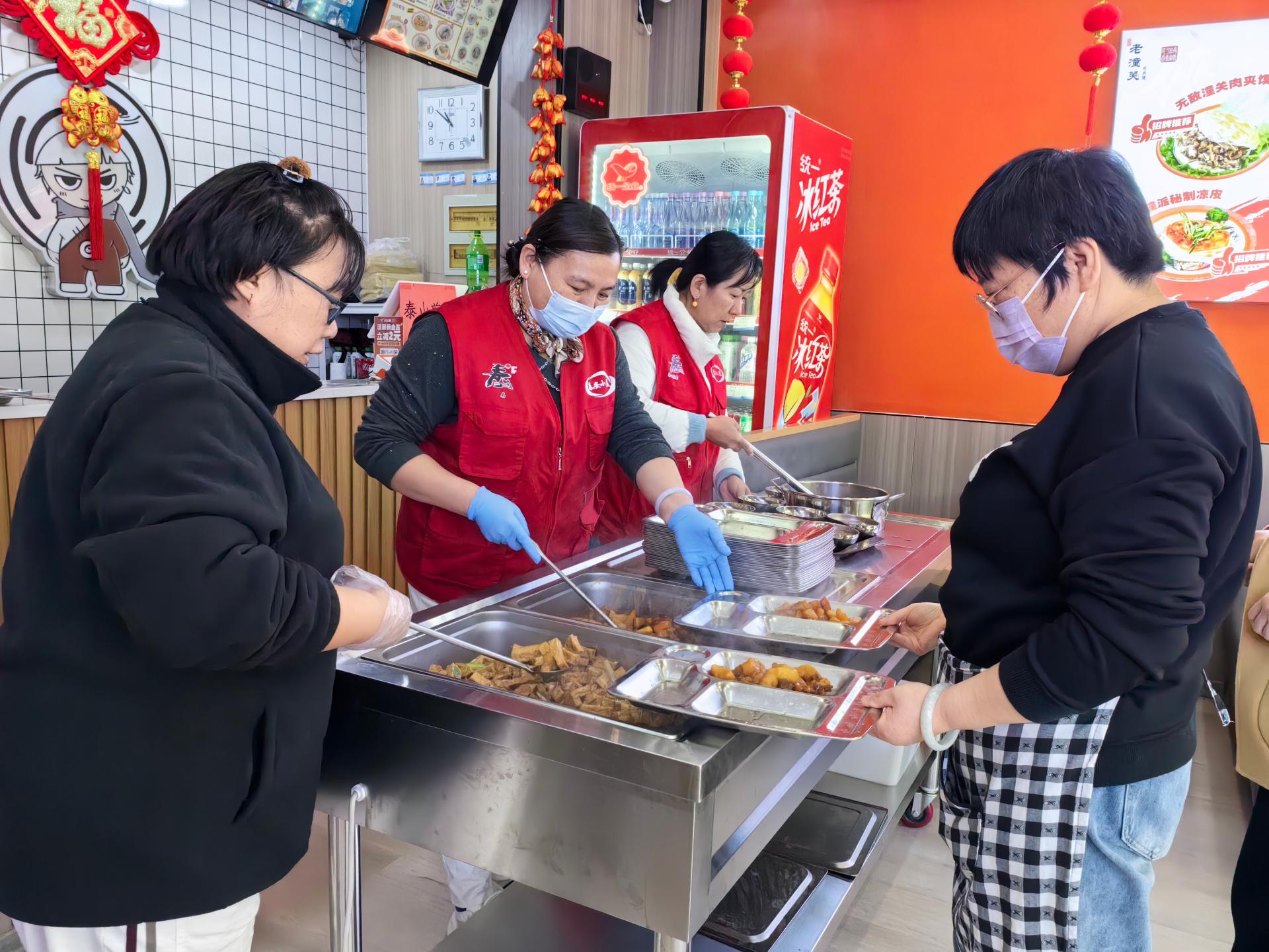 为前来就餐的老人提供助餐服务,从引领、搀扶老人进入食堂到为老人分饭、汤,包括餐后收拾等。在另有专人负责就餐老人的打卡工作,未能来就餐的老人及时联系。