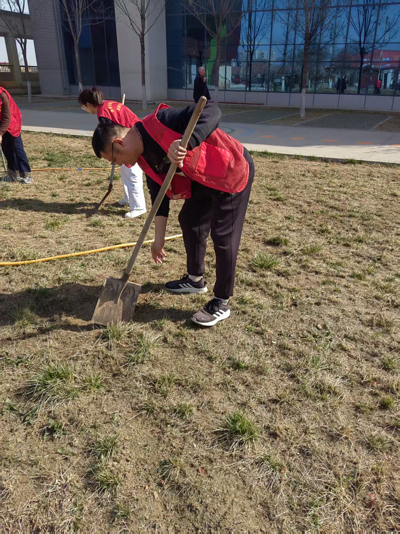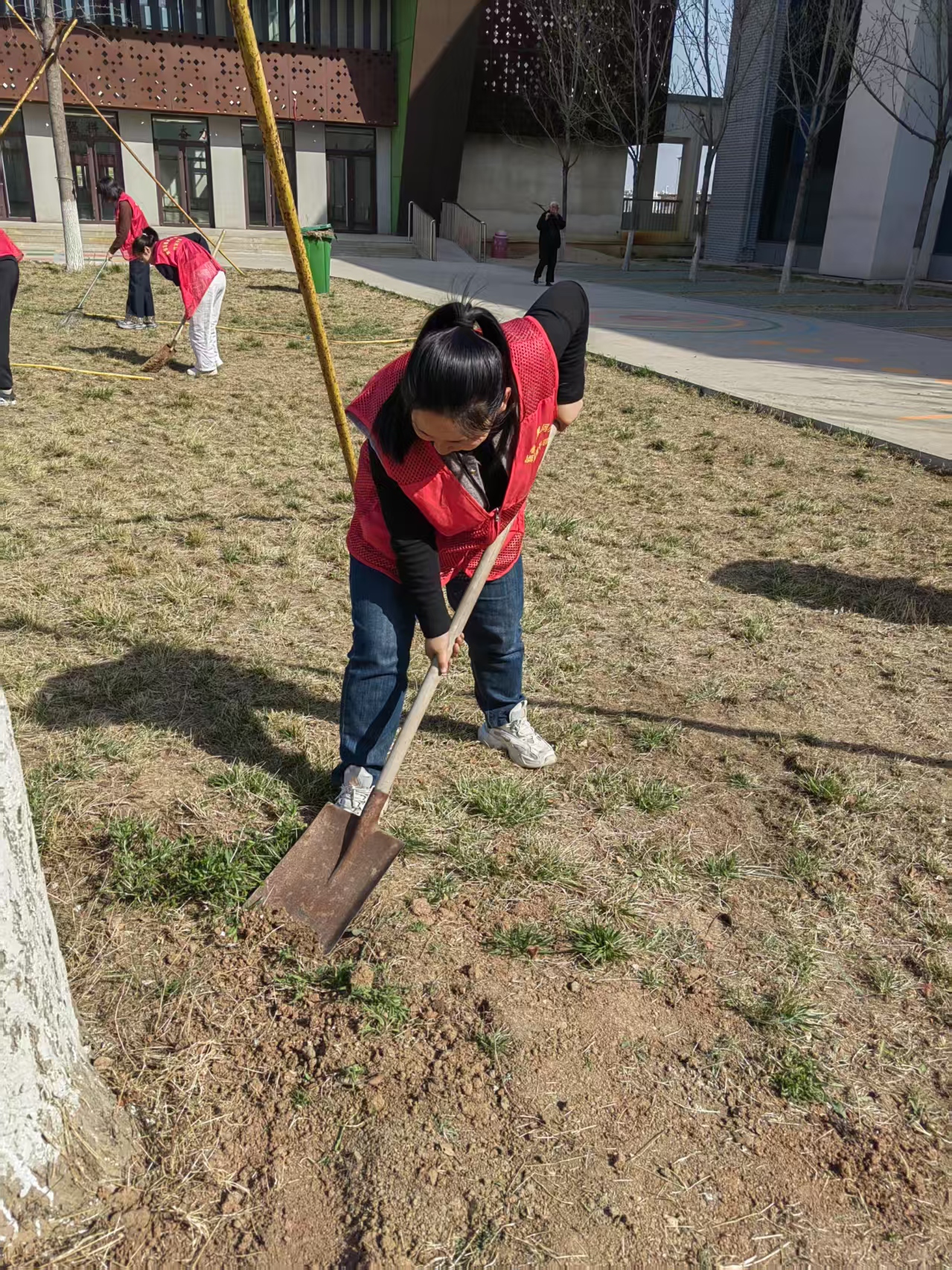 党员志愿者到校后进行树木修剪、杂草清理及校园环境整治义务劳动,以实际行动美化校园环境,彰显党员担当。