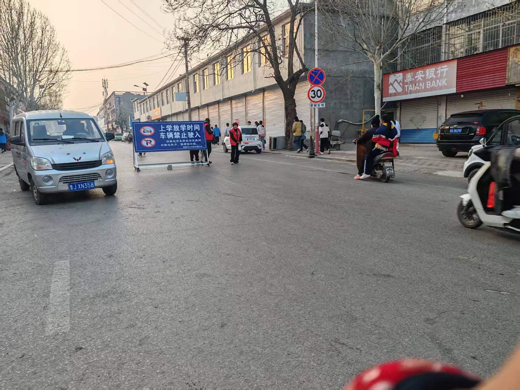 志愿者在校园周边开展护学行动,维护交通秩序,引导车辆避让,守护学生安全上下学,用行动营造安全有序的文明出行环境。