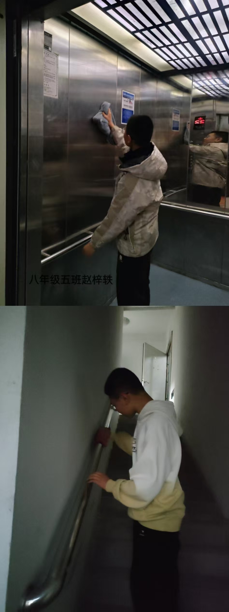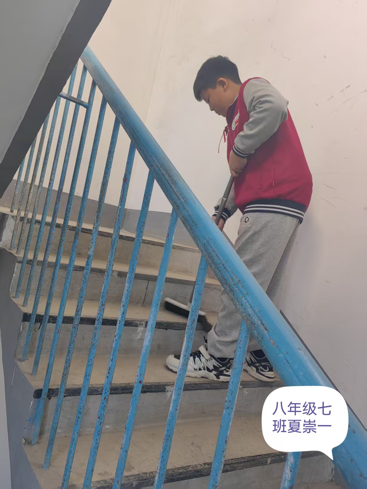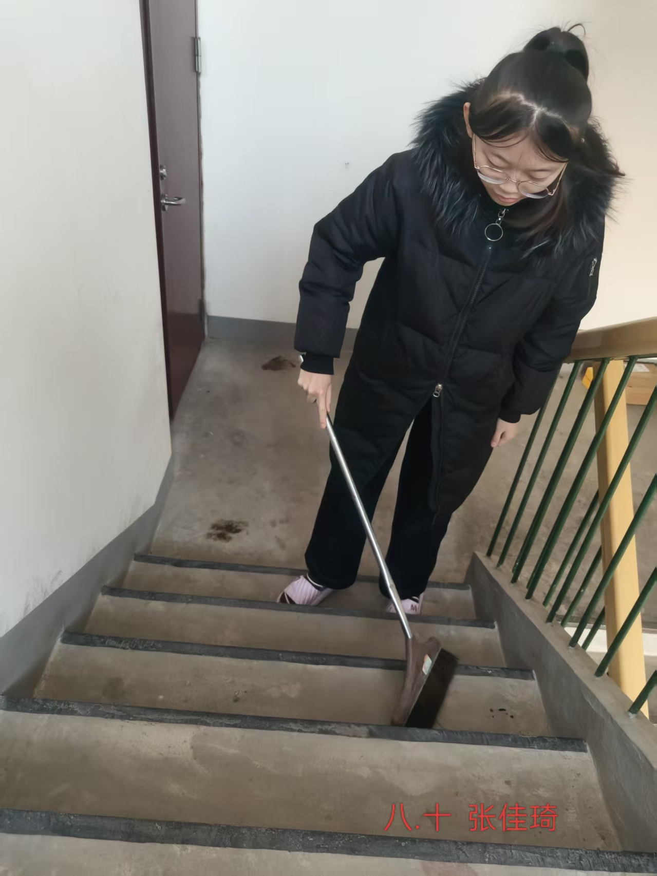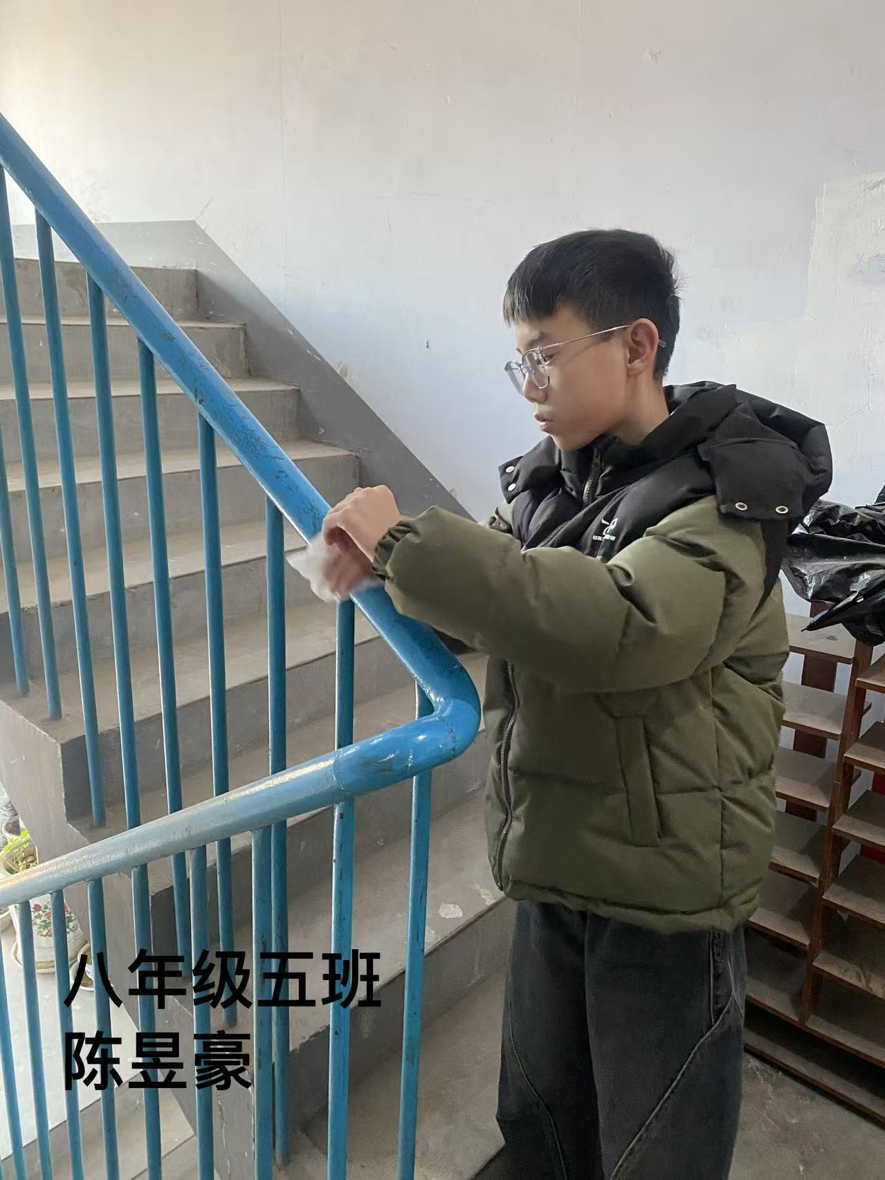 志愿者根据社区工作人员安排,对社区内的楼梯楼道等公共区域进行卫生清洁,在家进行力所能及的居家卫生清洁活动。
