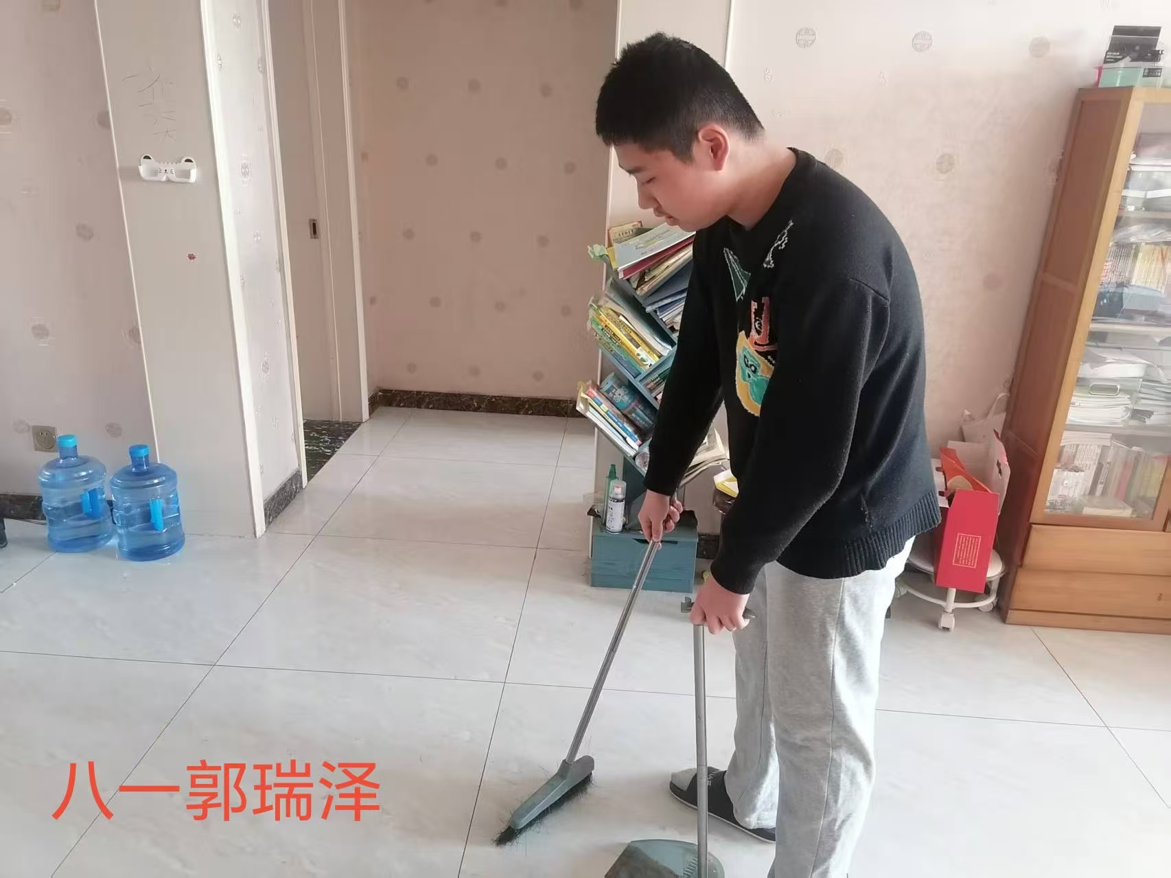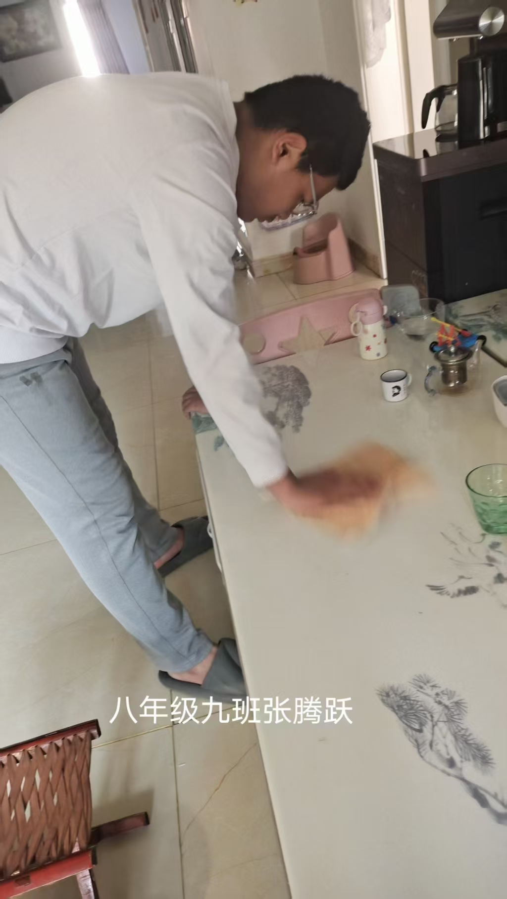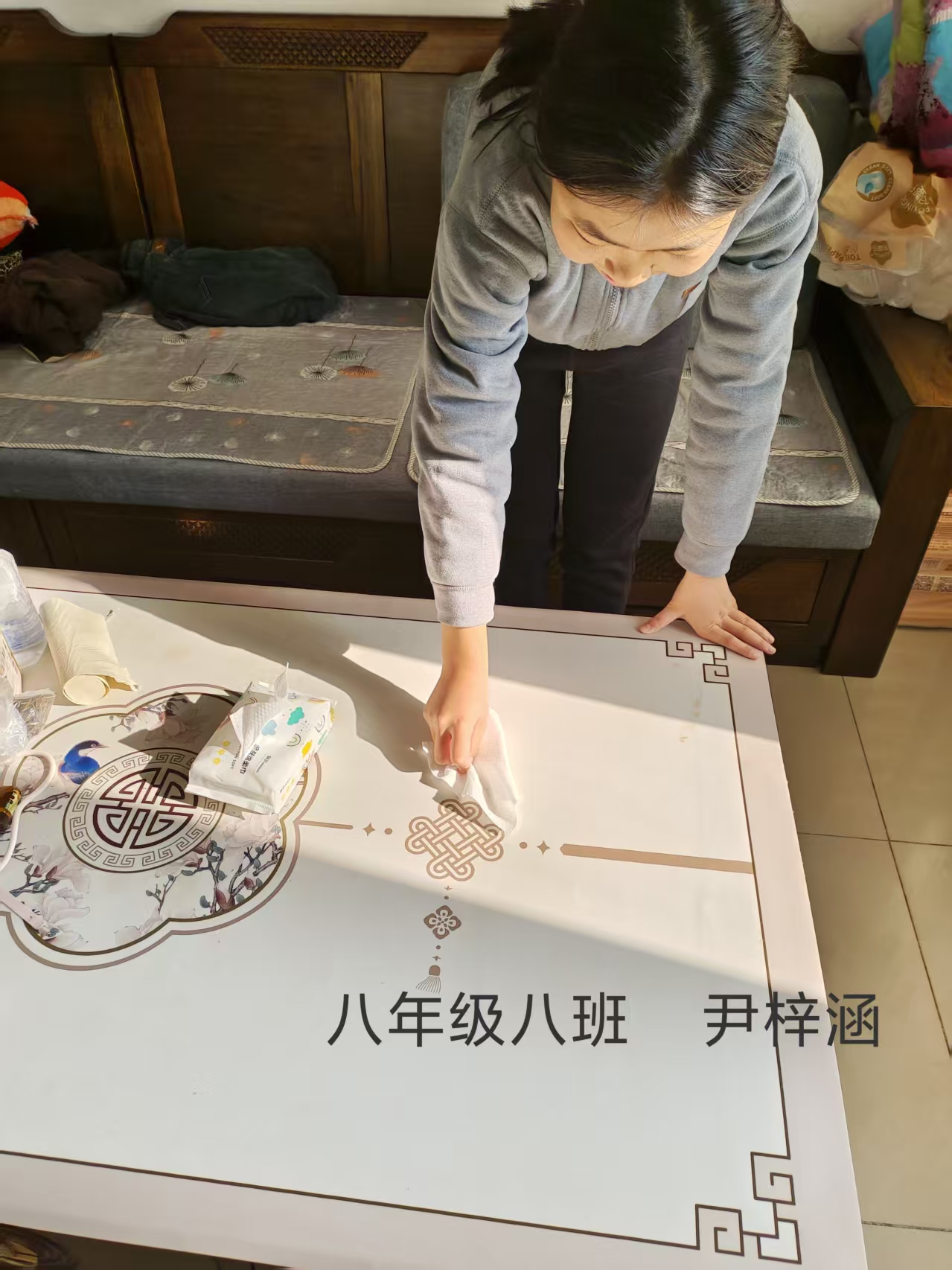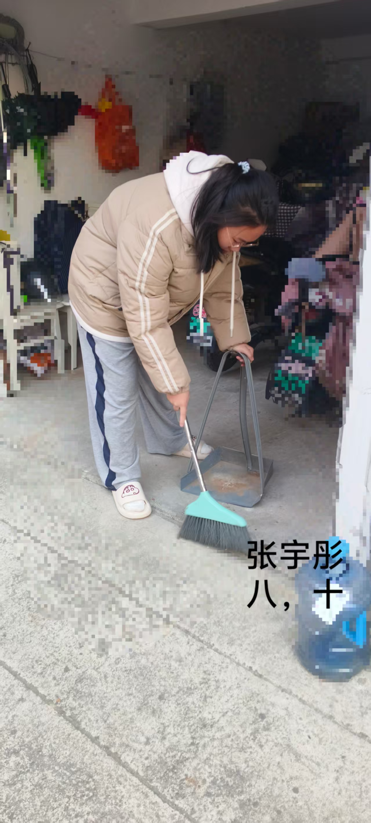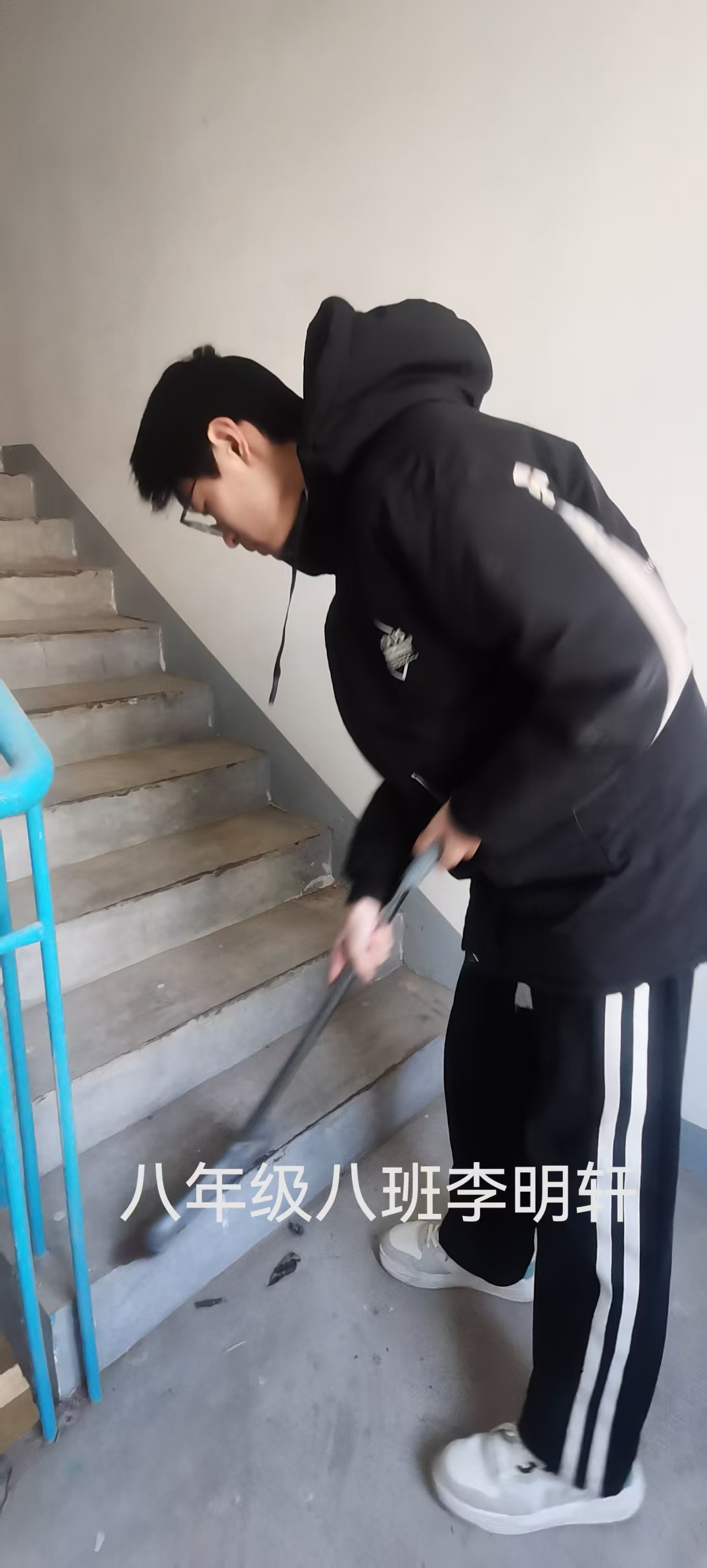 志愿者根据社区工作人员安排,对社区内的楼梯楼道等公共区域进行卫生清洁,在家进行力所能及的居家卫生清洁活动。