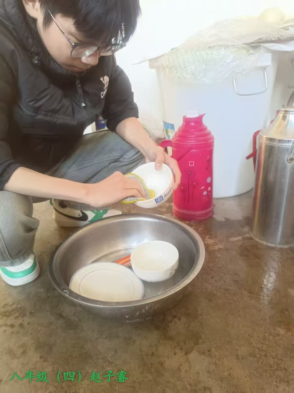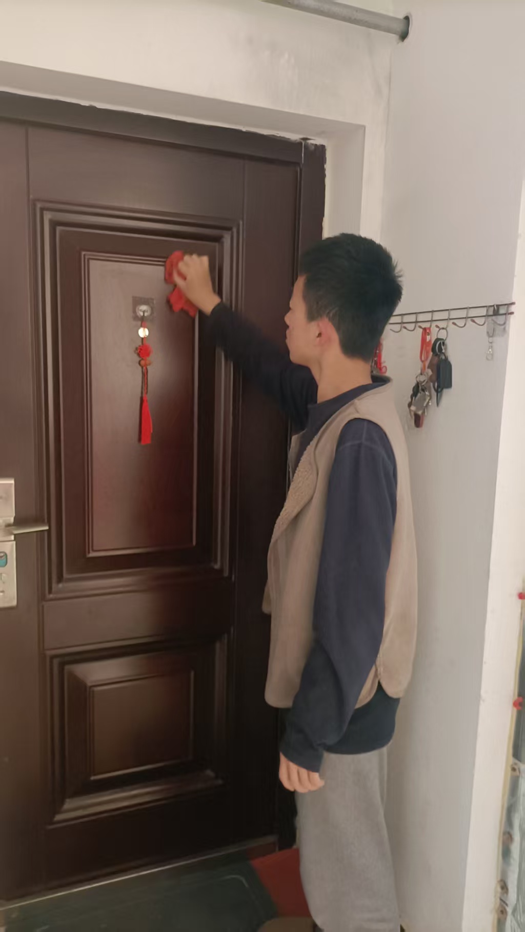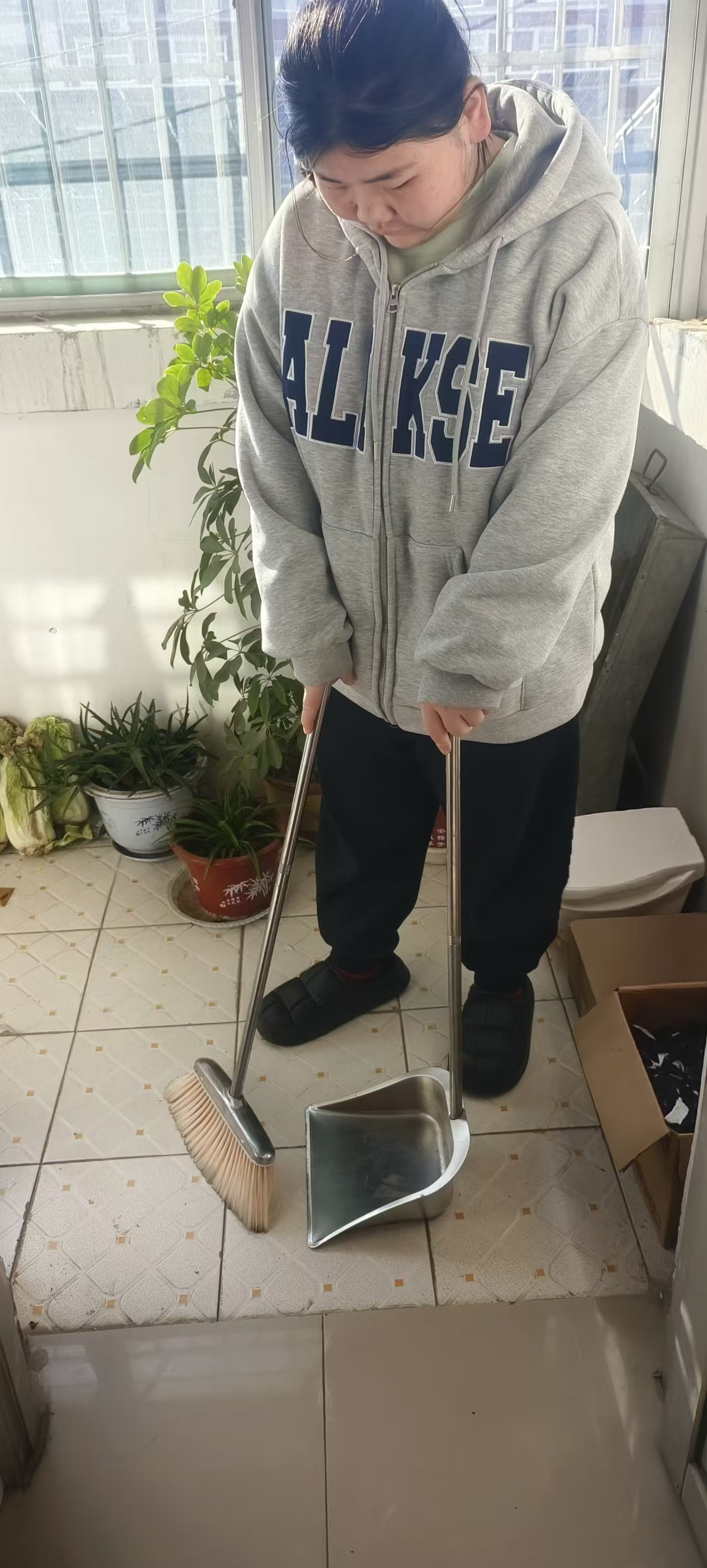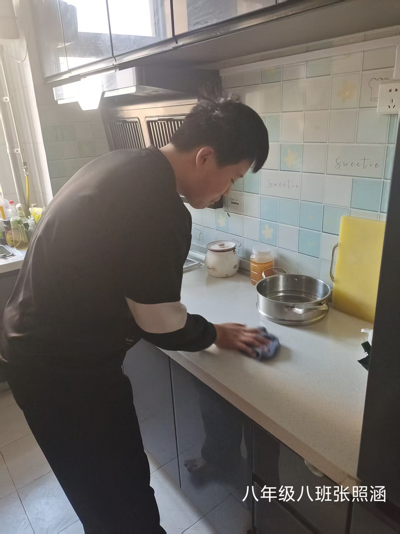 志愿者根据社区工作人员安排,对社区内的楼梯楼道等公共区域进行卫生清洁,在家进行力所能及的居家卫生清洁活动。