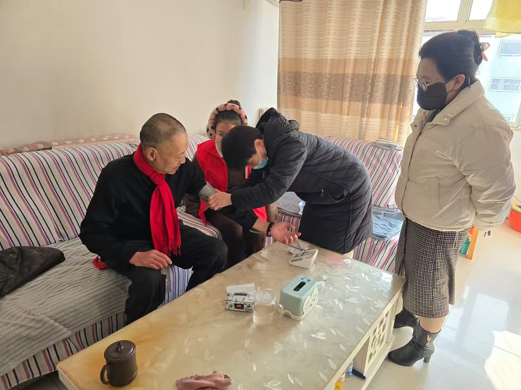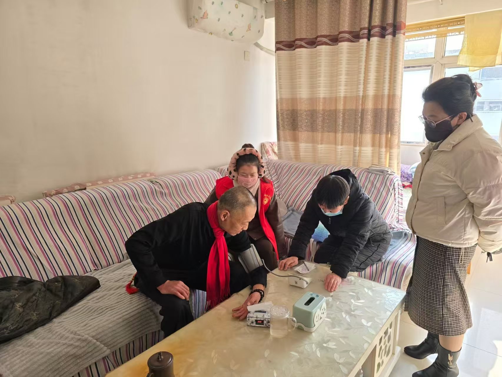 协庄社区开展免费上门为老年人测血压志愿服务活动