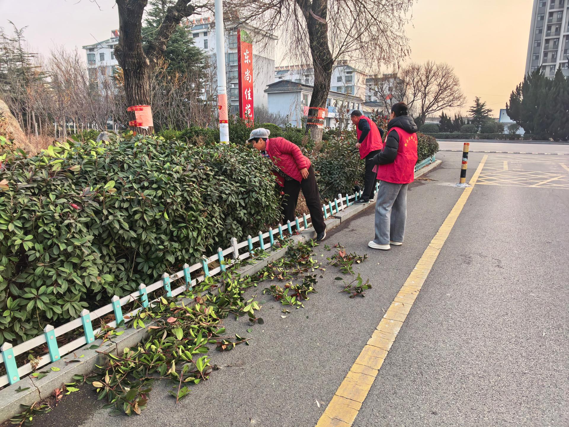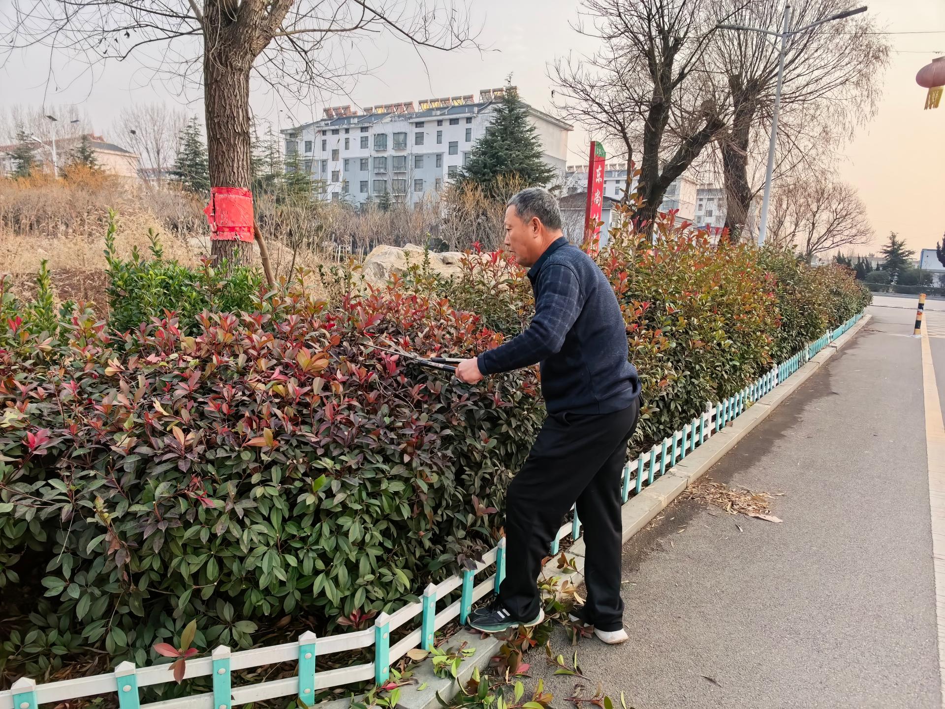 西张庄镇东白沙村修剪社区绿化带党员志愿活动