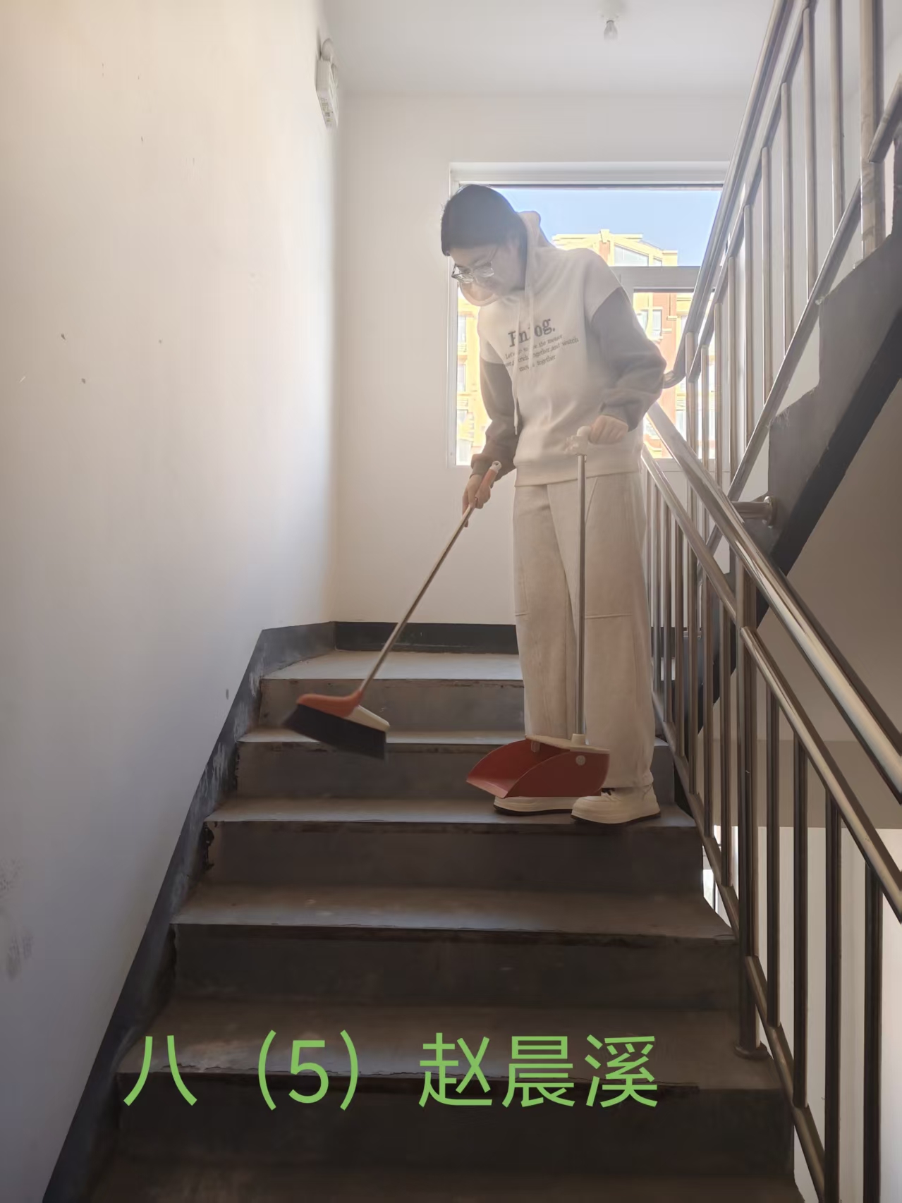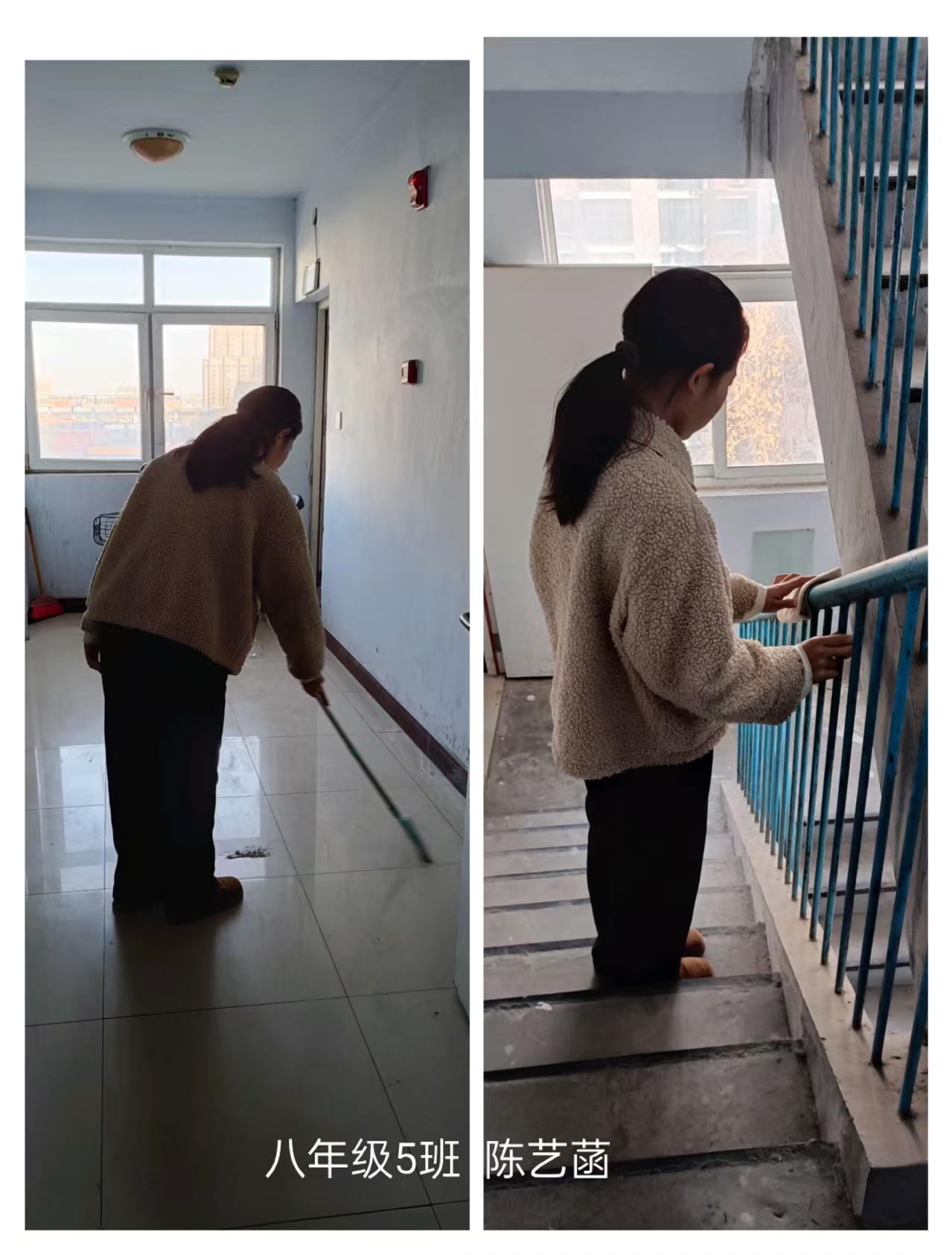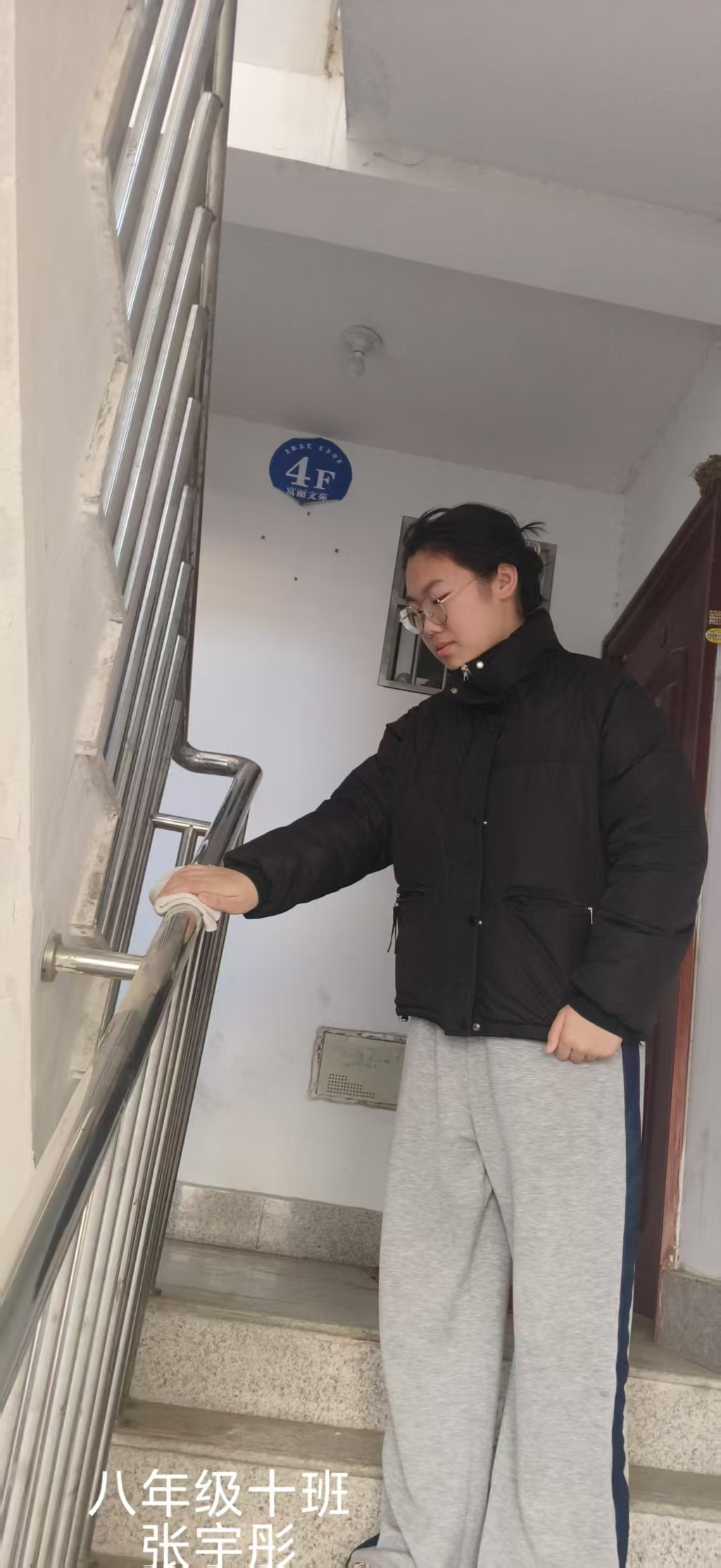 志愿者根据社区工作人员安排,对社区内的楼道楼梯进行保洁,在社区内进行冬季安全知识宣讲,居家进行家务劳动。
