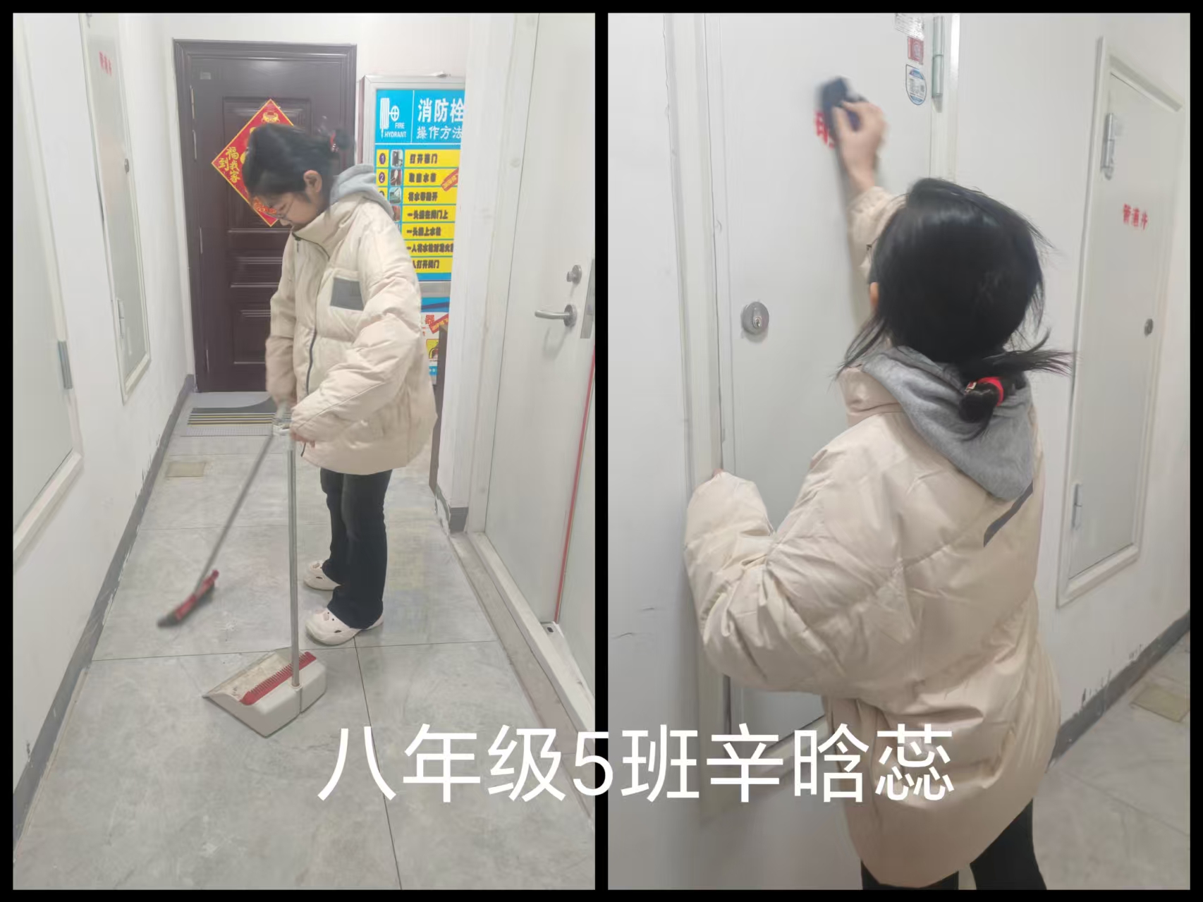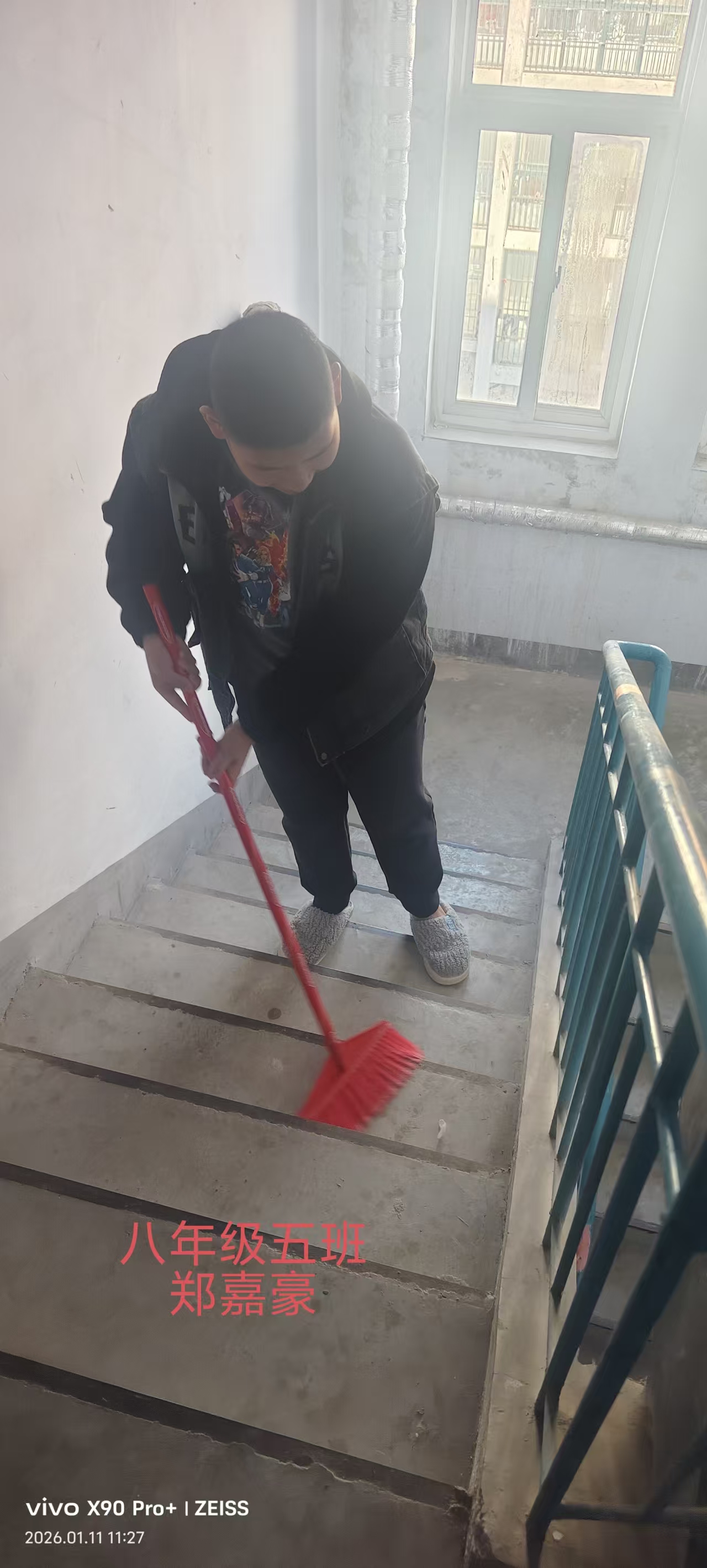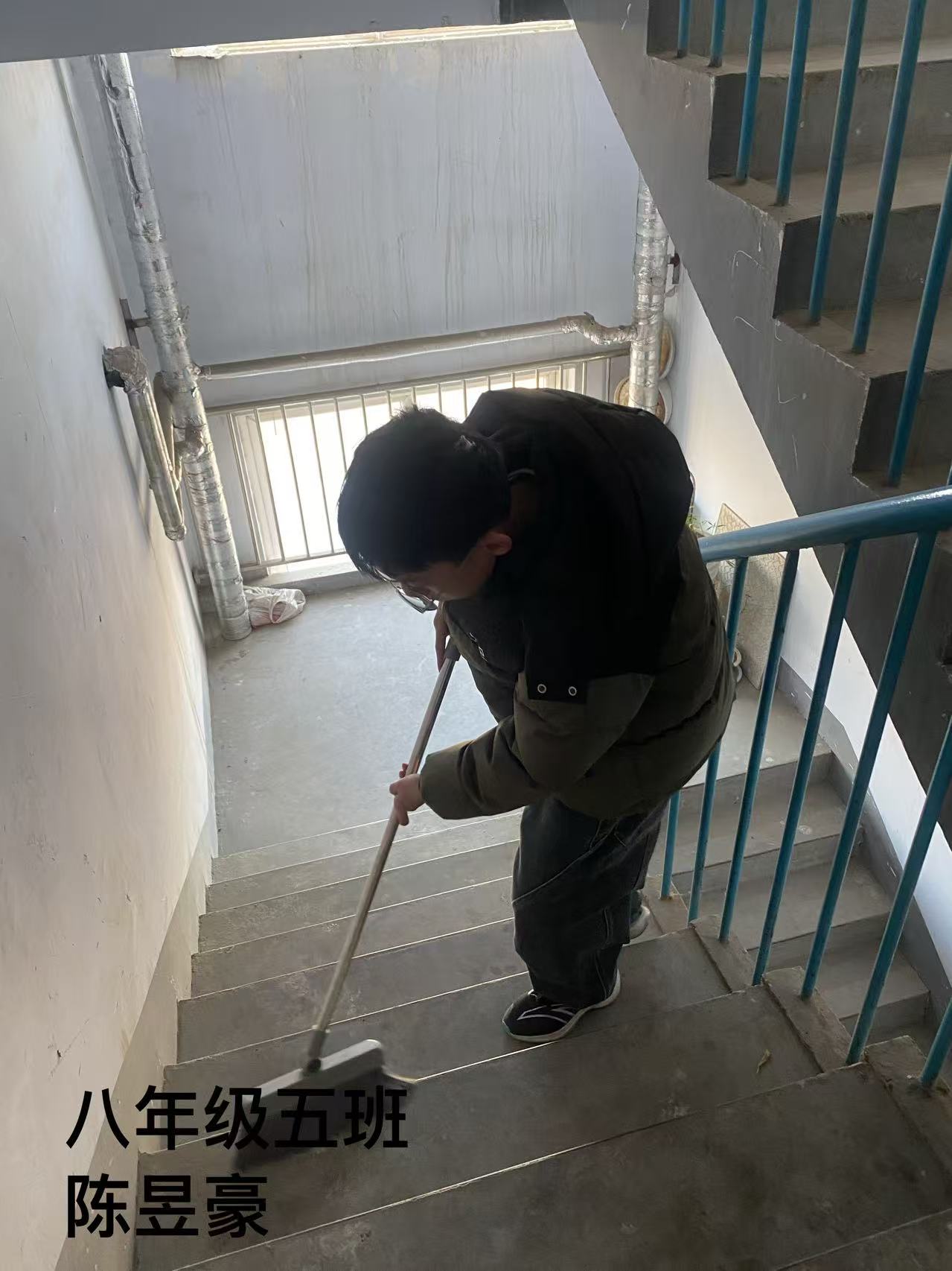 志愿者根据社区工作人员安排,对社区内的楼道楼梯进行保洁,在社区内进行冬季安全知识宣讲,居家进行家务劳动。
