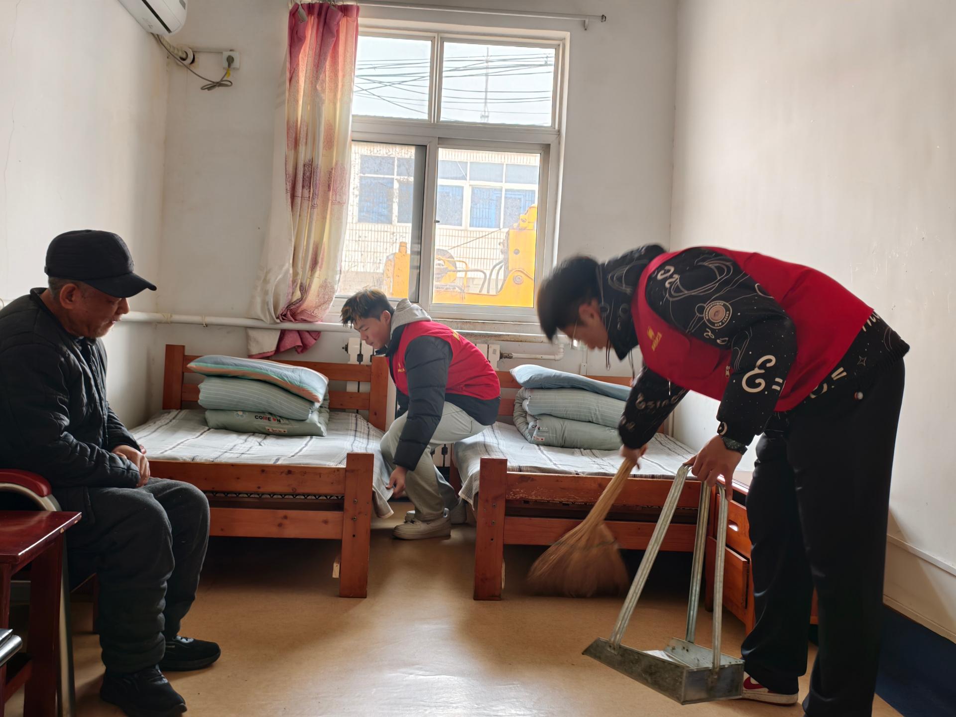 带领大学生返家乡大学生青鸟学子们走进新城办事处老年公寓,为老人们送去新年祝福,带去点心、蛋糕、水果等慰问品,为老人们打扫卫生、理发、修剪指甲等