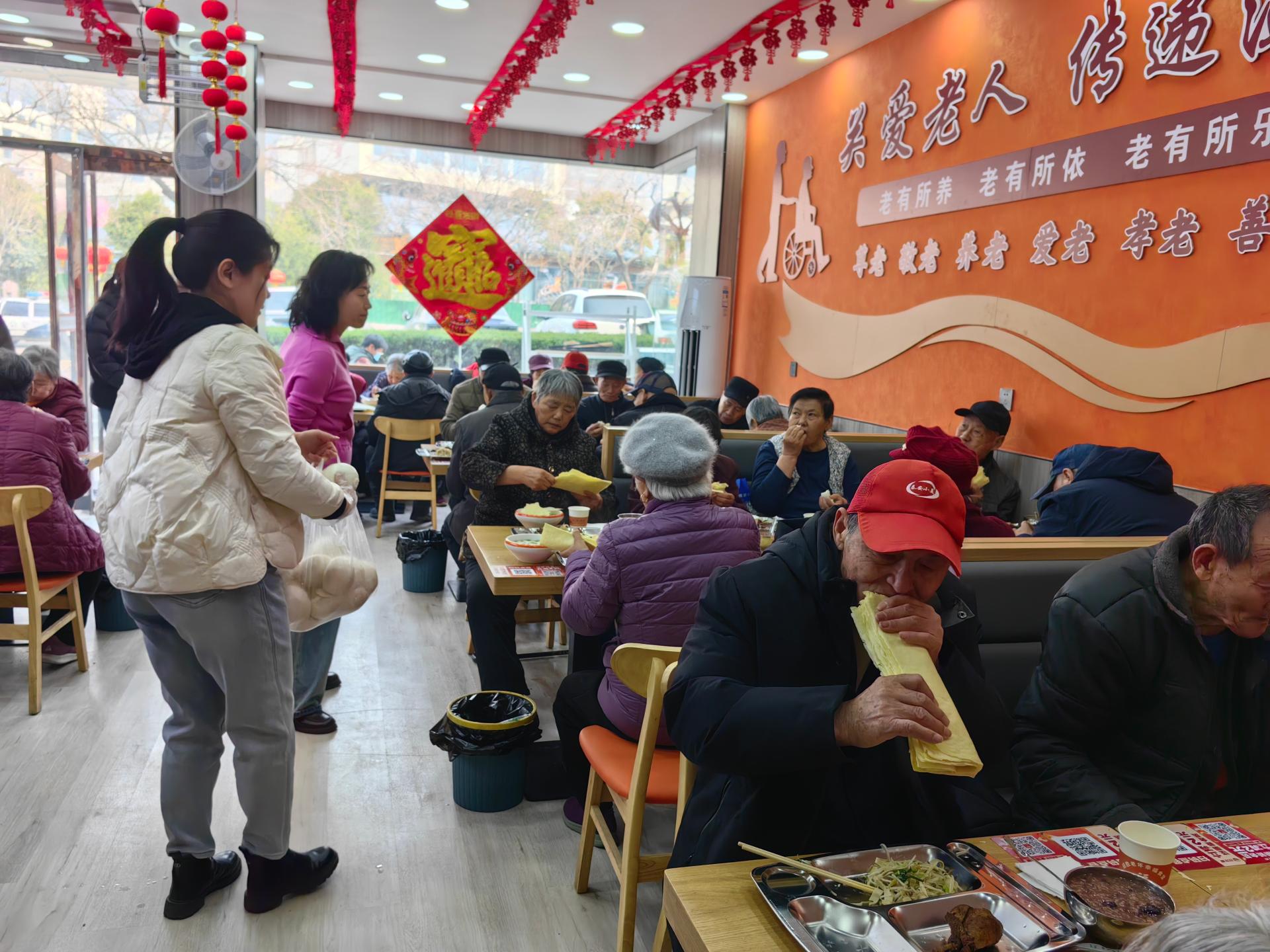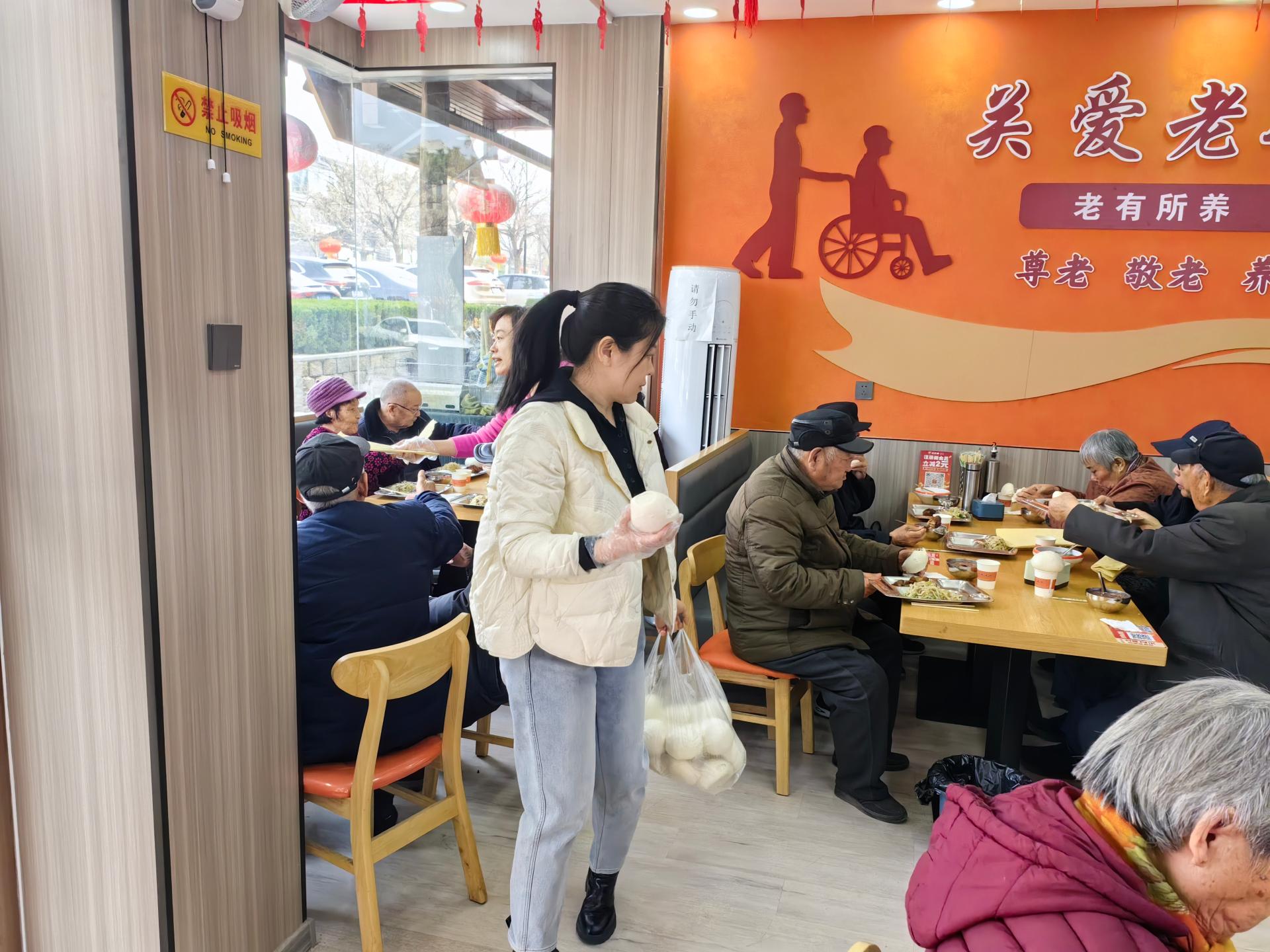 为前来就餐的老人提供助餐服务,从引领、搀扶老人进入食堂到为老人分饭、汤,包括餐后收拾等。在另有专人负责就餐老人的打卡工作,未能来就餐的老人及时联系。