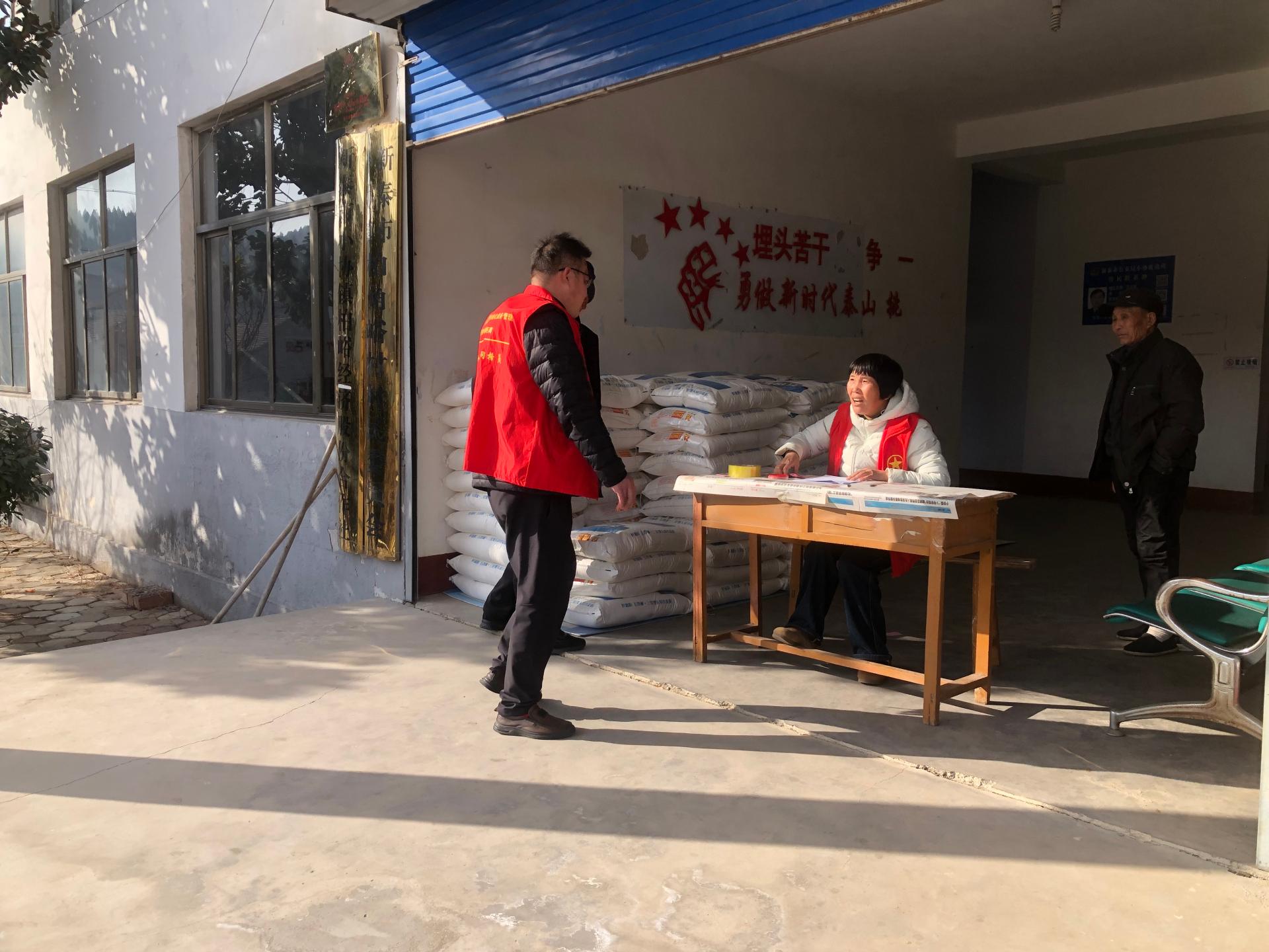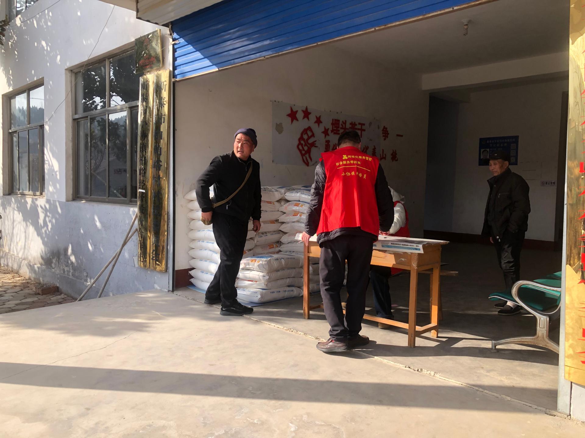 柏角峪村组织开展为70岁老人发放面粉志愿服务活动,志愿者整理出符合条件的老人名单,在村广场统一发放,并协助老人把面粉放到小推车或电动车上。