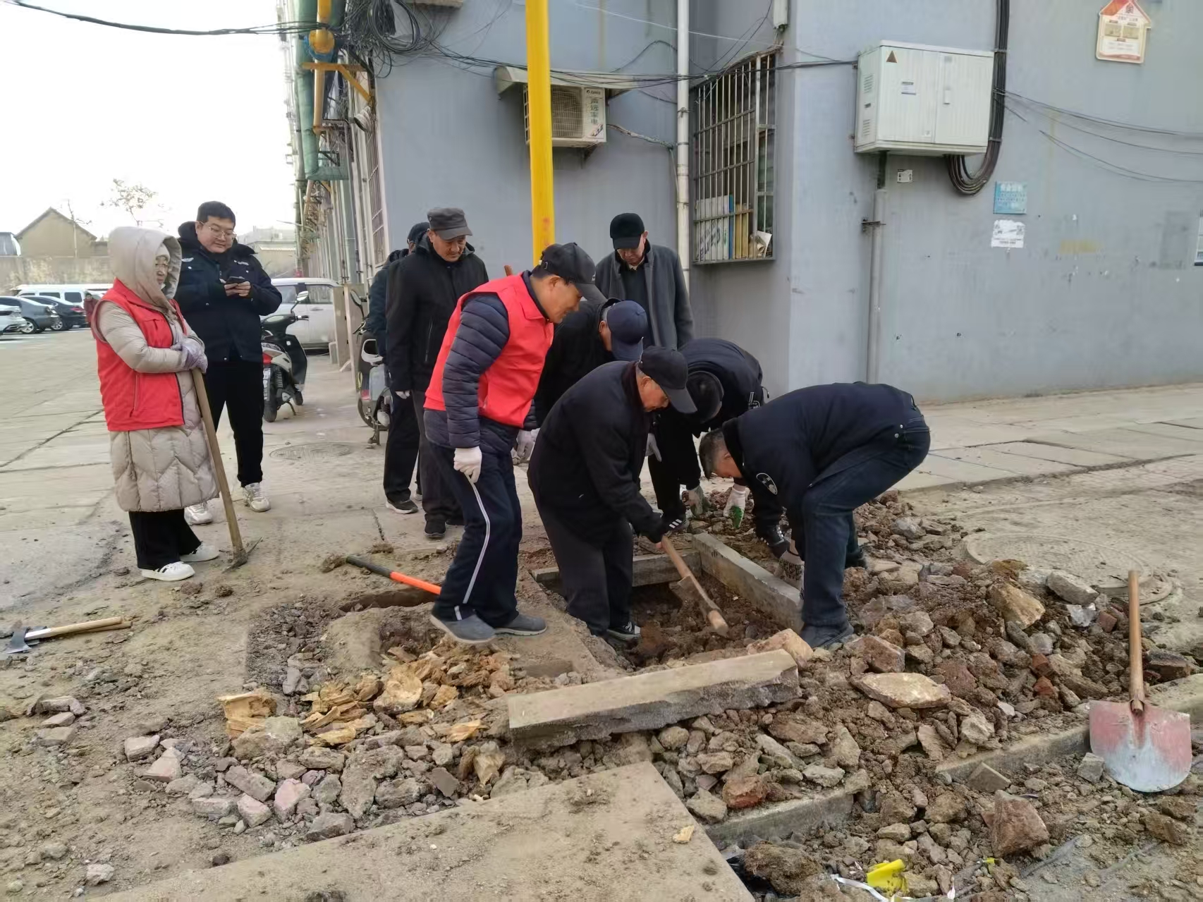 协庄社区组织志愿者们在仰北区开展清理社区道路志愿服务活动,志愿者们身着红马甲,手持扫帚、拖把、夹子等清洁工具,分工协作、干劲十足。以实际行动践行初心使命,为建设美丽宜居社区贡献力量。