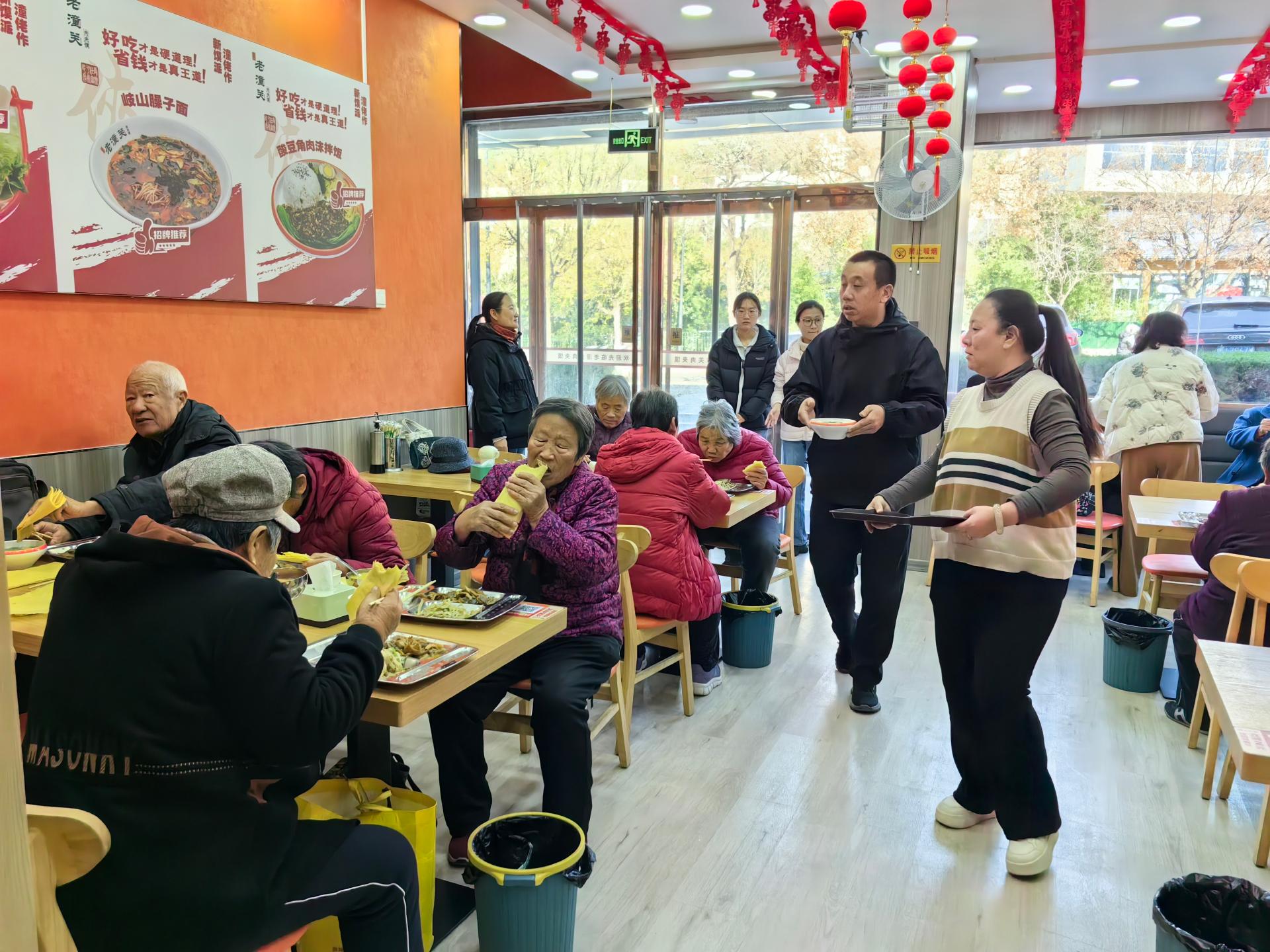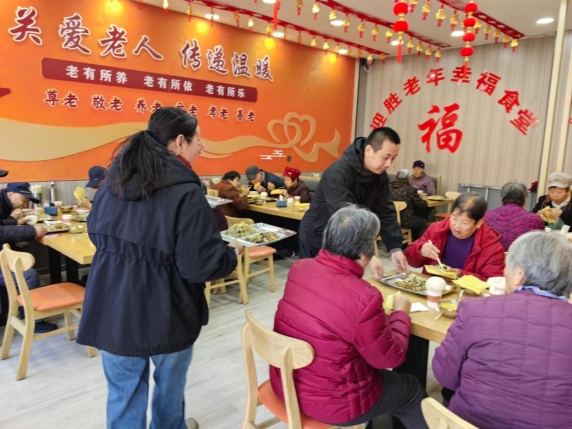 为前来就餐的老人提供助餐服务,从引领、搀扶老人进入食堂到为老人分饭、汤,包括餐后收拾等。在另有专人负责就餐老人的打卡工作,未能来就餐的老人及时联系。