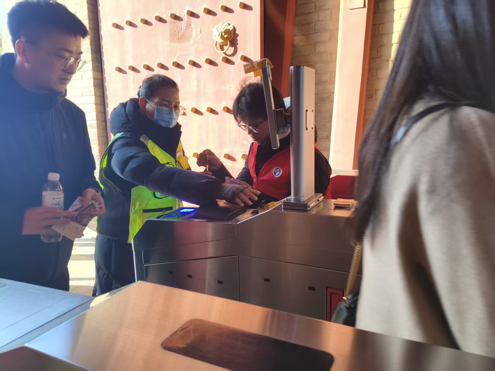在元旦期间,开展文明旅游志愿服务活动。主动倡导文明旅游。引导游客景区内全面禁烟,爱护文物古迹,禁止攀爬古建筑;及时做好秩序维护,辅助完成票证检验和卫生保洁工作;做好咨询服务工作。