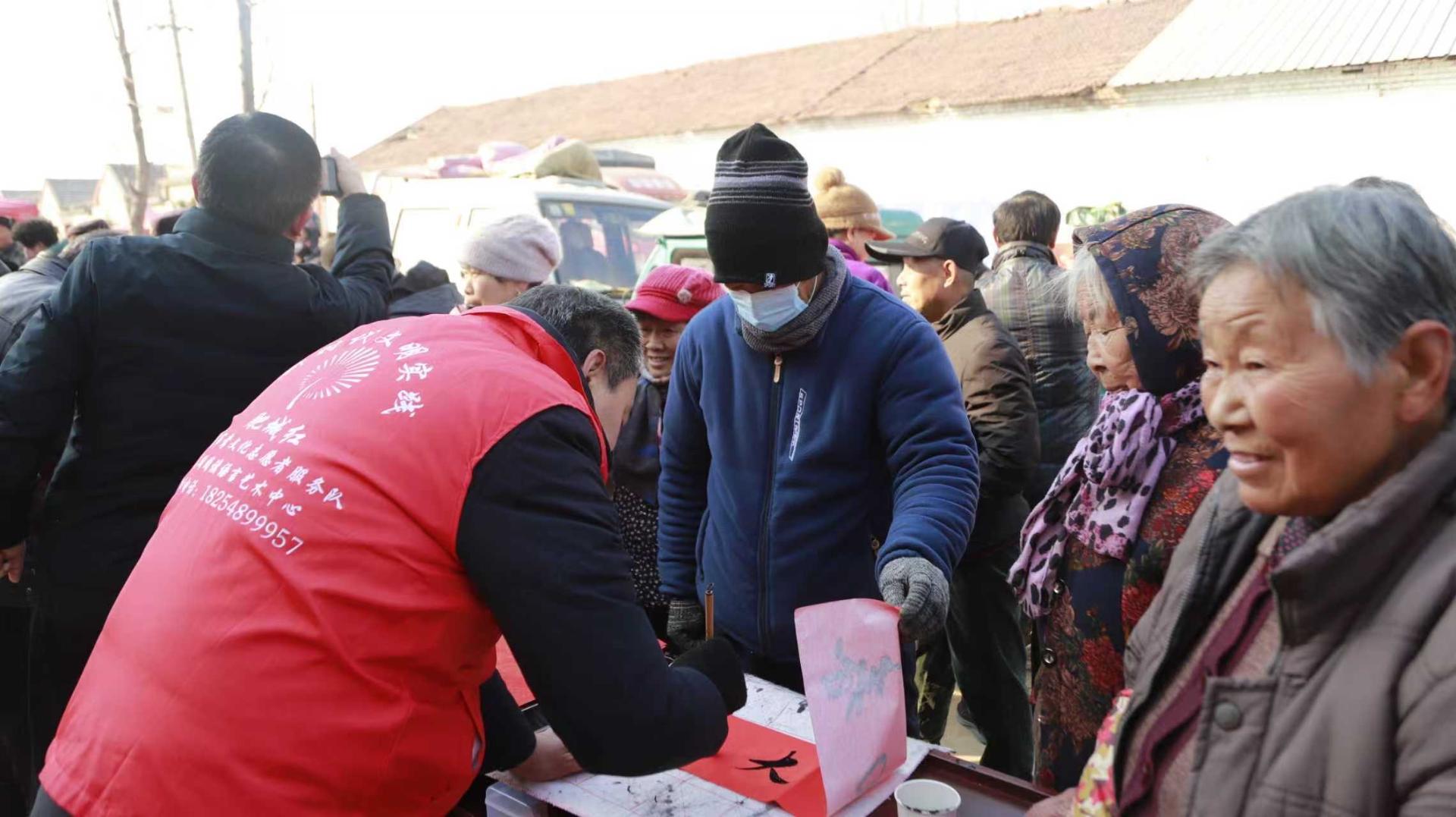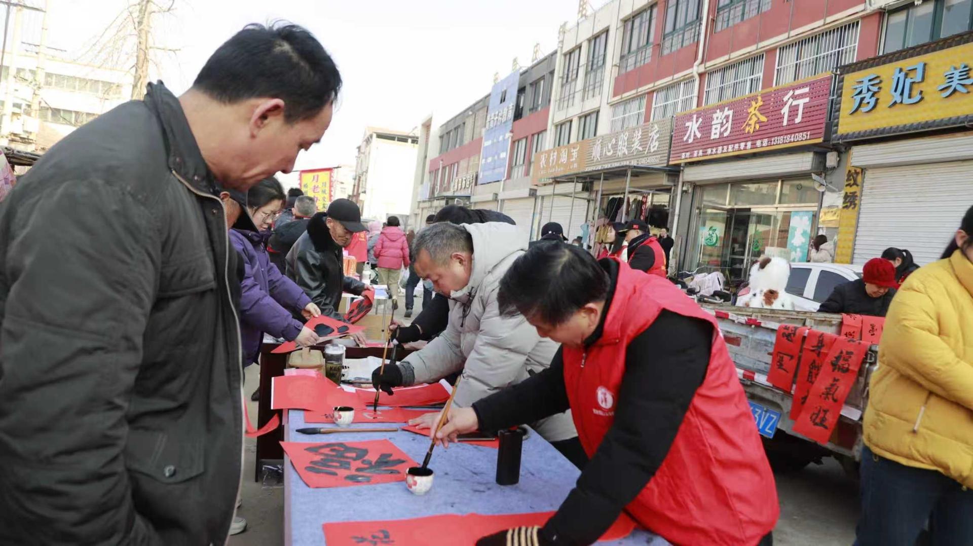 “文化惠民,翰墨送暖,福进万家,”写春联,书法送福活动,为社区居民带去新春祝福和慰问,特邀书法家为居民写春联