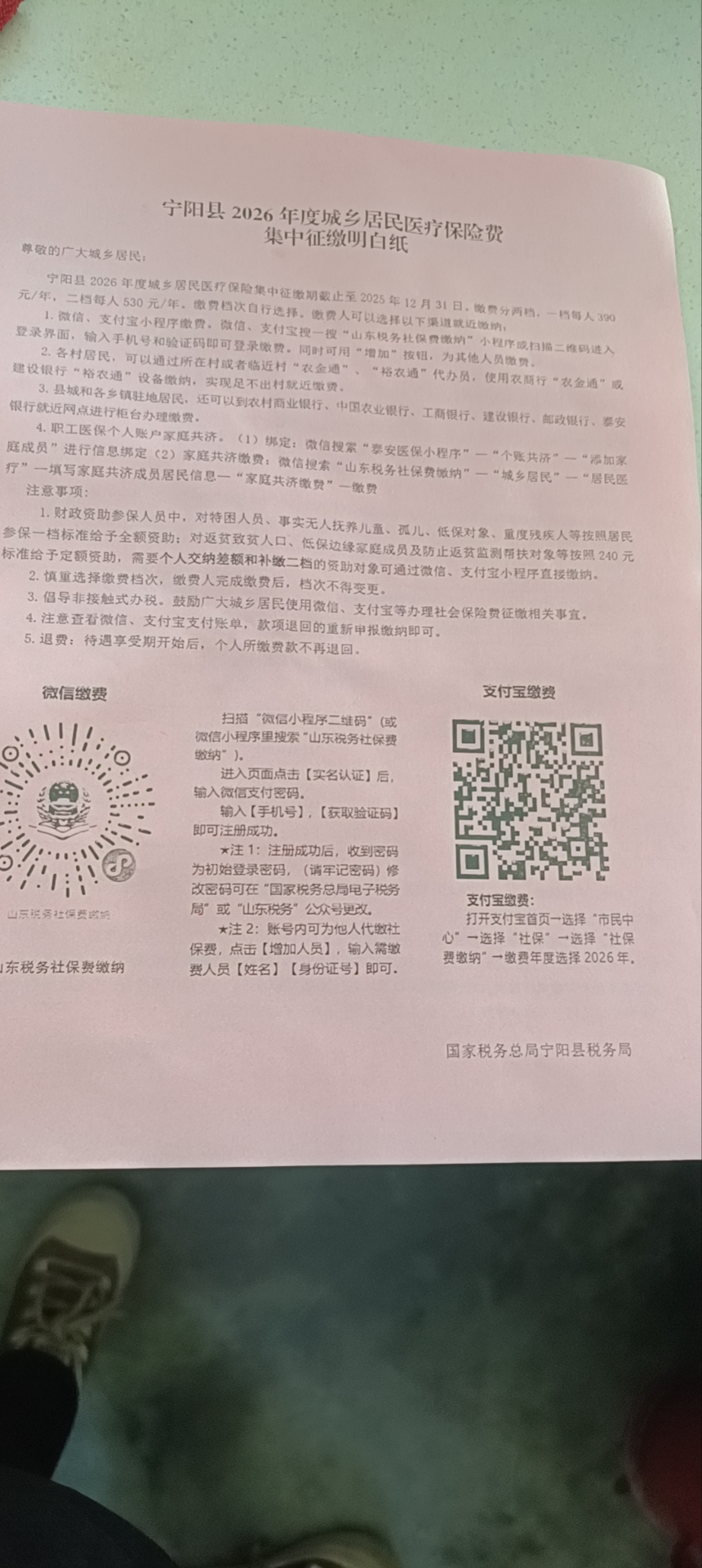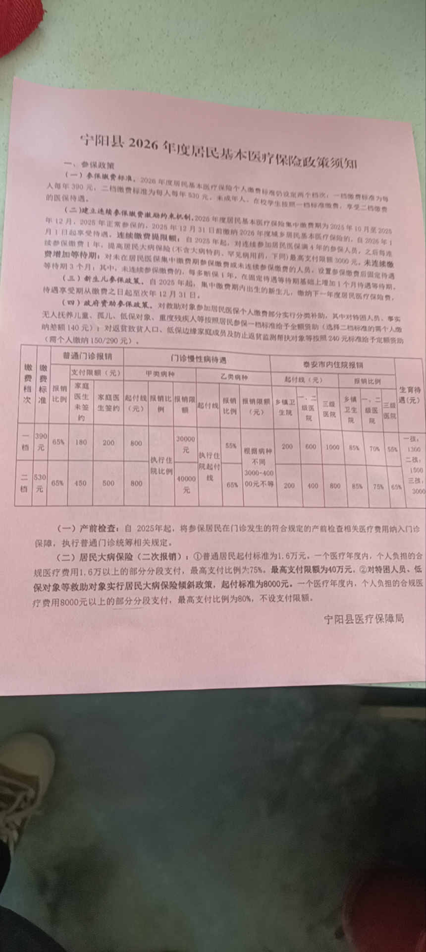 2026年居民基本医疗保险个人缴费标准设定两个档次,一档缴费标准为每人390元,二档缴费标准每人每年530元。