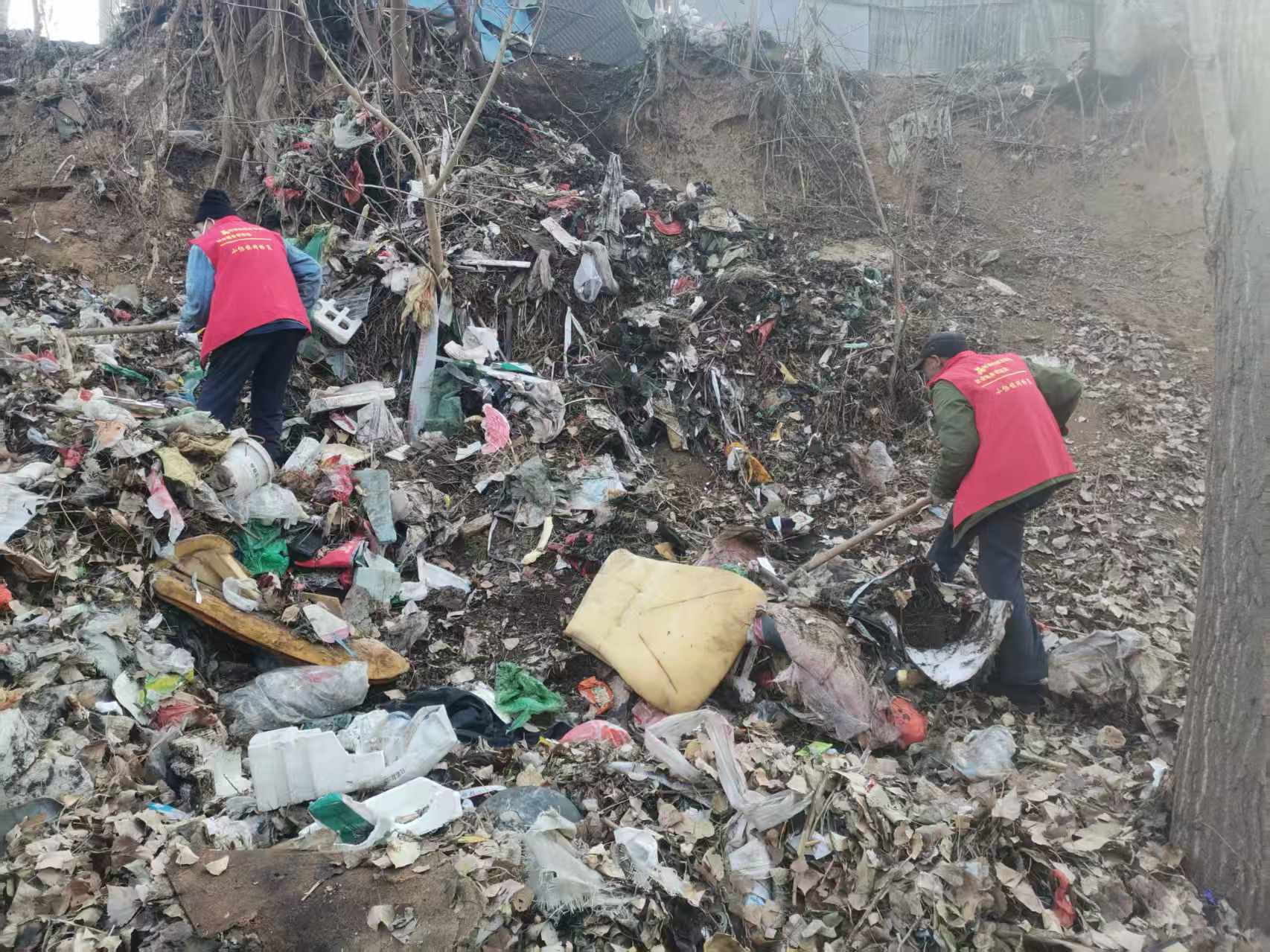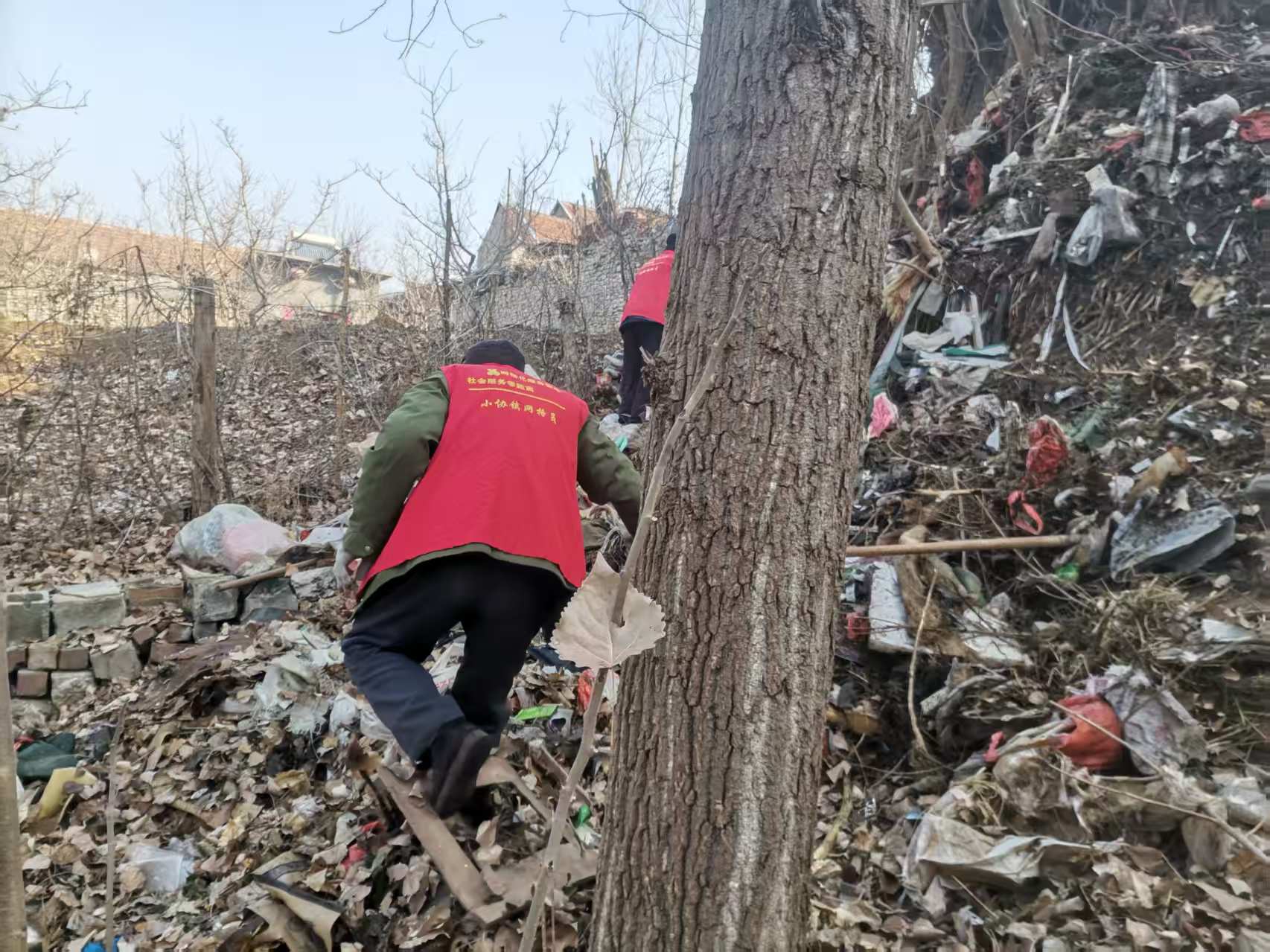 新泰市小协镇陈角峪村爱心志愿服务活动陈角峪爱心志愿者协助村内卫生清理人员清理村内各个角落垃圾志愿服务活动。
