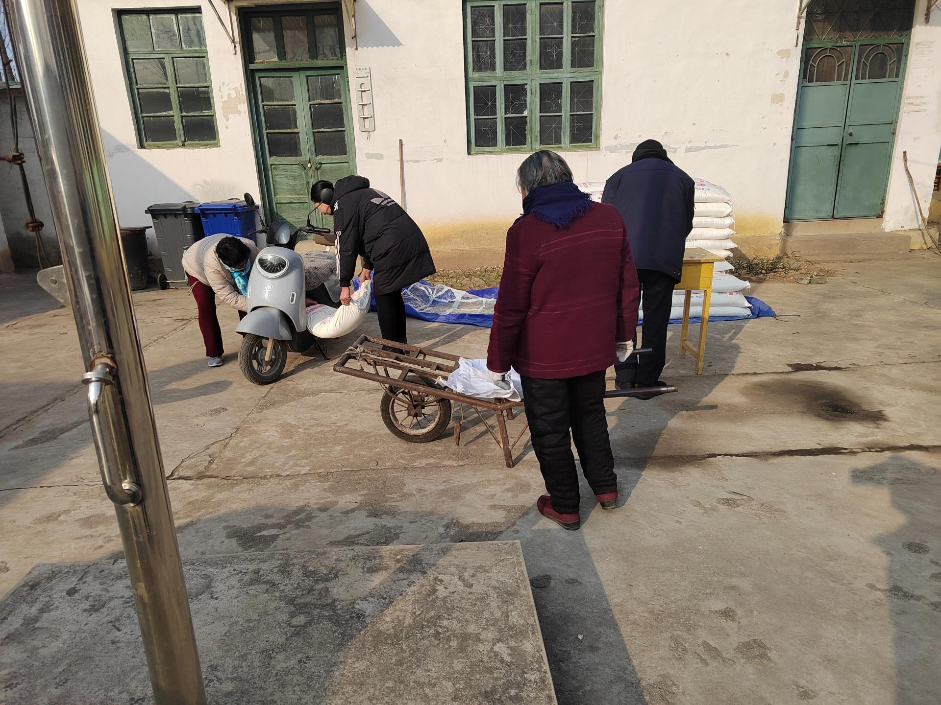史家庄村组织开展给70岁以上老人(含70岁)发放50斤面粉一袋,老人看着沉甸甸的面粉,脸上洋溢着幸福的笑容。