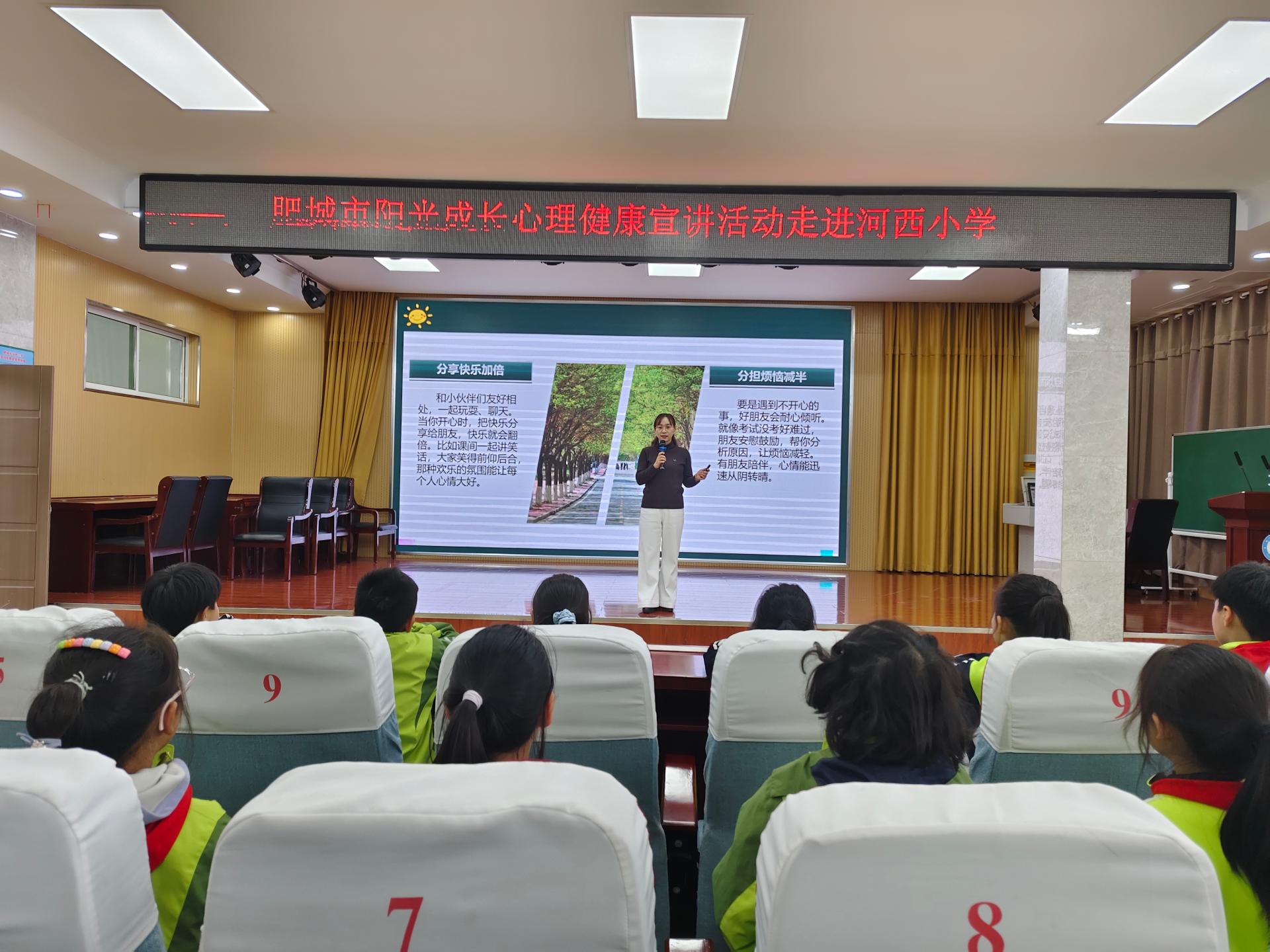肥城市阳光成长心理健康教育宣讲活动走进河西小学,帮助学生缓解学习和心理压力,助力学生健康快乐的成长。
