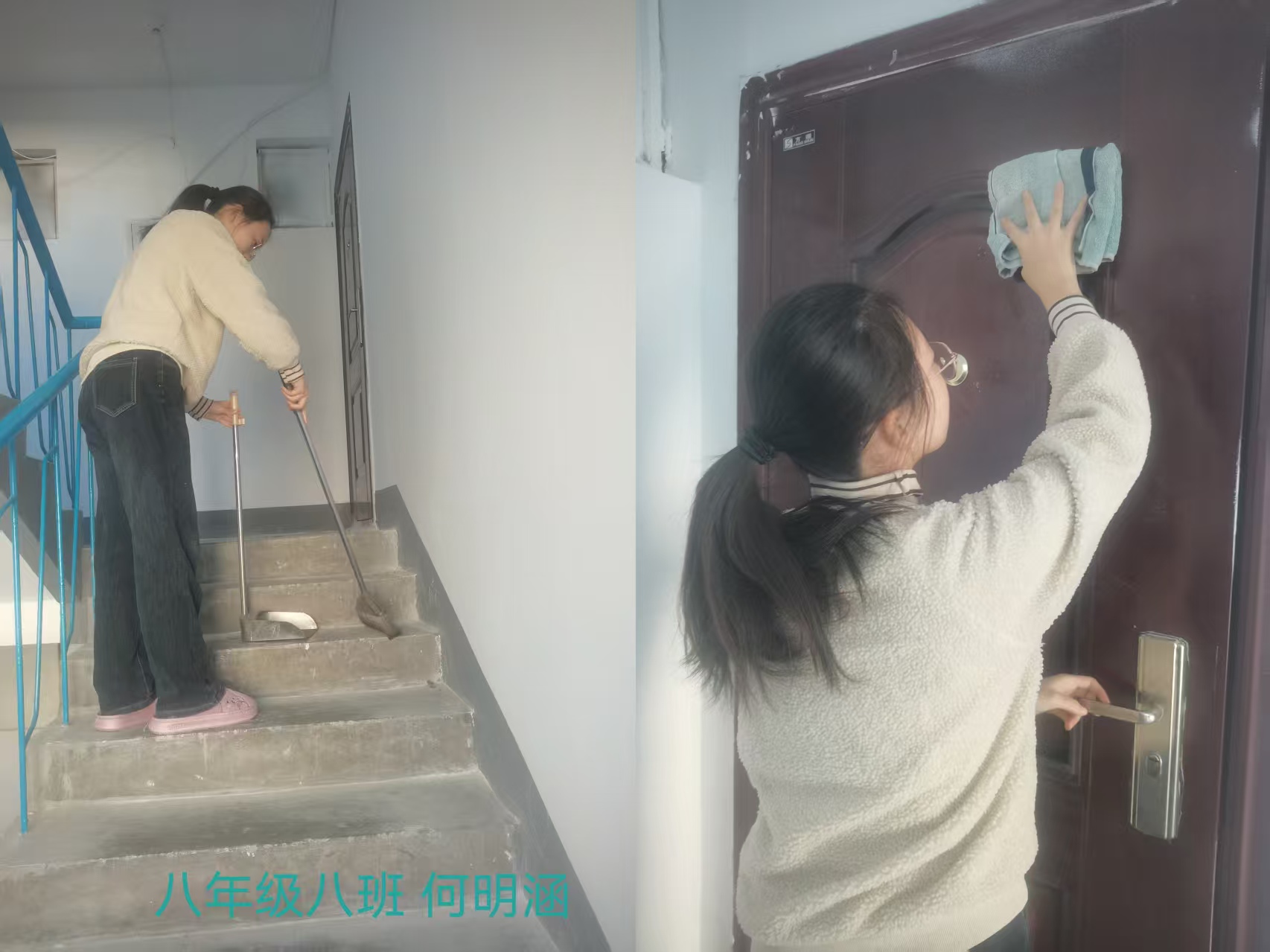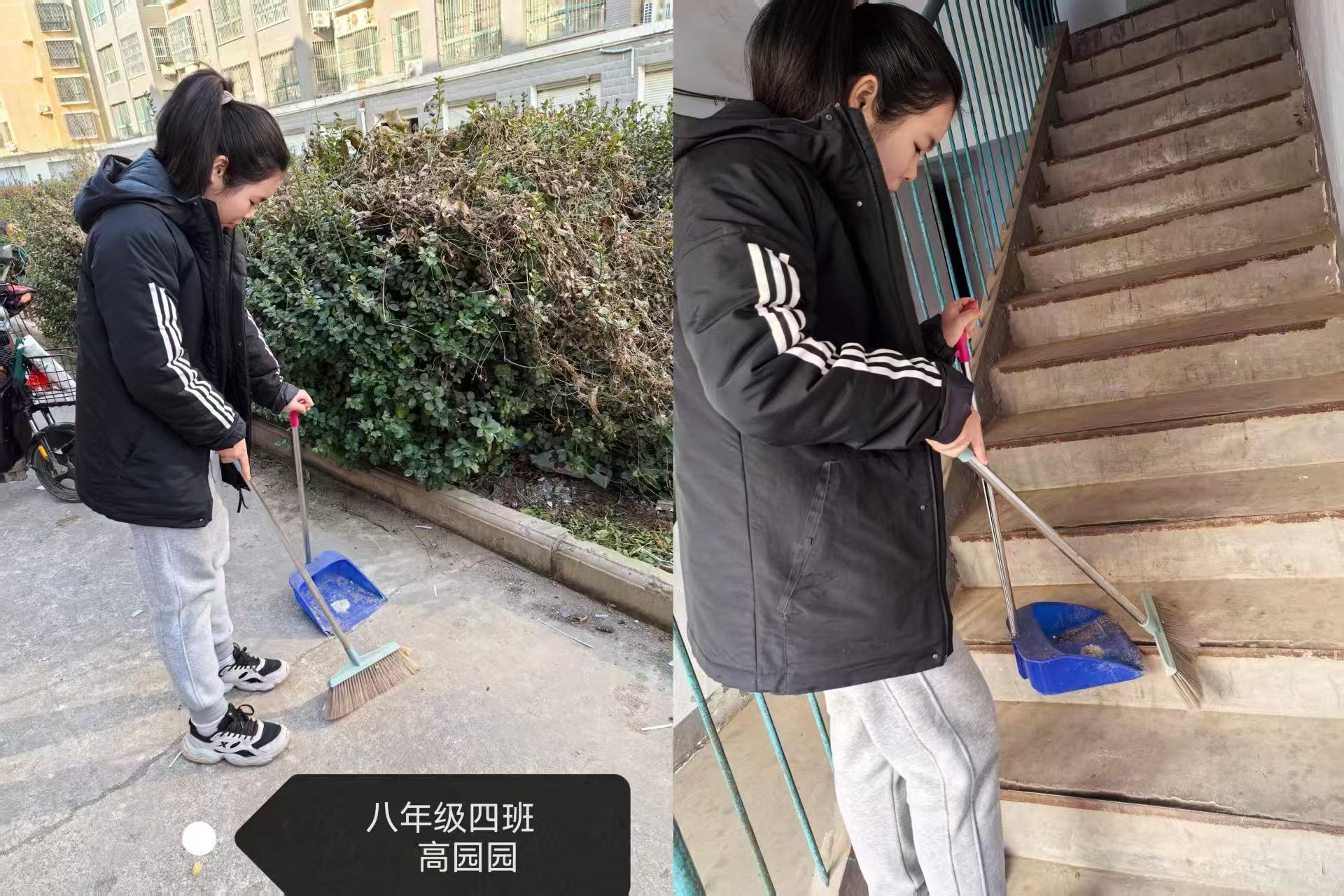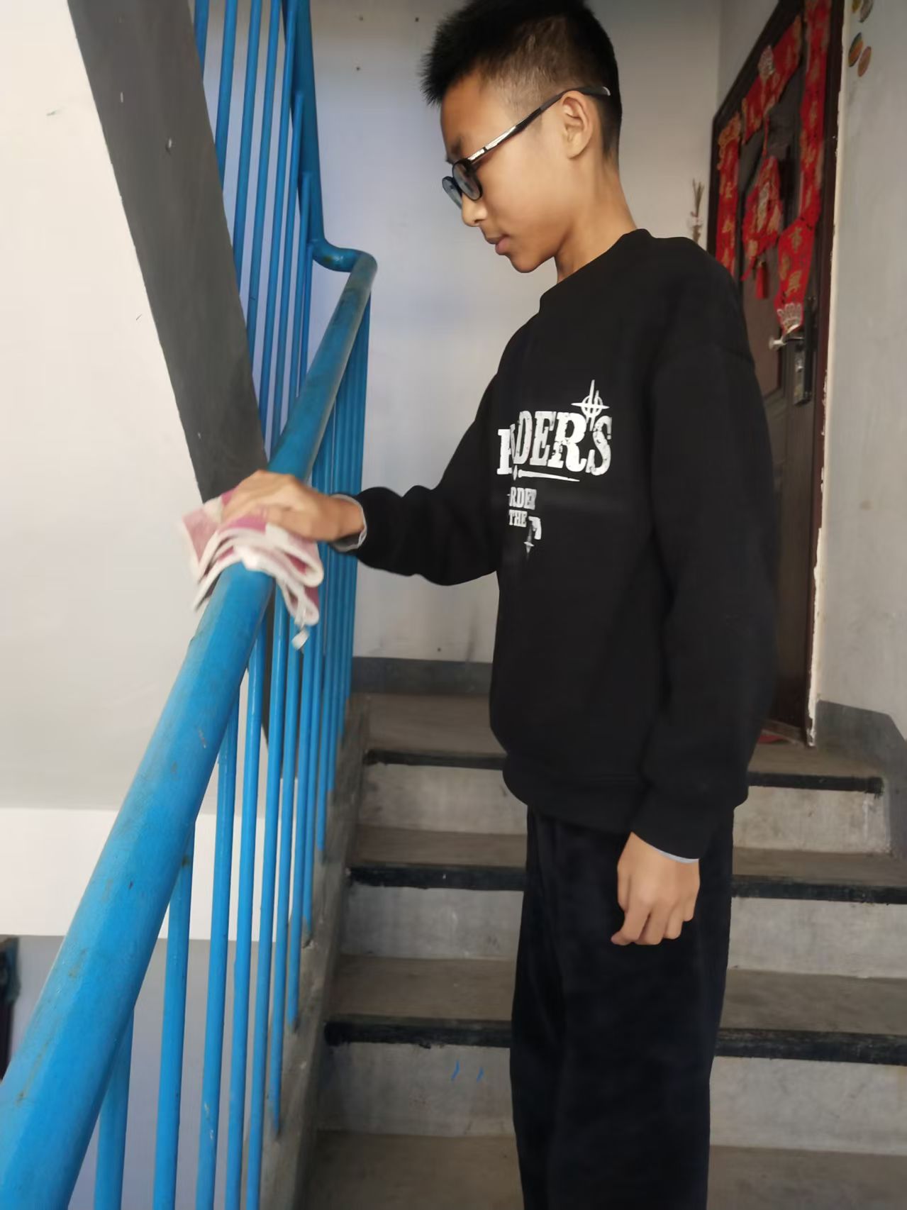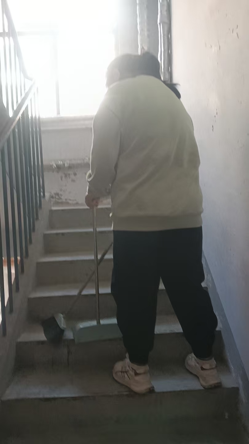 志愿者根据社区工作人员安排,对社区内的楼道楼梯进行保洁,在社区内进行冬季安全知识宣讲,居家进行家务劳动。