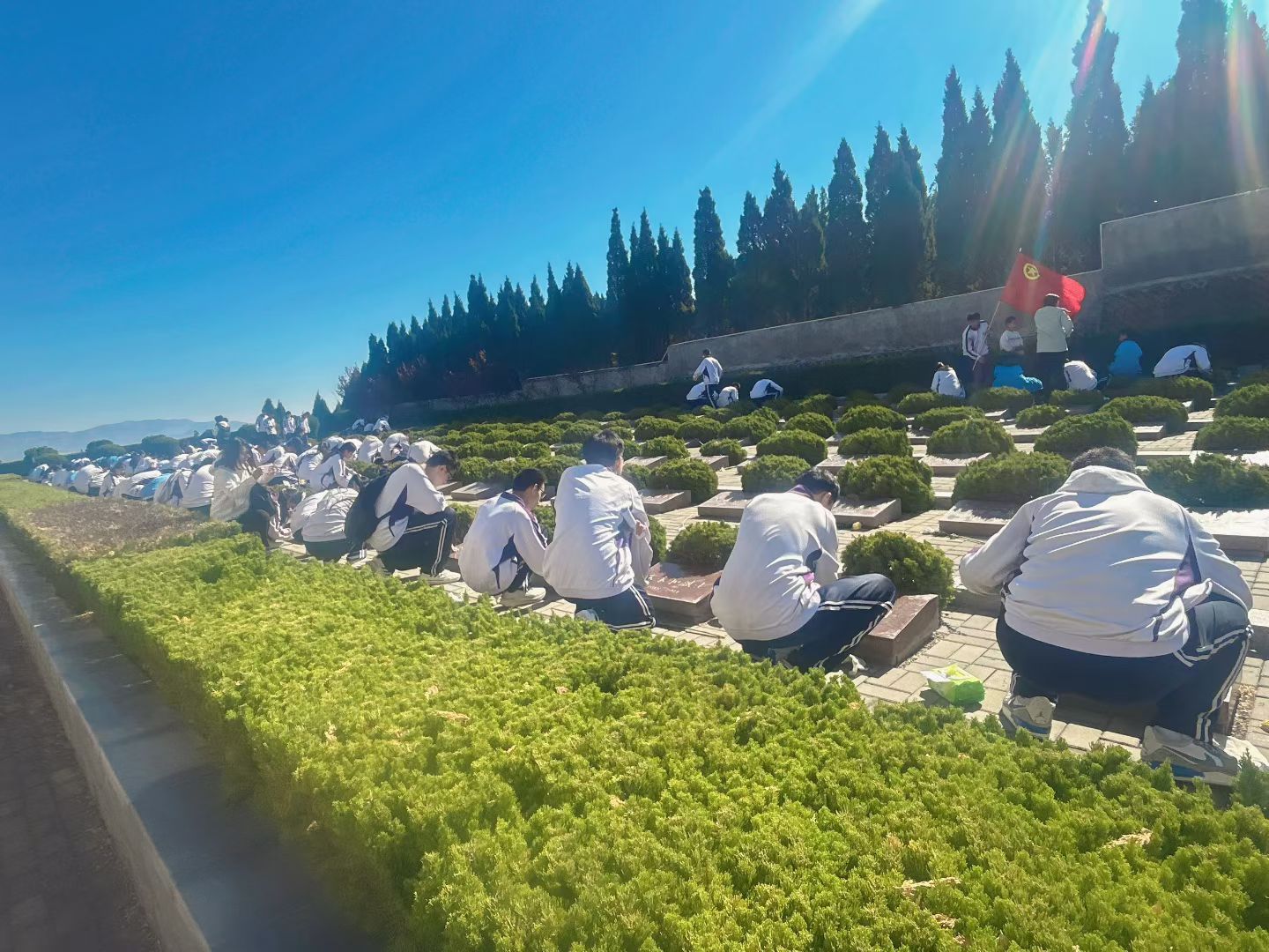 追寻2026清明祭英烈志愿服务活动,为英烈清扫墓园,擦墓碑,用实际行动告慰英雄先烈们,让学生在活动中体验志愿服务的阶值,把红色基因传承下去。