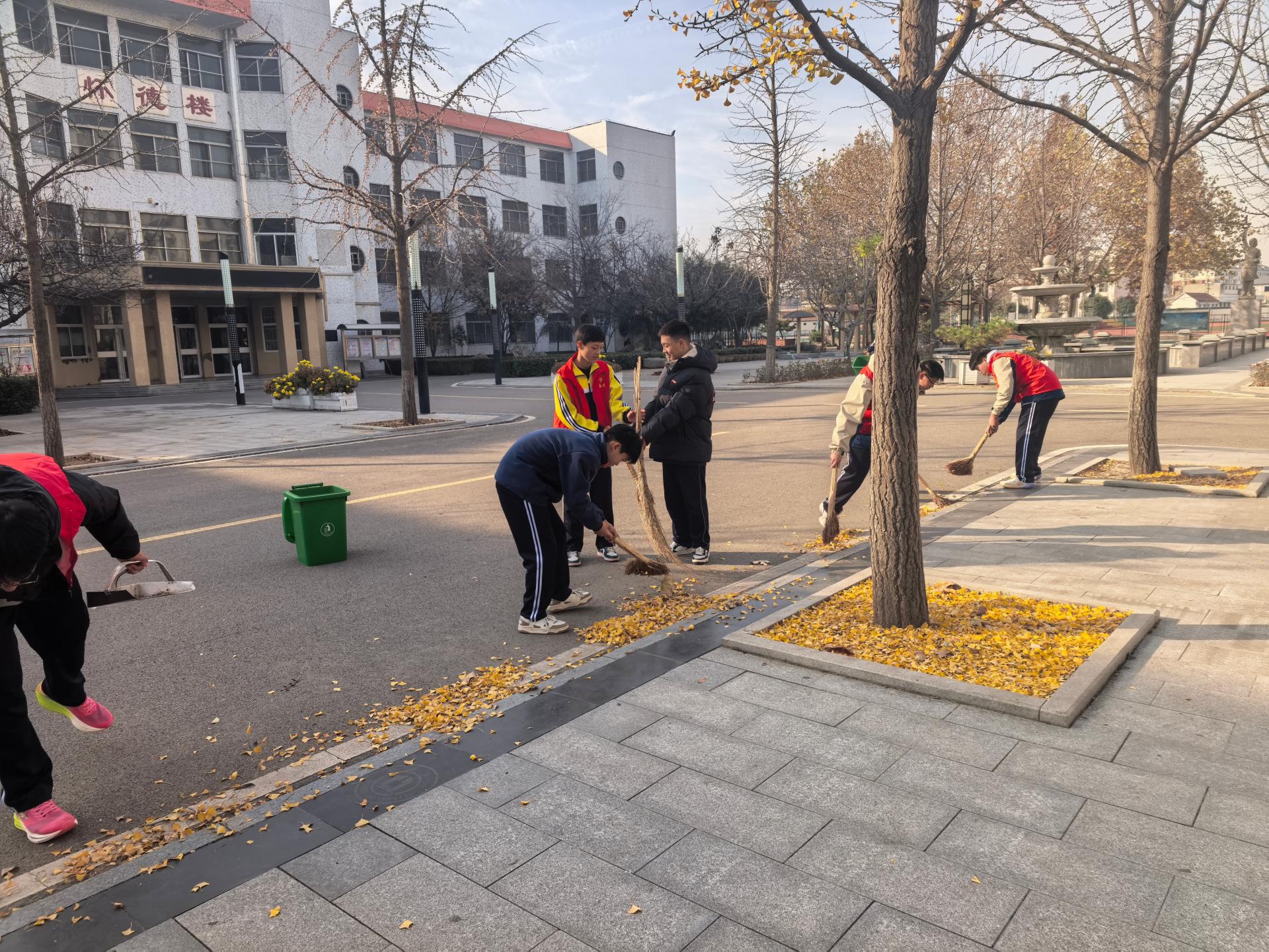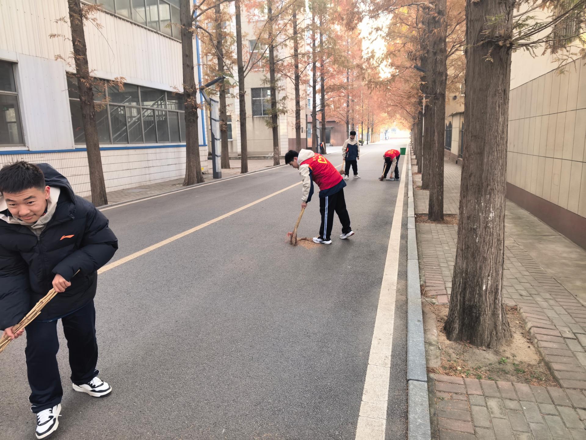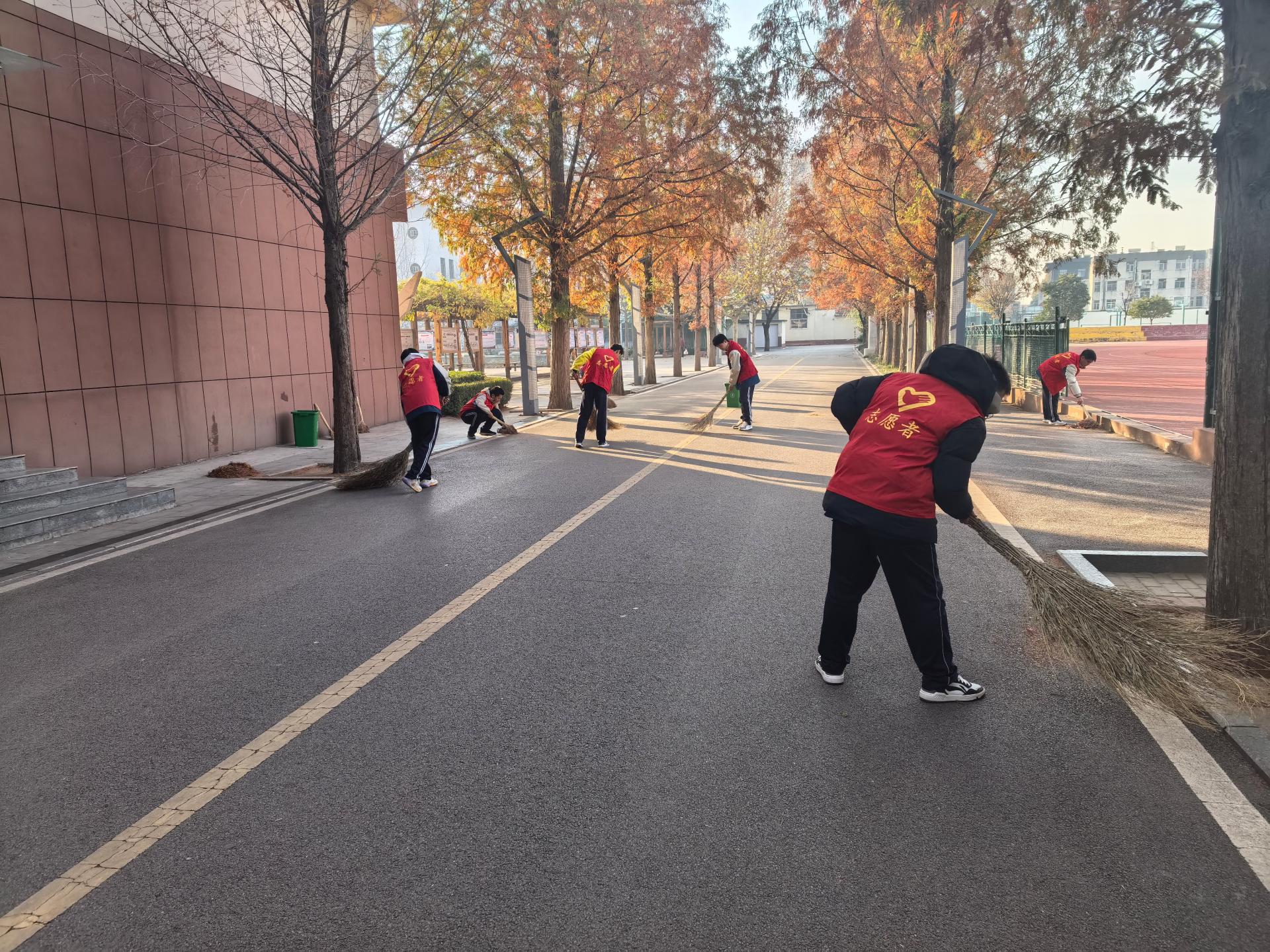 1.彻底清扫校园垃圾,重点是教学楼前广场和两侧道路。2.篮球场两侧花坛落叶清理。3.在楼前广场集合点名,按时签到签退
