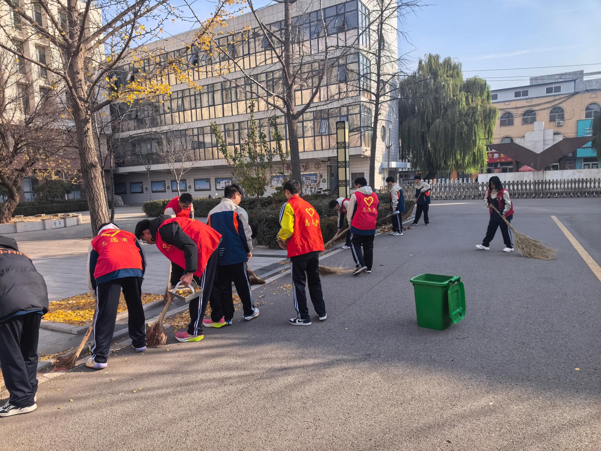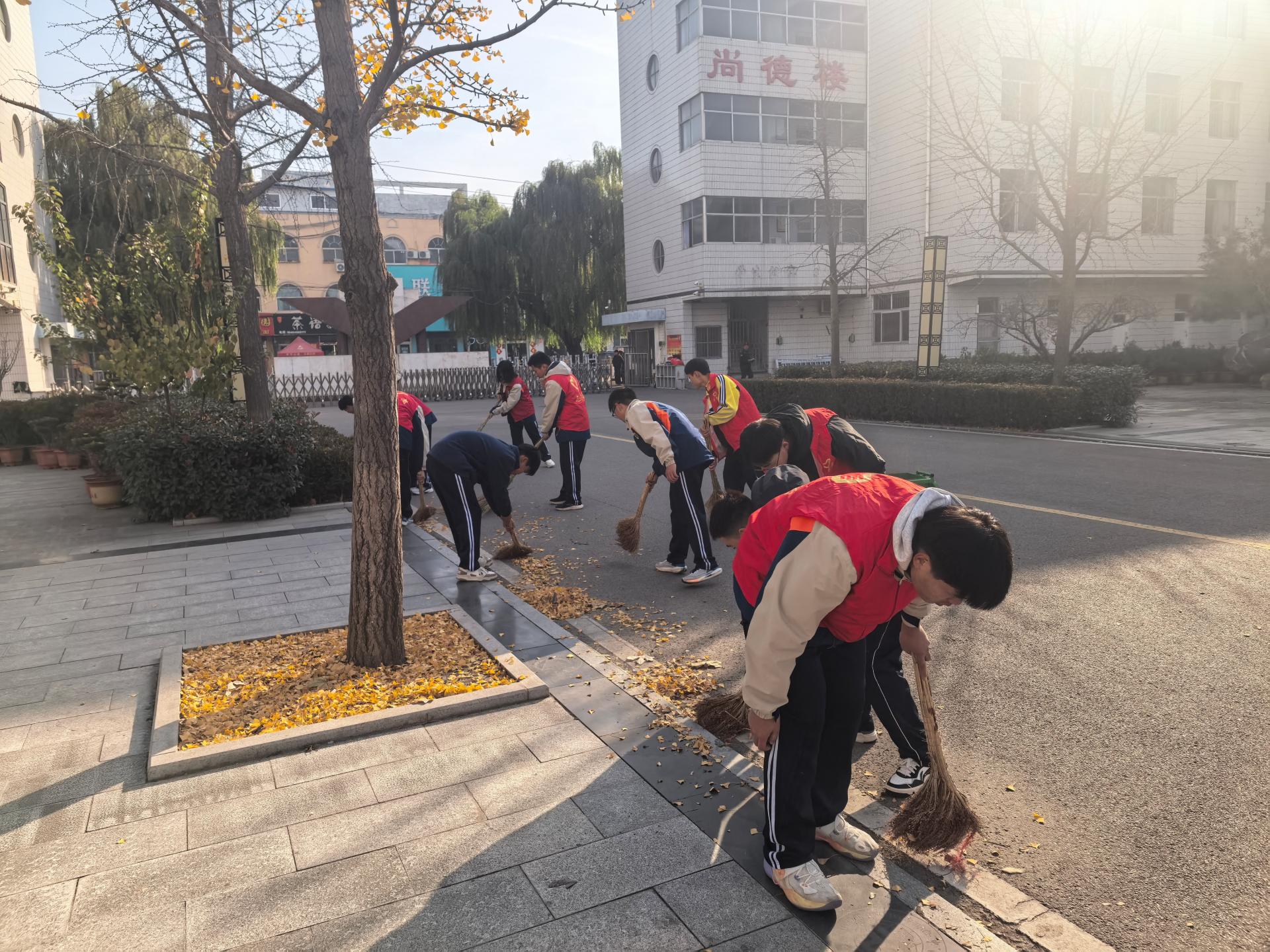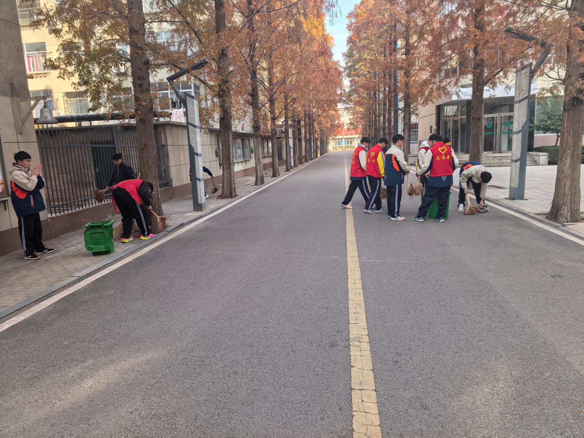 1.彻底清扫校园垃圾,重点是教学楼前广场和两侧道路。2.篮球场两侧花坛落叶清理。3.在楼前广场集合点名,按时签到签退