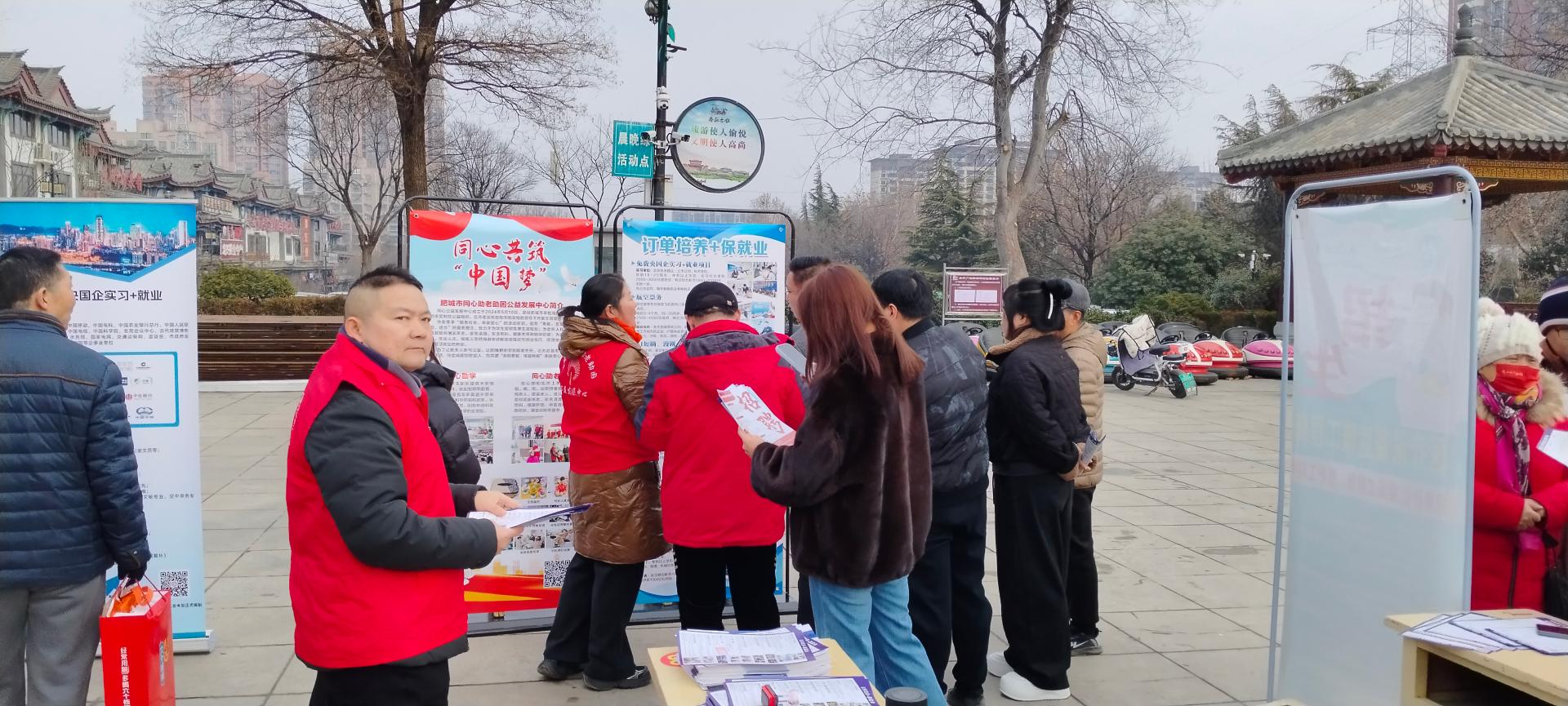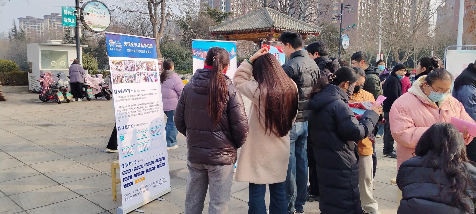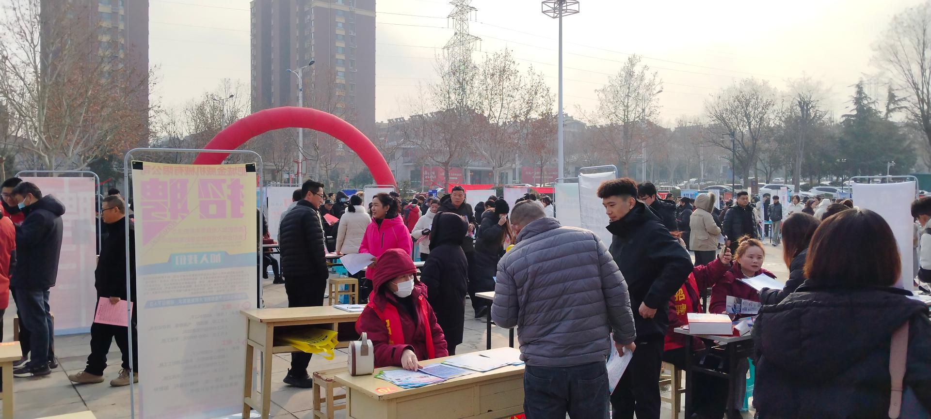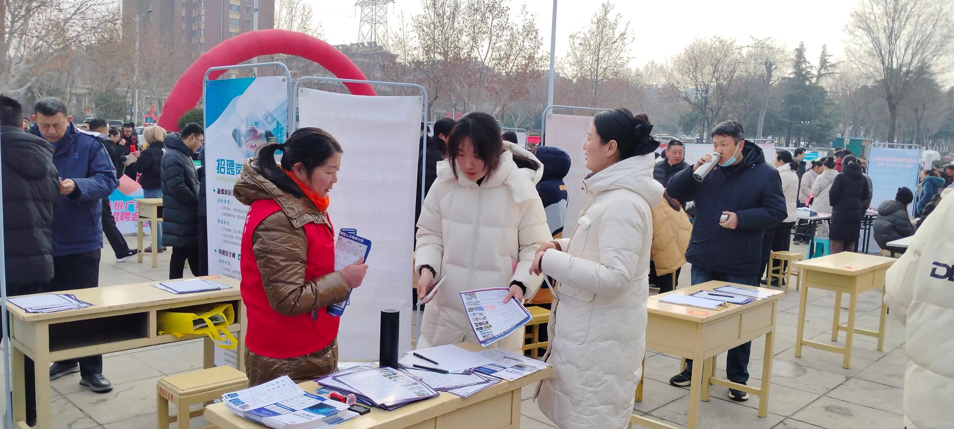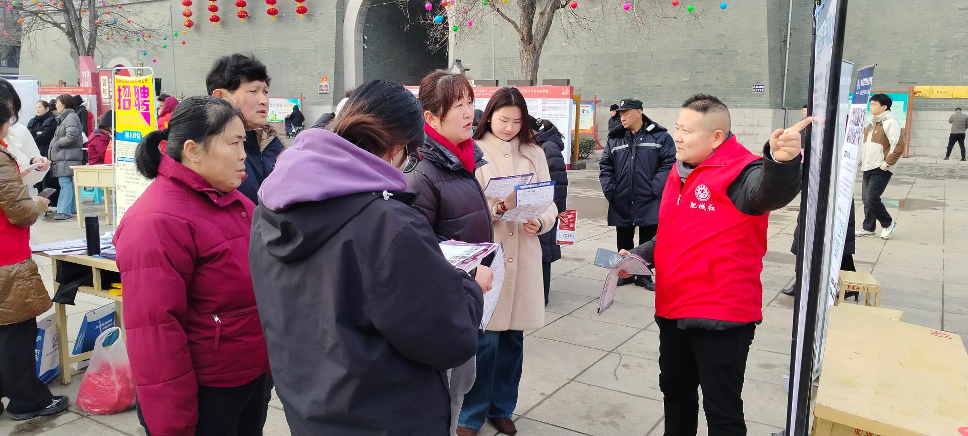 为促进就业,肥城市人社局2月10日上午九点在春秋古城东门广场举办大型招聘会,同心公益招聘志愿者维持秩序,体验求职全流程。