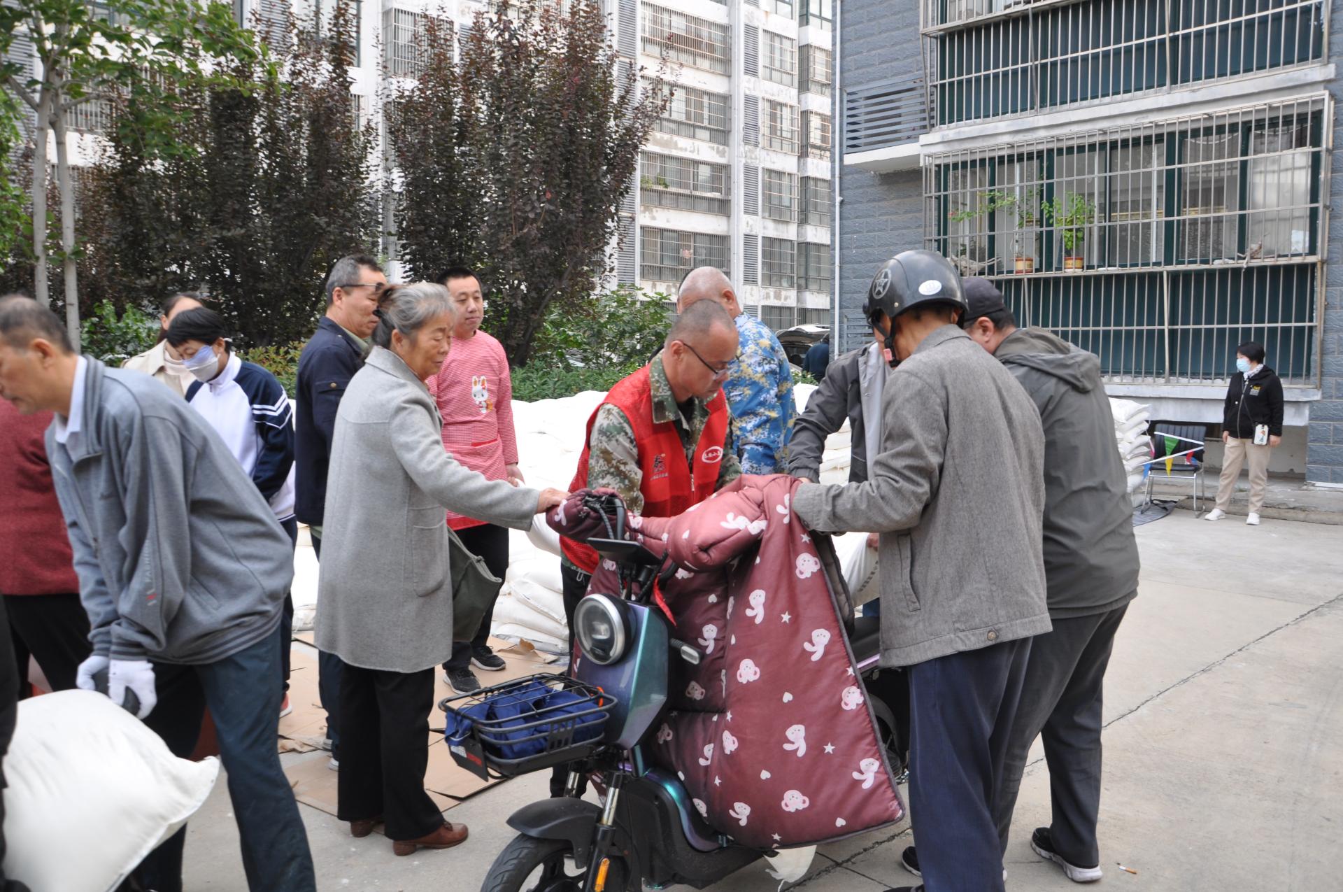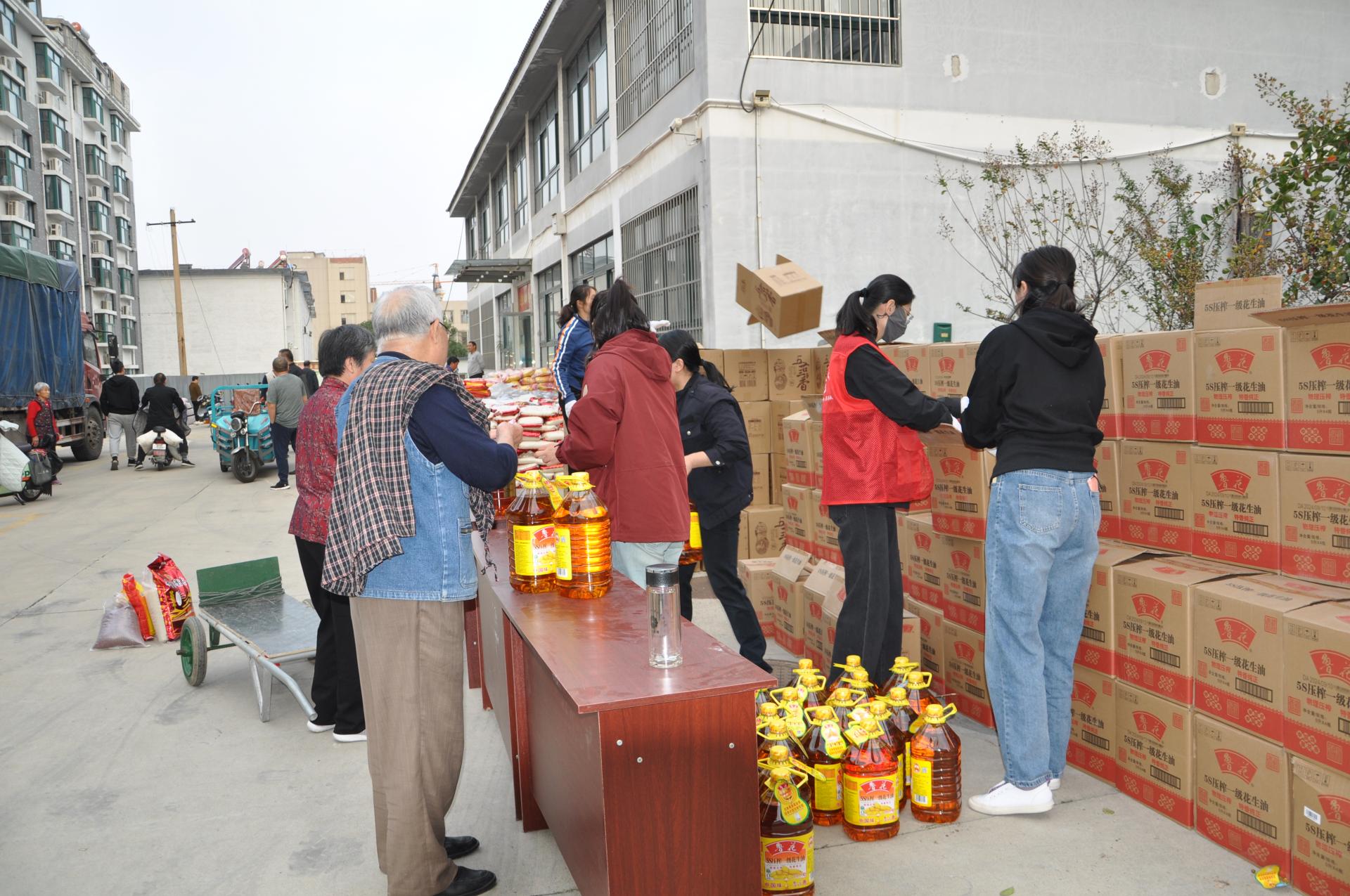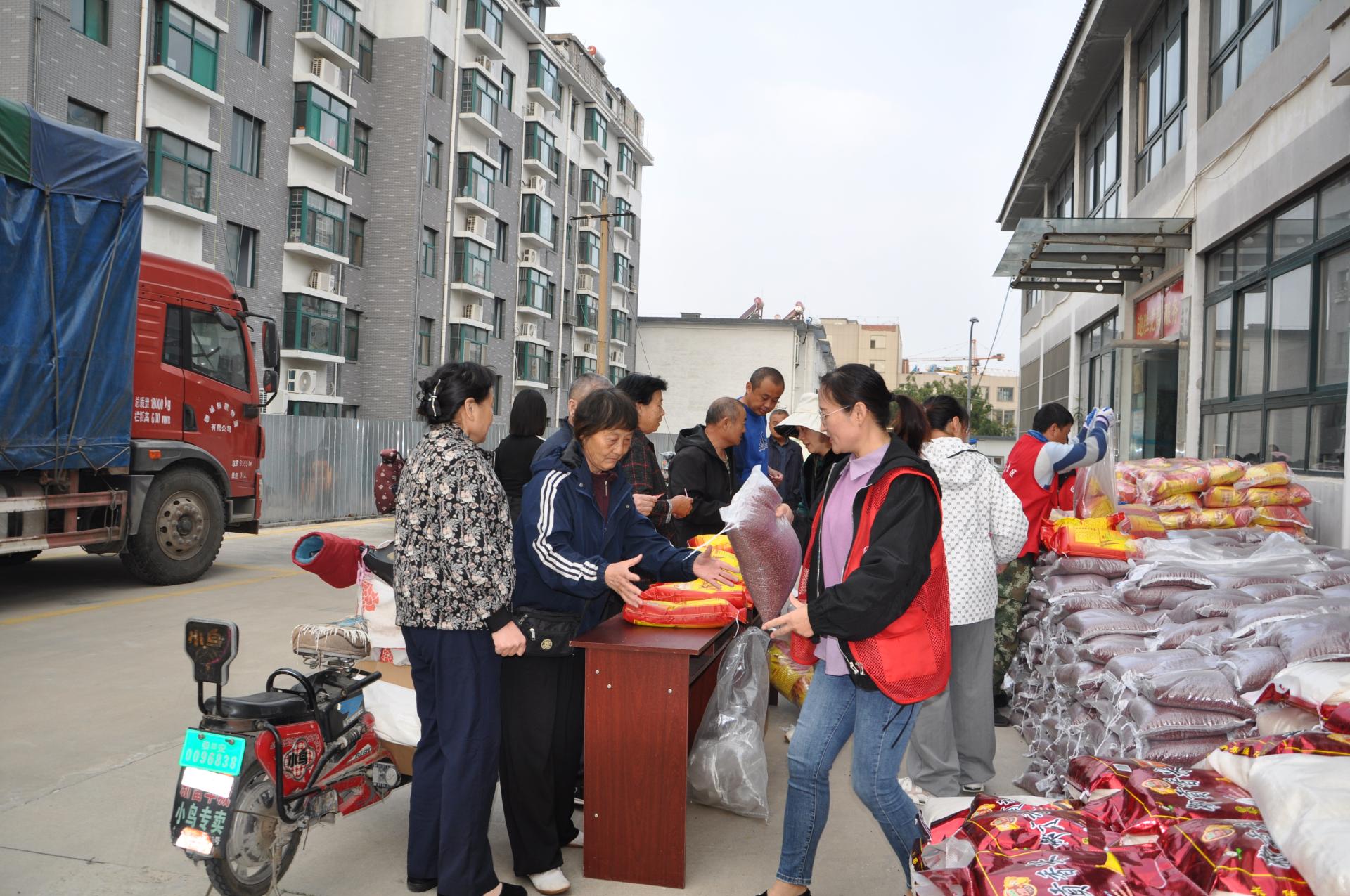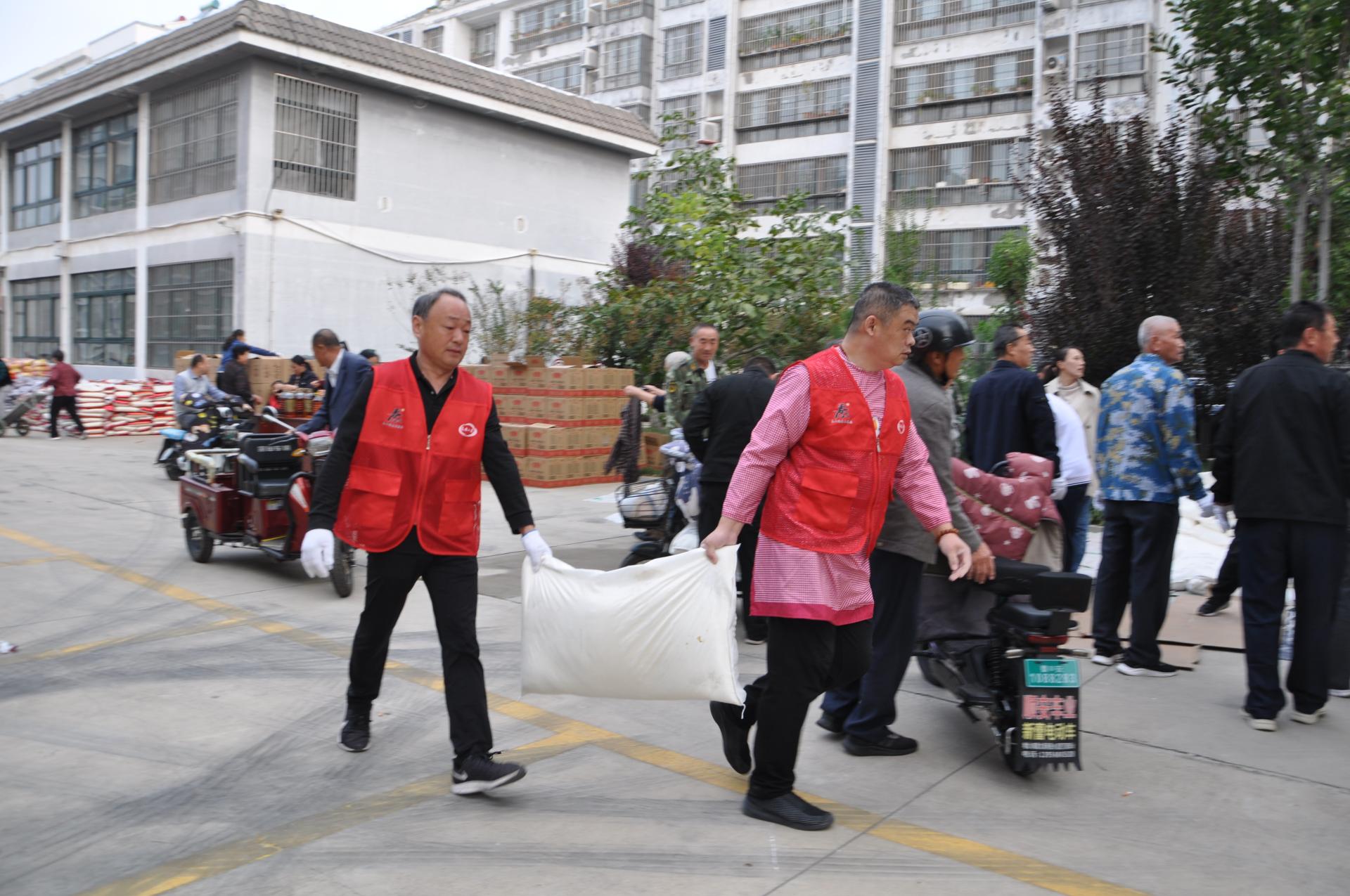 九九老年节之际,为老年人发放米面油等生活用品。志愿者根据分工完成老人们搬运生活用品,登记、发放领取福利领取票等任务。