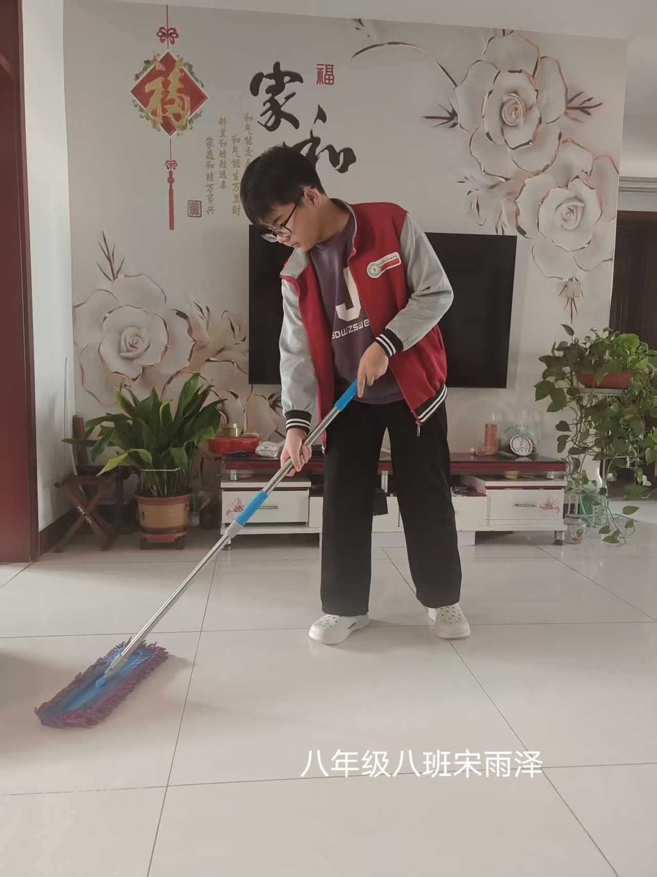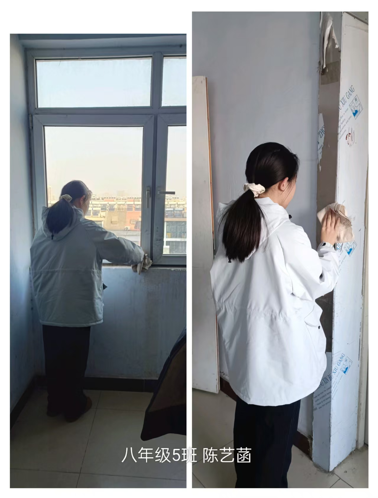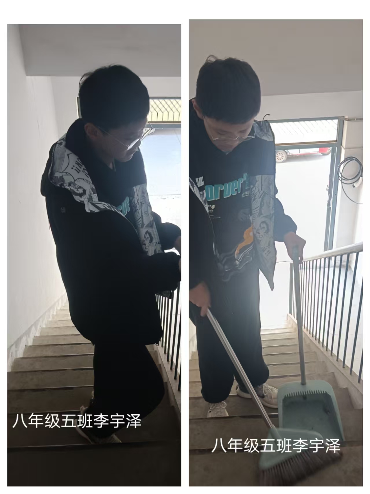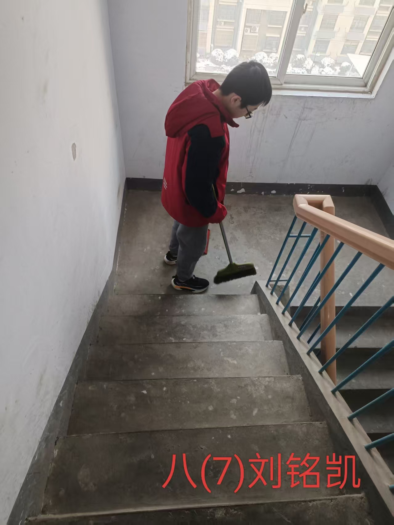 志愿者根据社区工作人员安排,对社区内的楼梯楼道等公共区域进行卫生清洁,在家进行力所能及的居家卫生清洁活动。