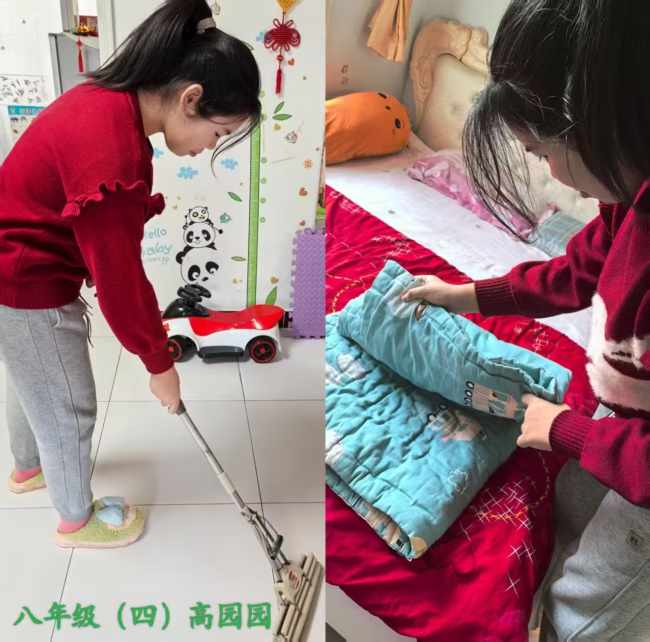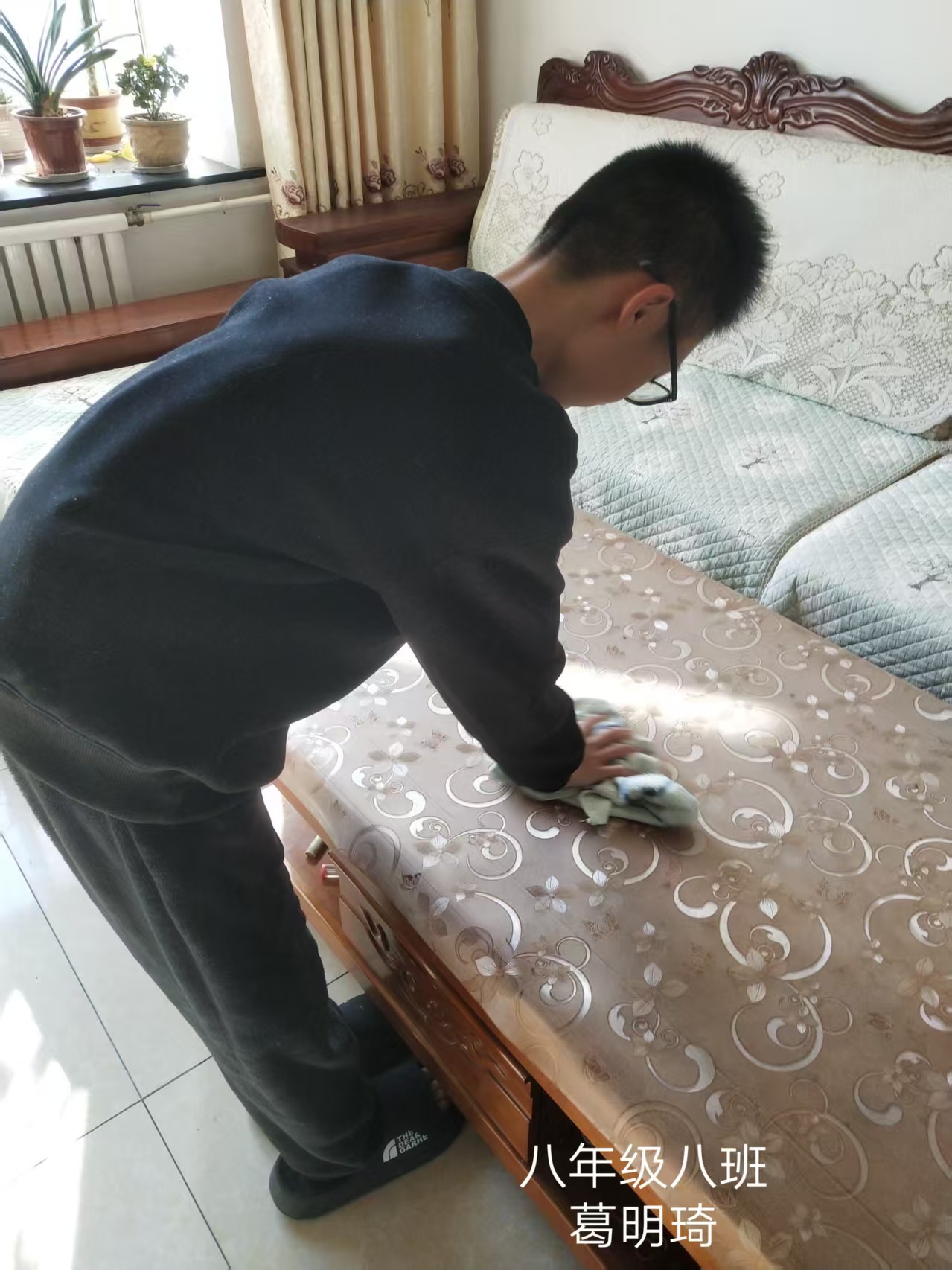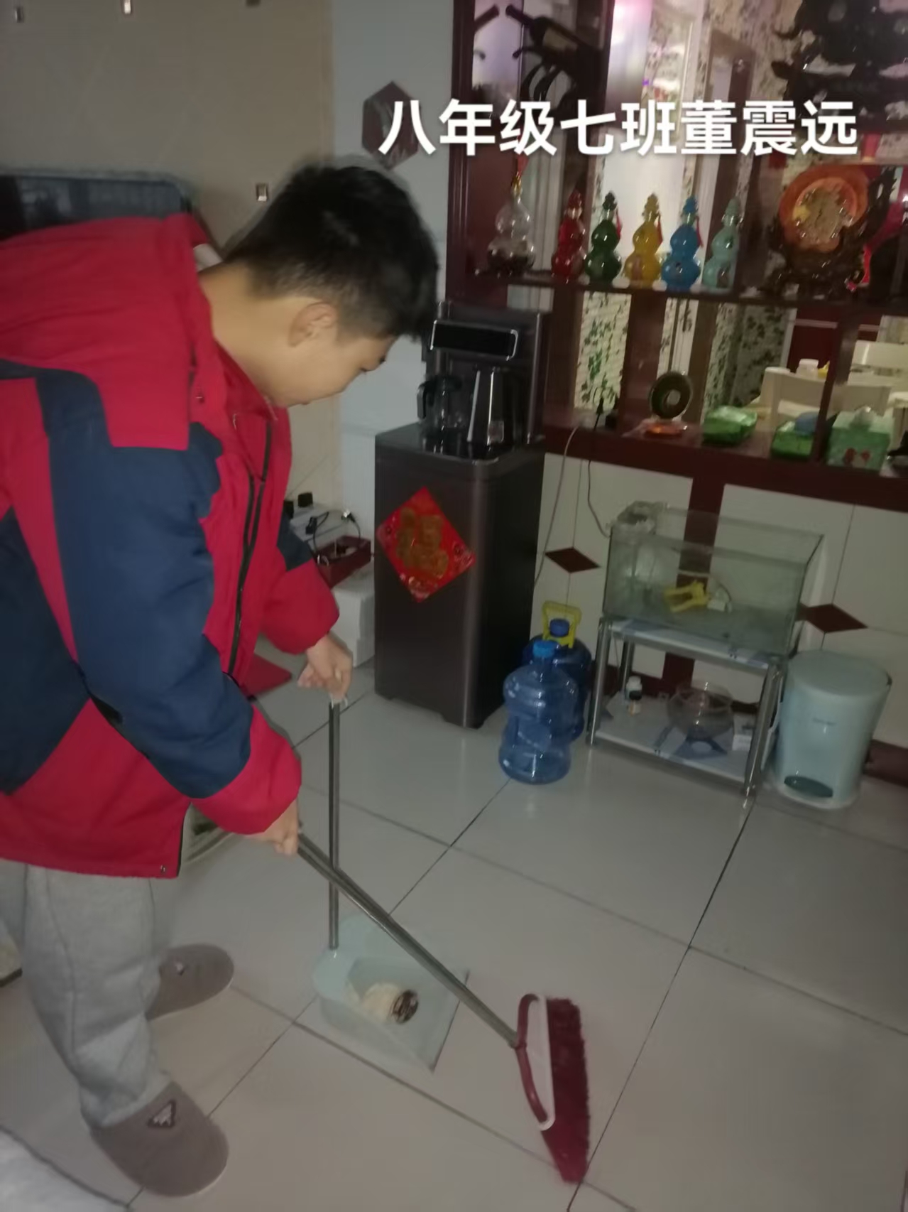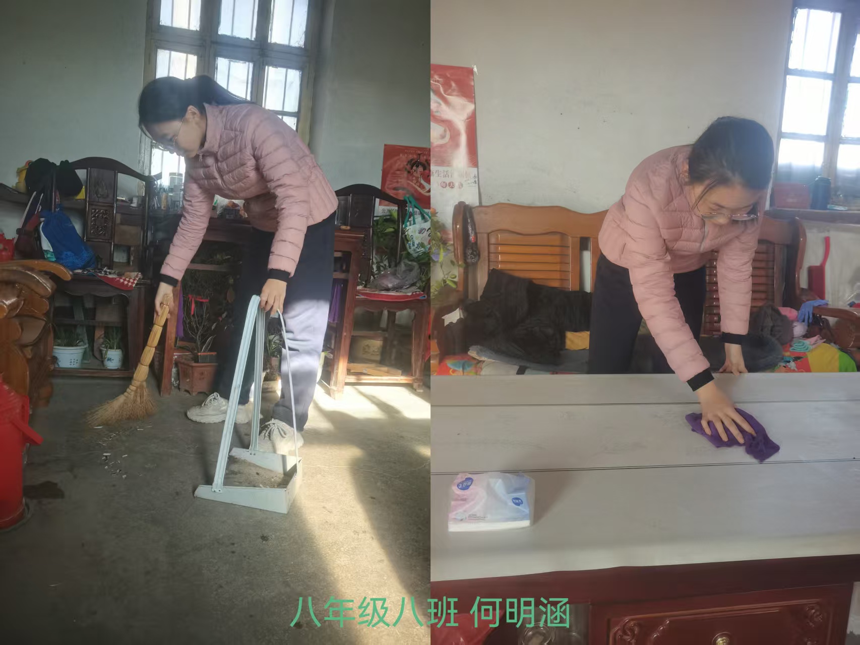 志愿者根据社区工作人员安排,对社区内的楼梯楼道等公共区域进行卫生清洁,在家进行力所能及的居家卫生清洁活动。