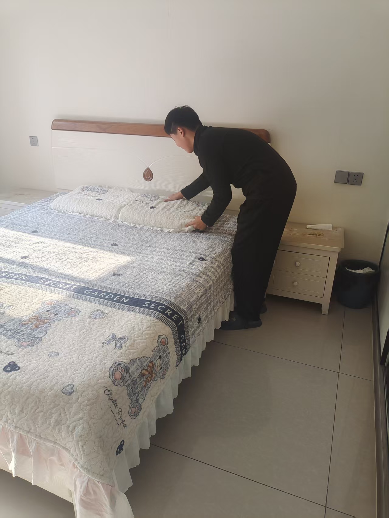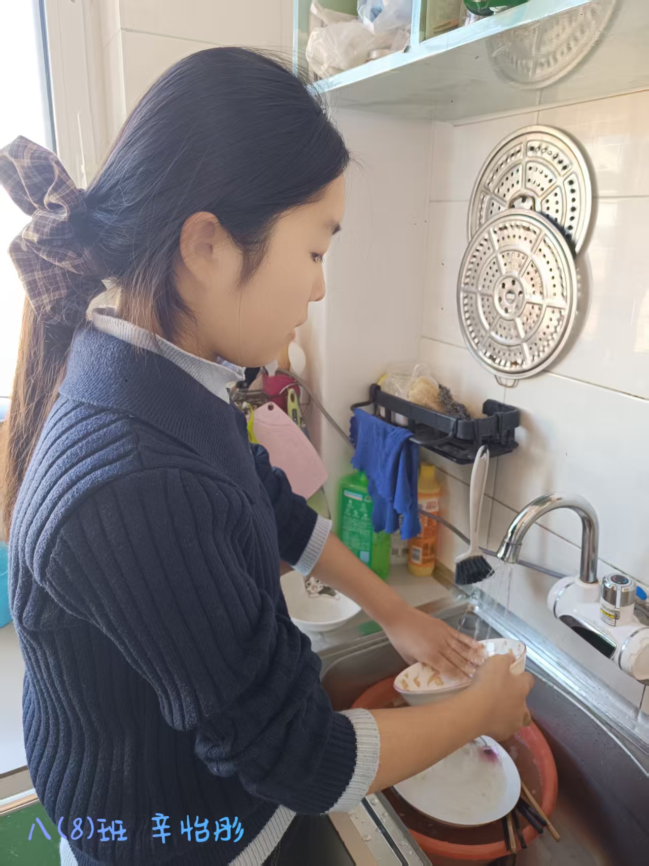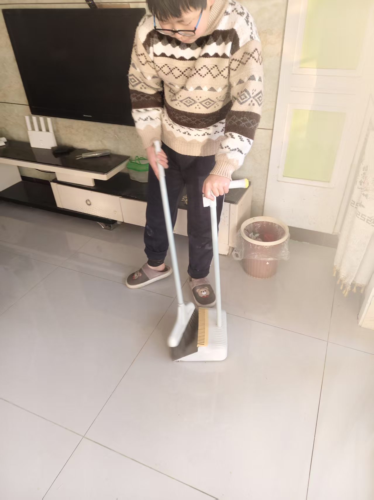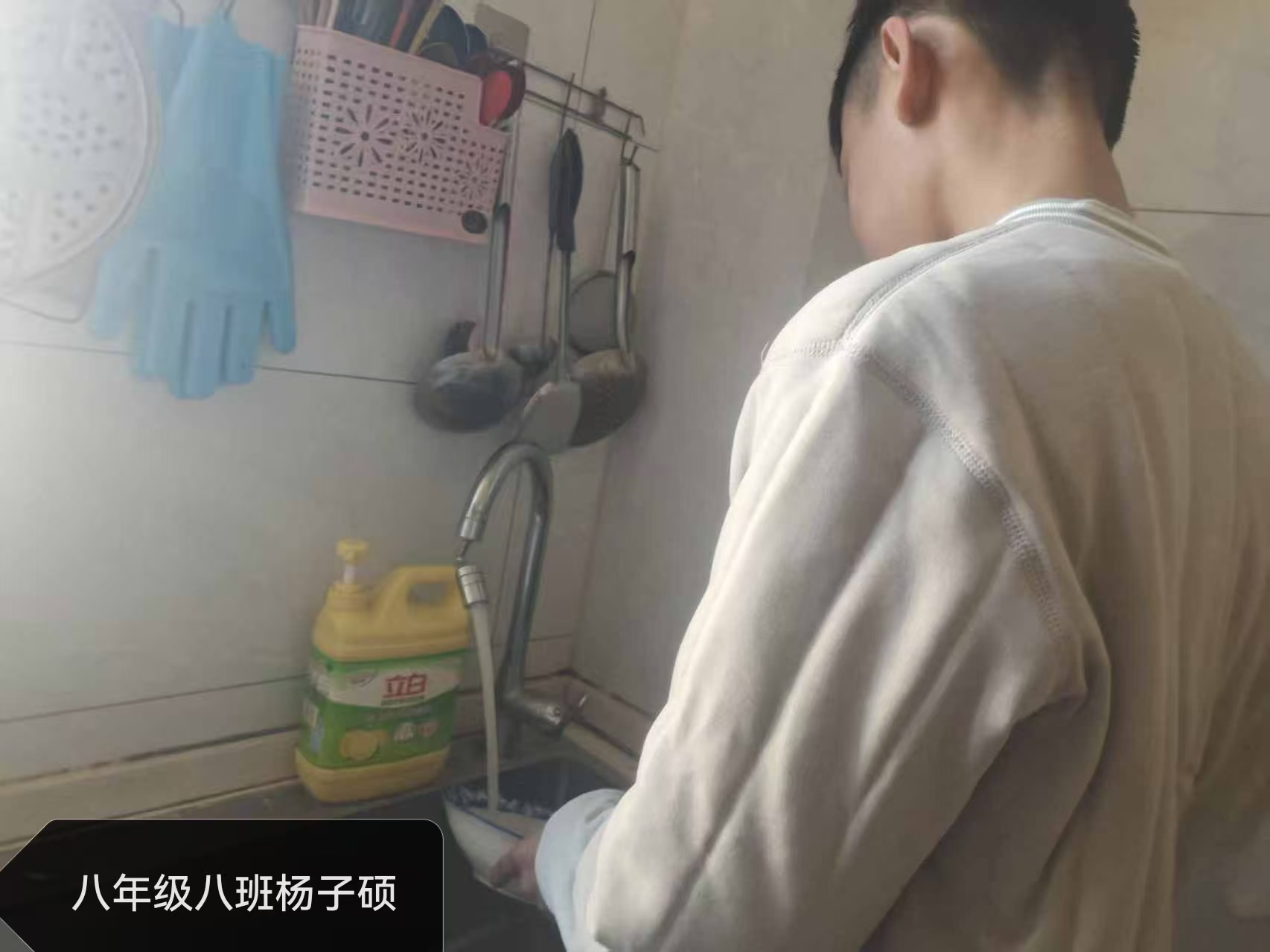 志愿者根据社区工作人员安排,对社区内的楼梯楼道等公共区域进行卫生清洁,在家进行力所能及的居家卫生清洁活动。