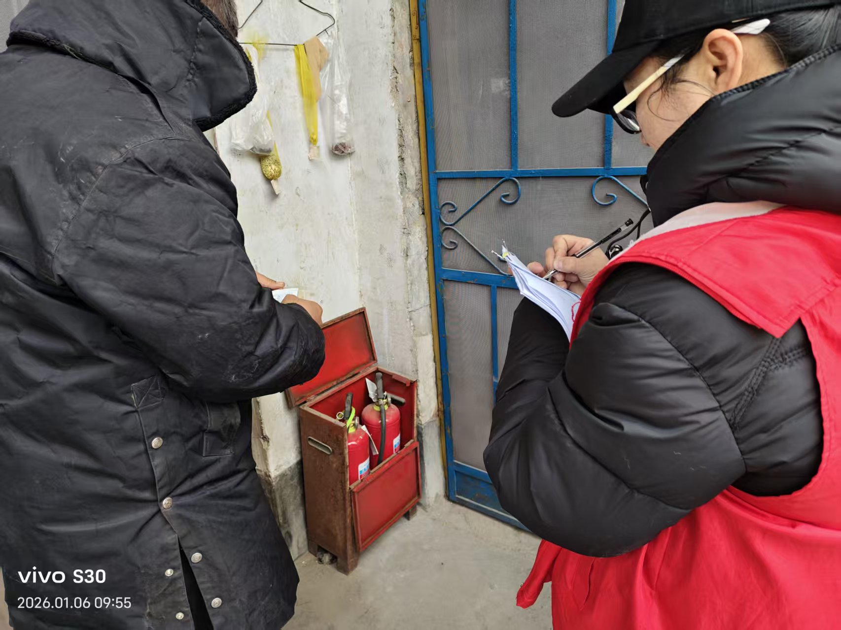 1月日,我村志愿者开展消防安全预警巡查志愿服务活动,电气线路是否规范、消防设施能否正常使用、针对发现的部分楼道堆放杂物、个别灭火器压力不足等隐患,当场下达整改通知书,要求限期整改,并向周边村民普及了消防安全知识,提醒大家注意日常用火用电安全,及时清理易燃物品,共同维护消防安全环境。