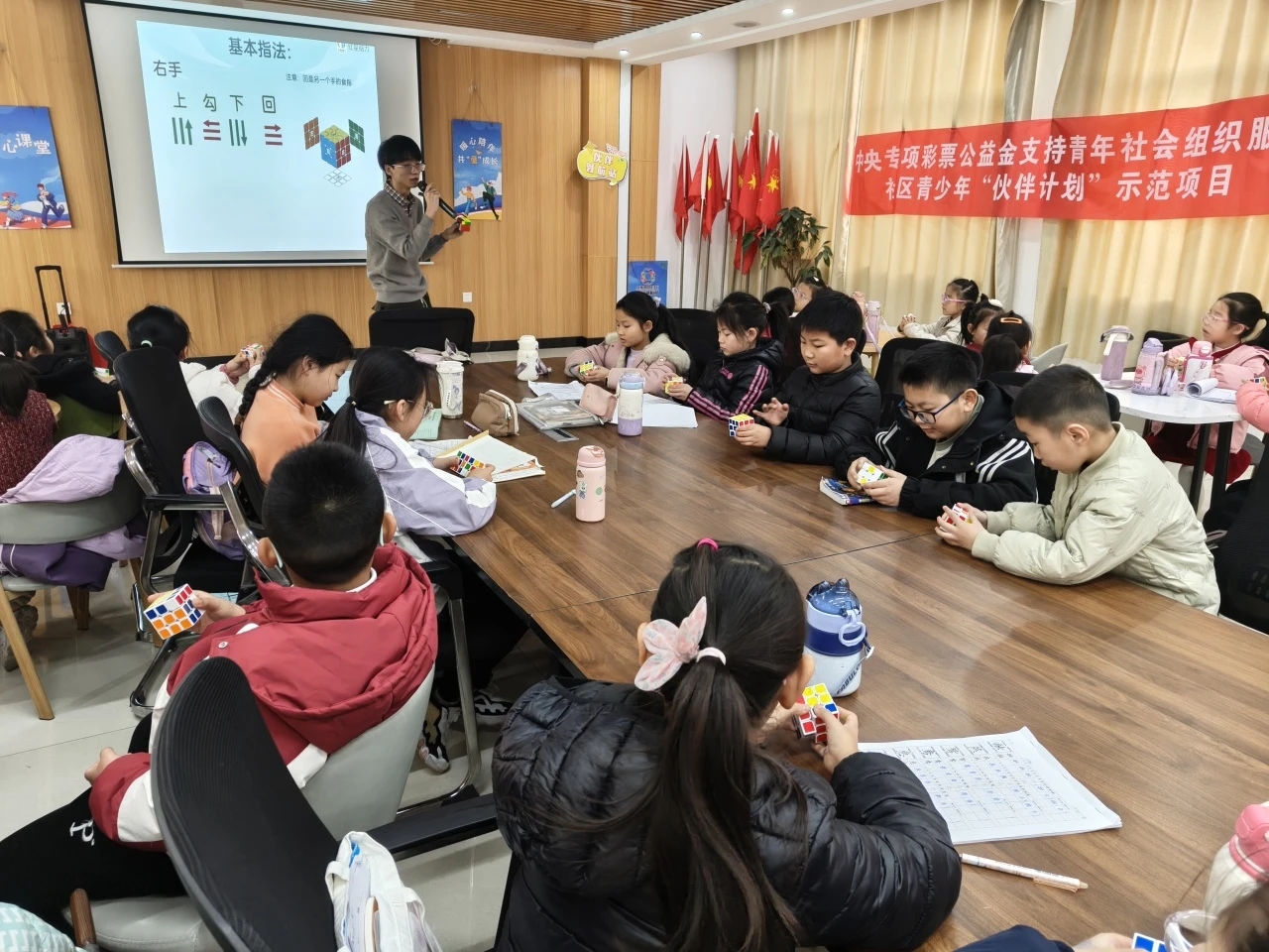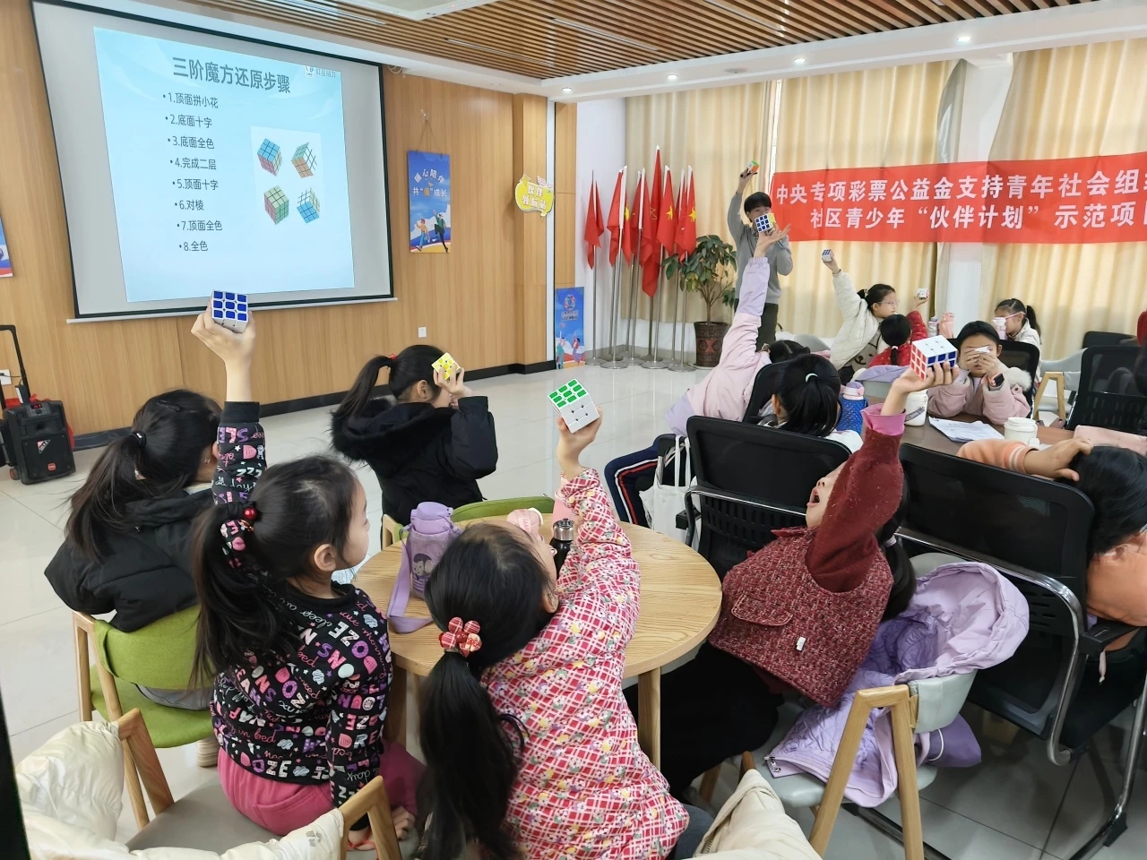 为持续深化共青团“伙伴计划”示范项目内涵,拟开展“小魔方大智慧”益智魔方青少年思维引导教育活动潜移默化培养其逻辑思维空间想象力,专注力和抵抗挫折能力。