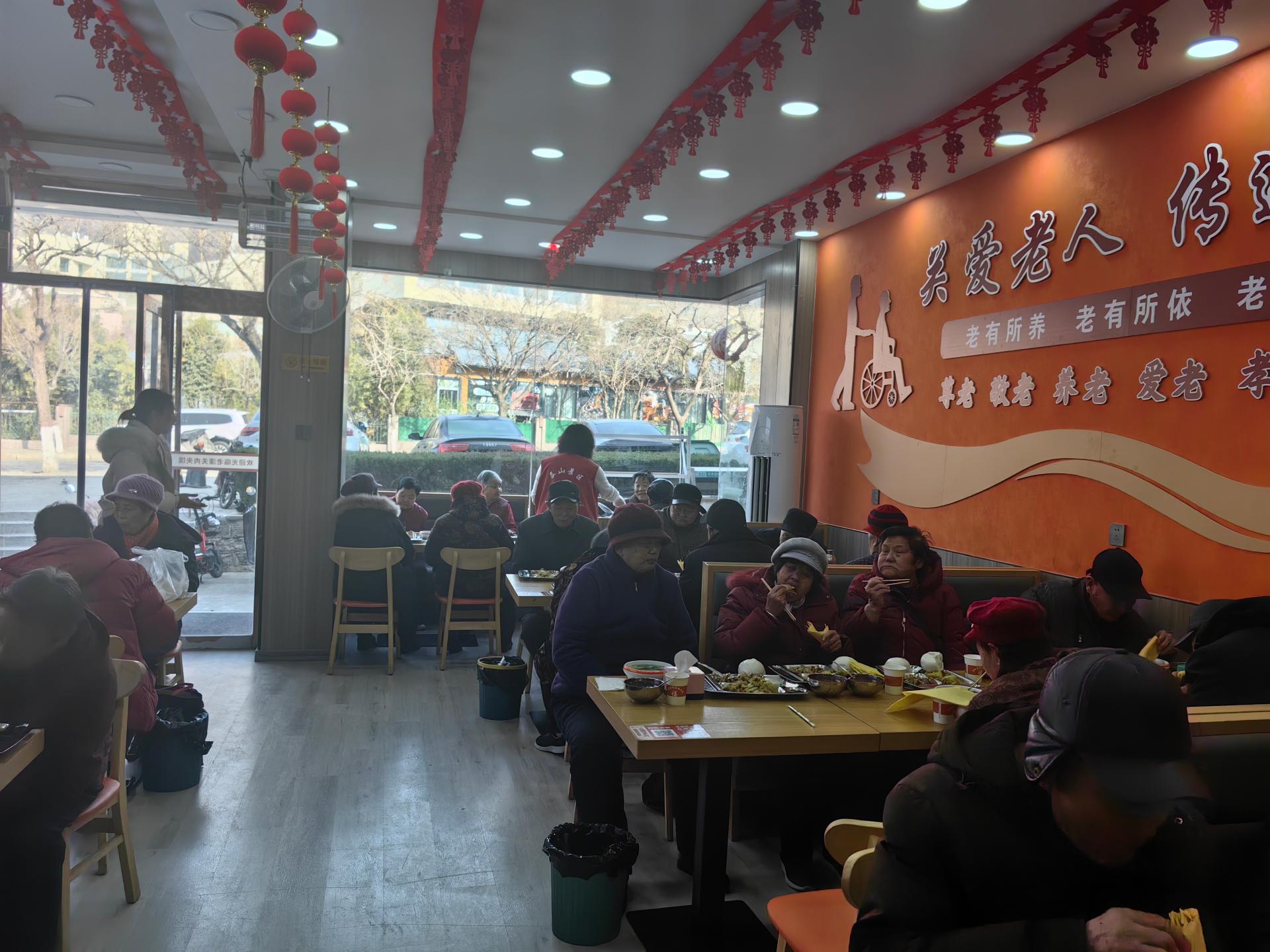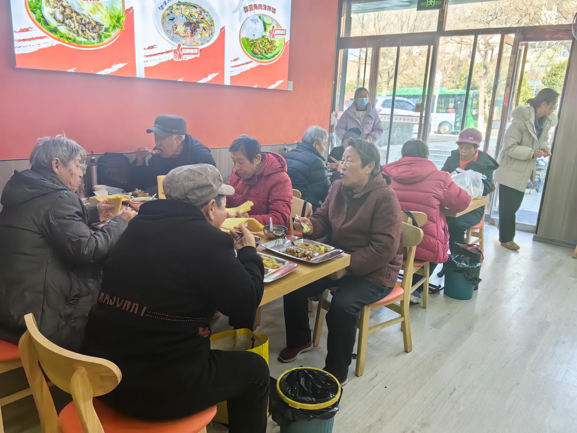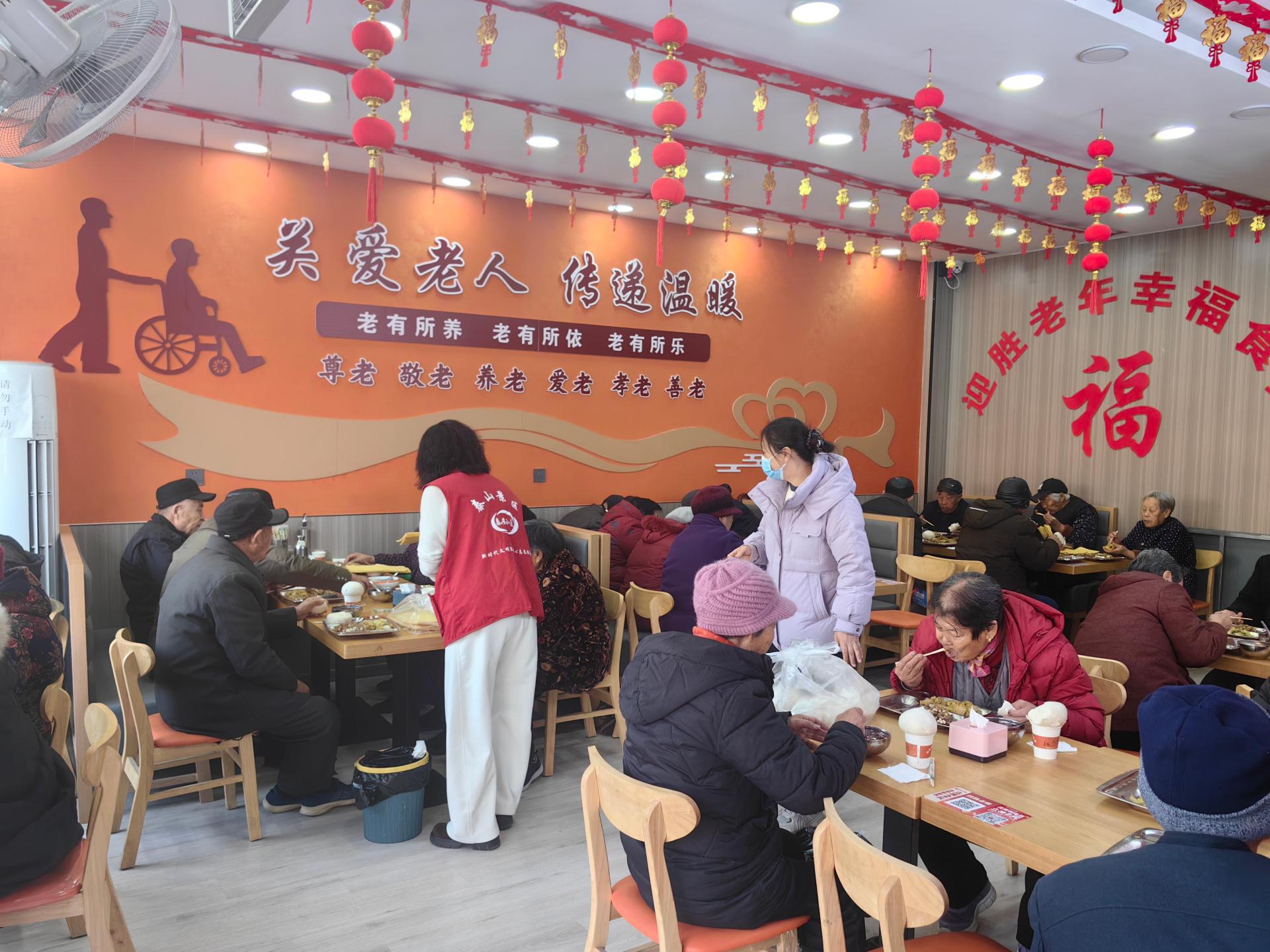 为前来就餐的老人提供助餐服务,从引领、搀扶老人进入食堂到为老人分饭、汤,包括餐后收拾等。在另有专人负责就餐老人的打卡工作,未能来就餐的老人及时联系。