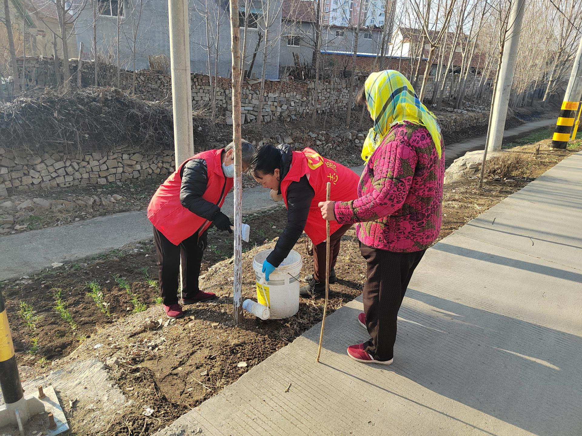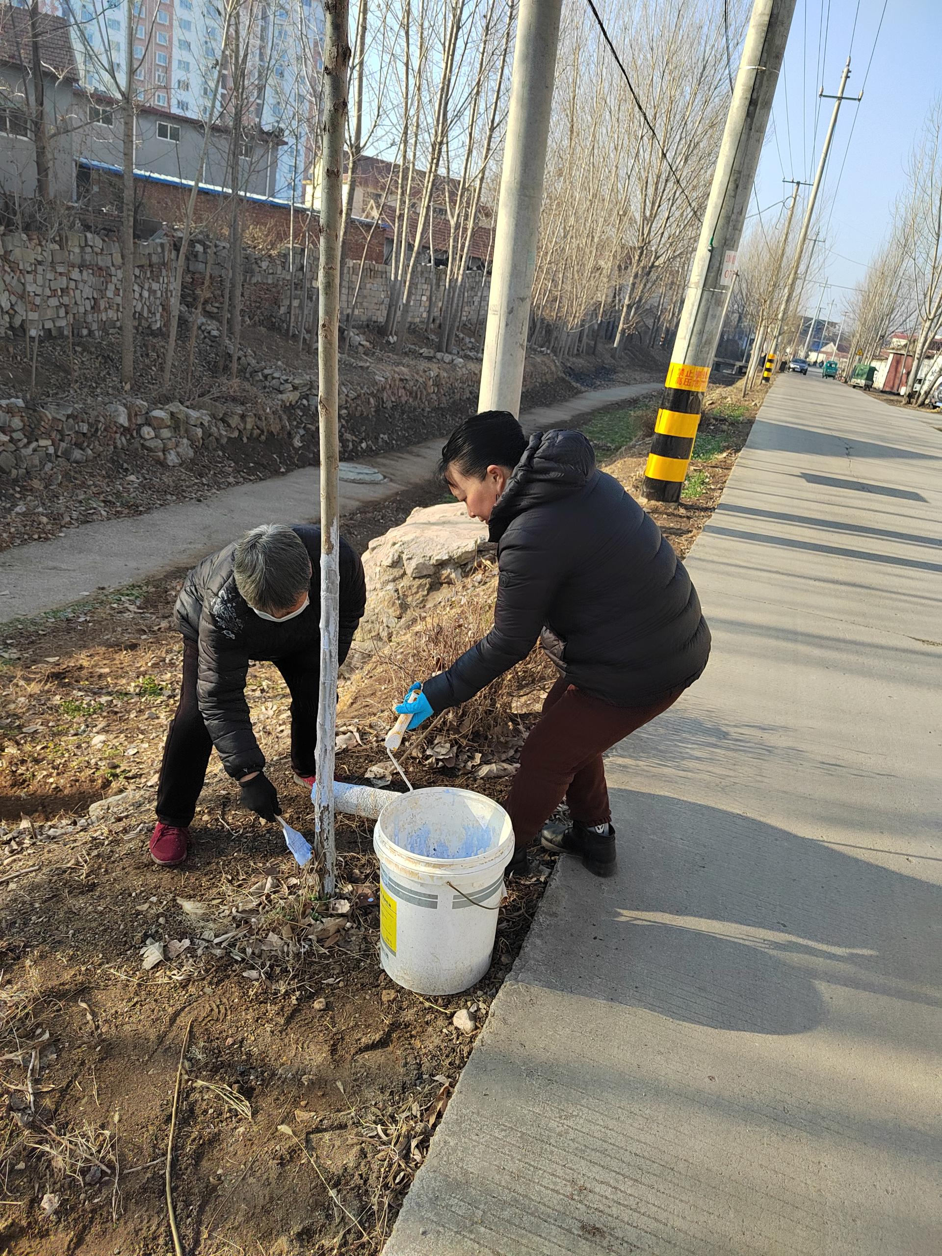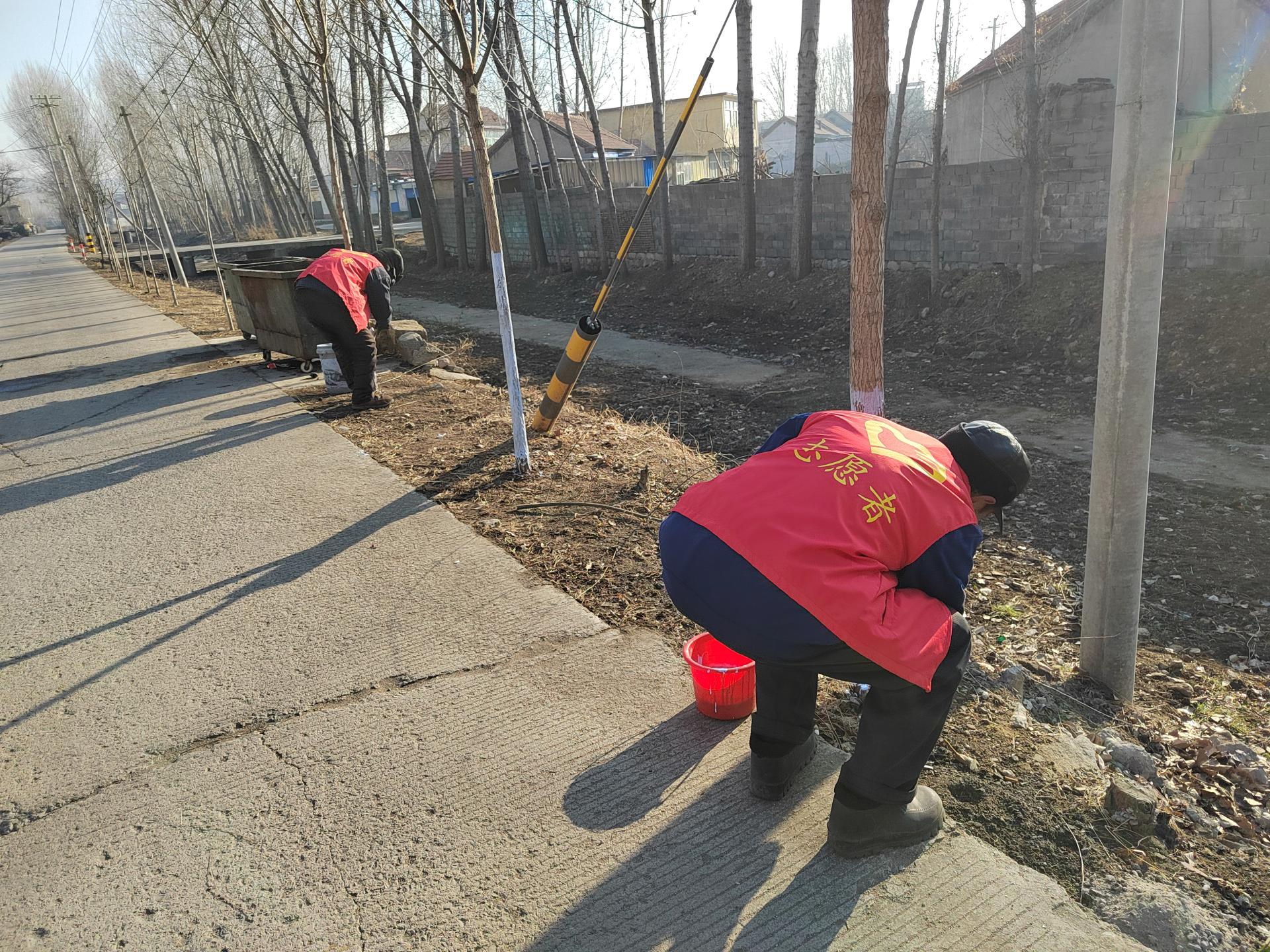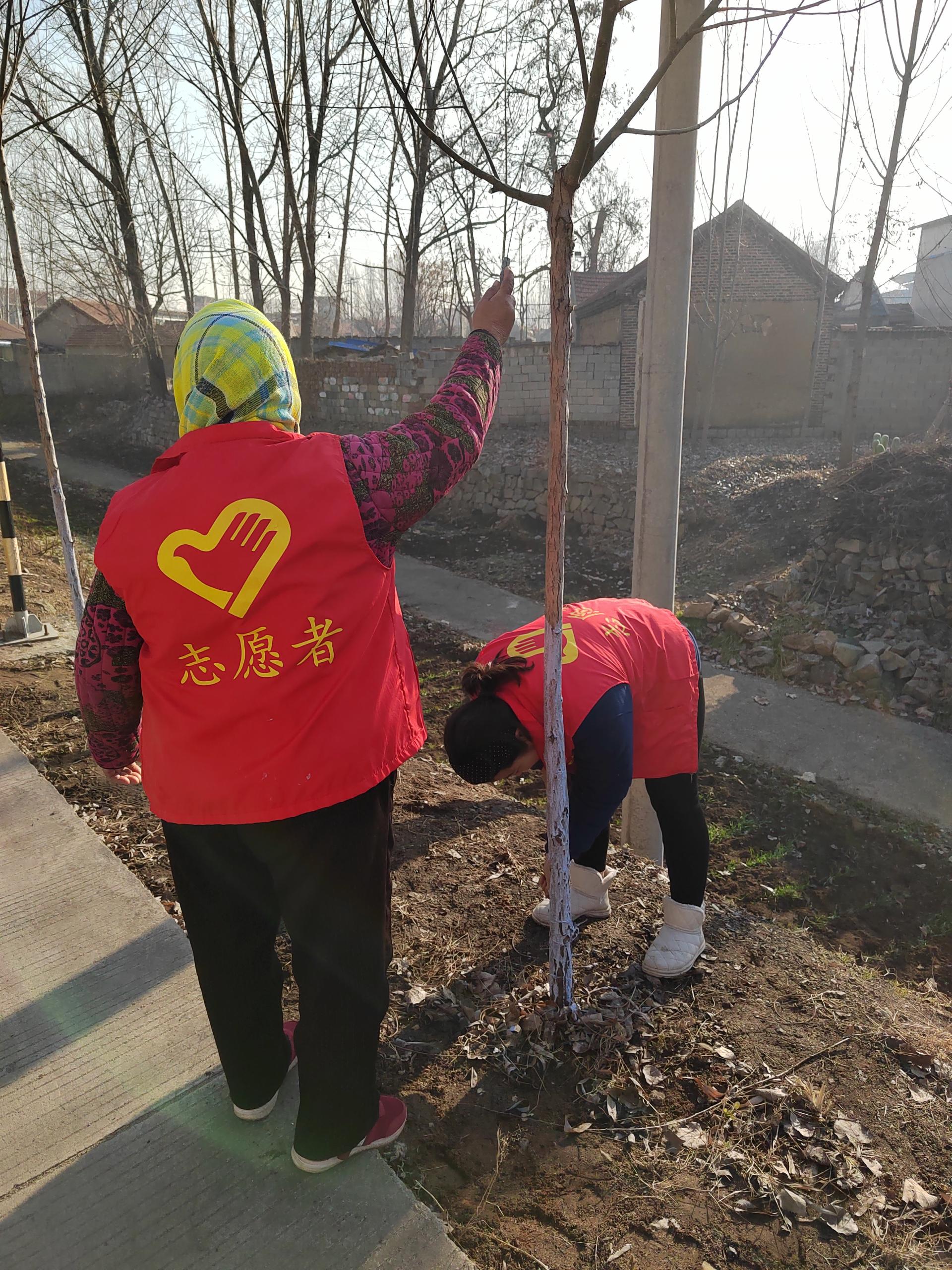 翟镇史家庄村组织开展冬季沿河路两侧树木树枝修剪、志愿者给树木刷漆,并清理沿线杂草卫生等志愿服务活动。