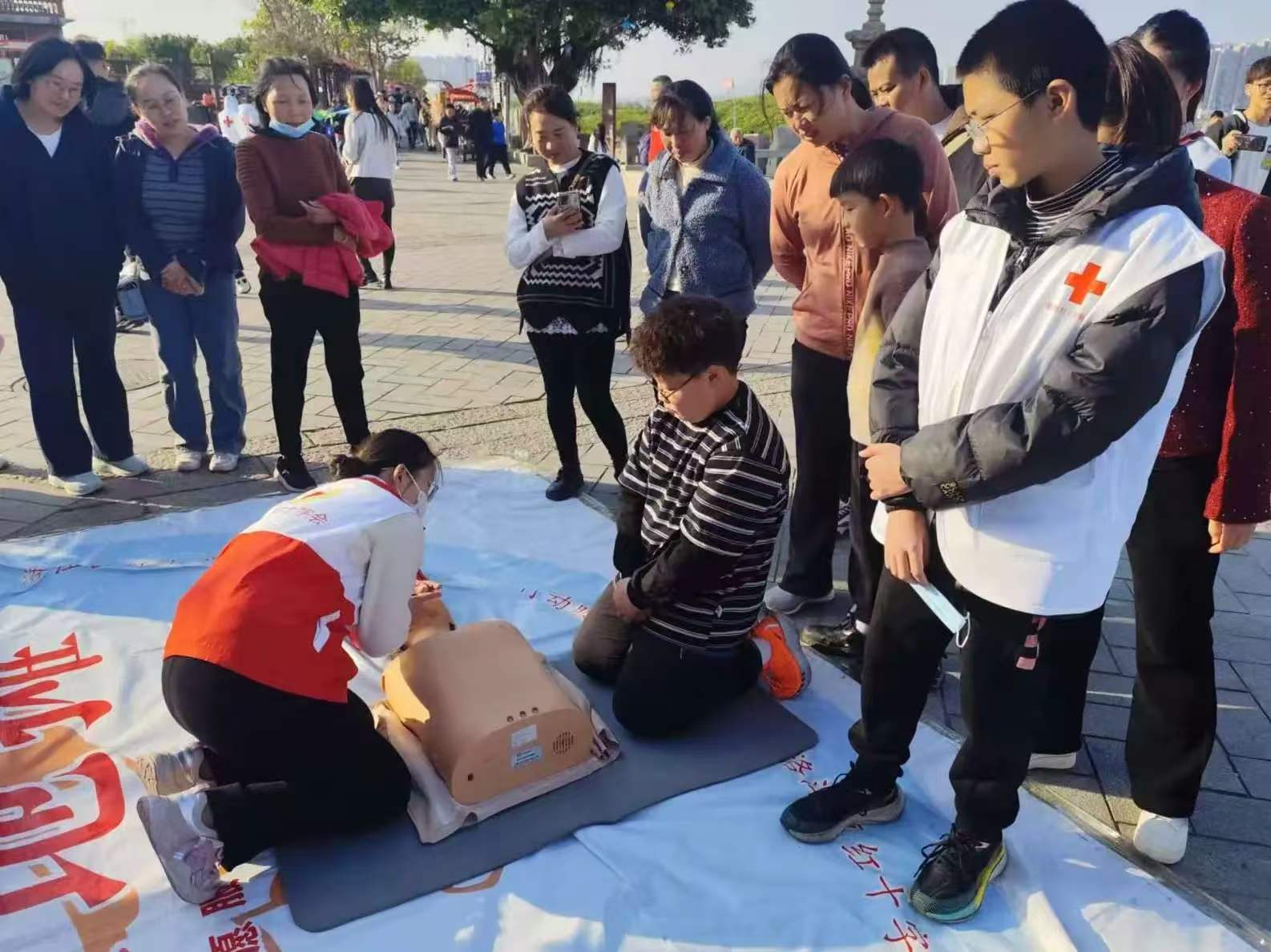 堽城镇桥南村开展“学习急救知识 掌握科学技能”文明实践志愿服务活动,志愿者们针对心肺复苏,气道异物梗阻急救等知识用通俗易懂的语言为群众讲解。