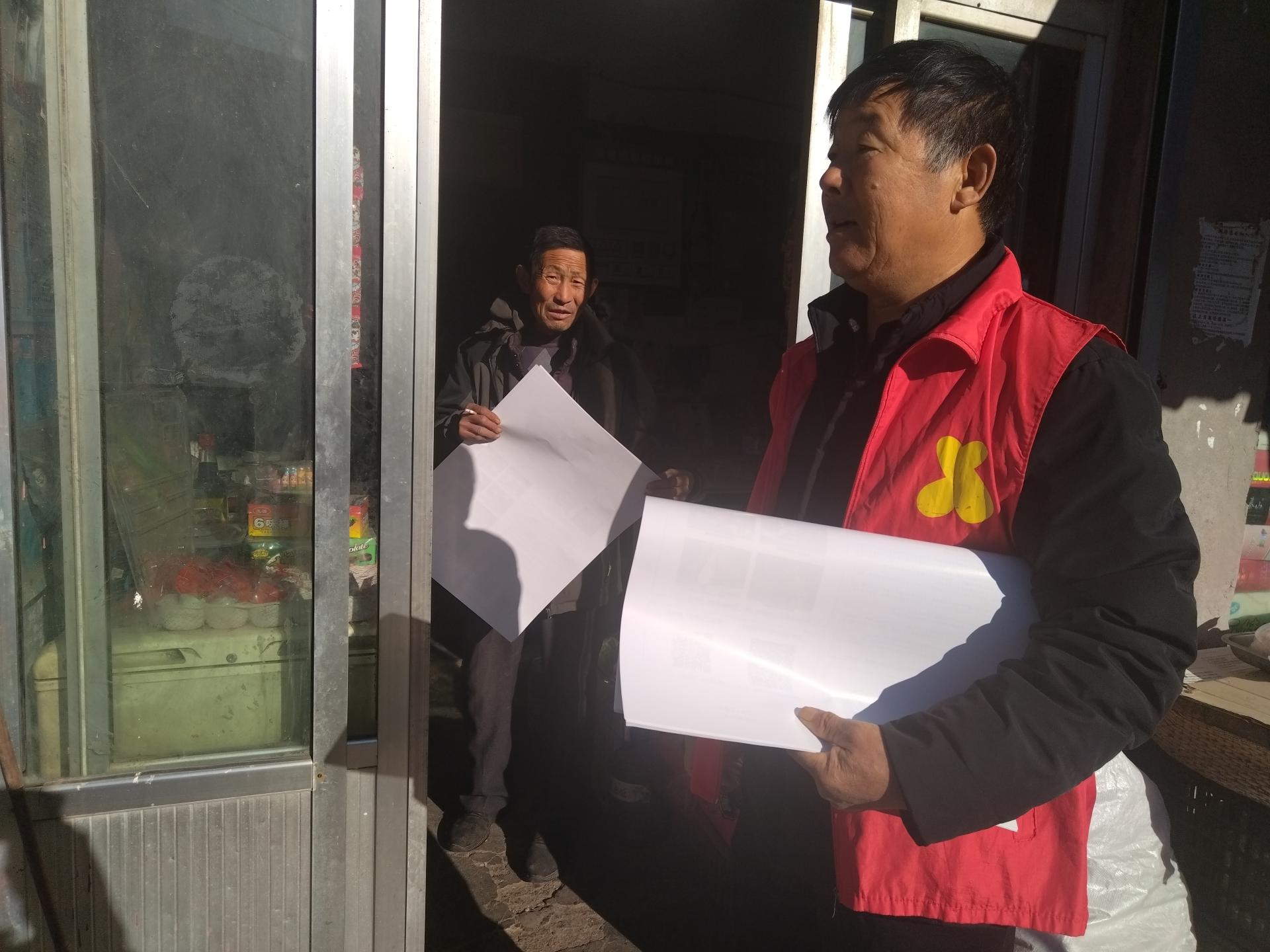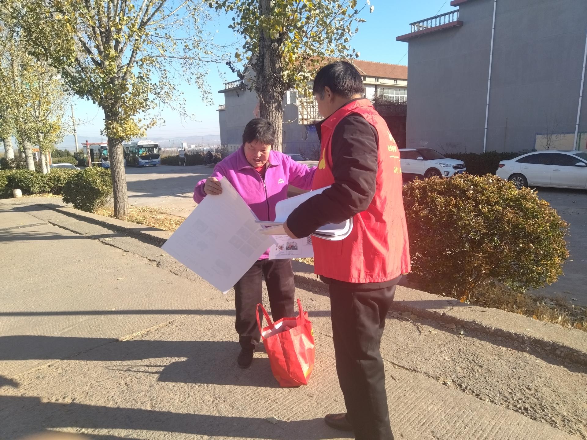 新泰市小协镇陈角峪村爱心志愿服务活动,陈角峪爱心志愿者协助村内工作人员入户宣传一氧化碳志愿服务活动。