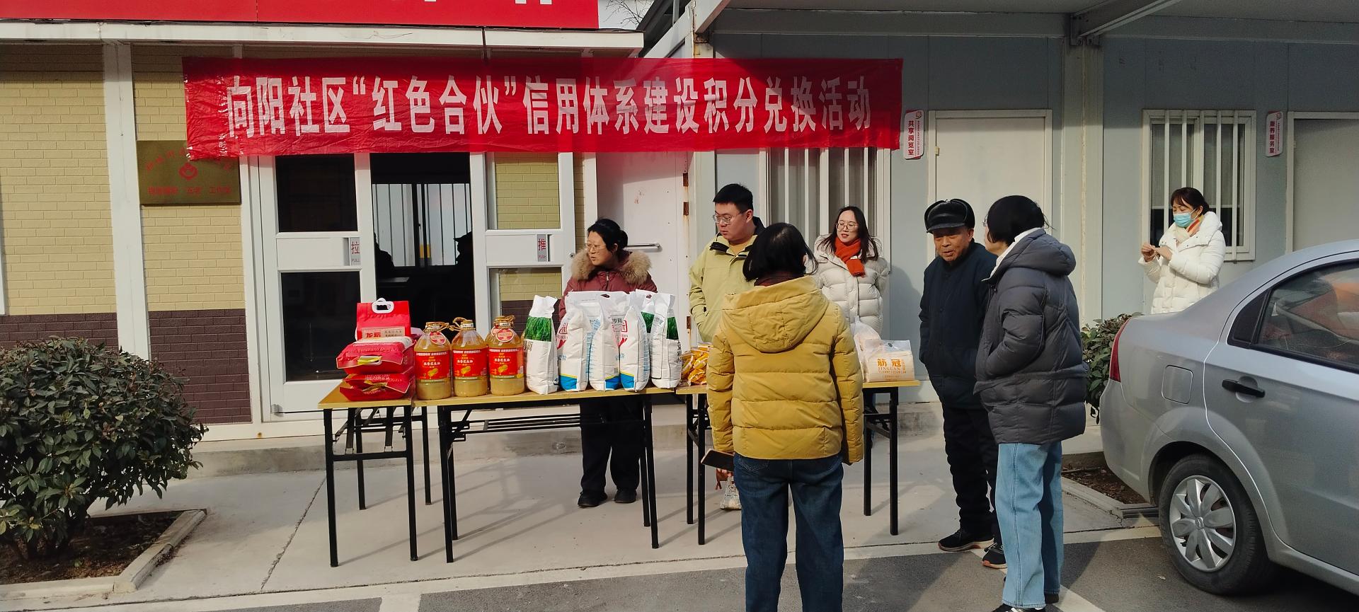 为深入推进“红色合伙”信用体系建设,切实弘扬诚信风尚,进一步激发居民参与信用体系建设的积极性,新城街道向阳社区联合同心公益协会开展“红色合伙”信用积分兑换活动。